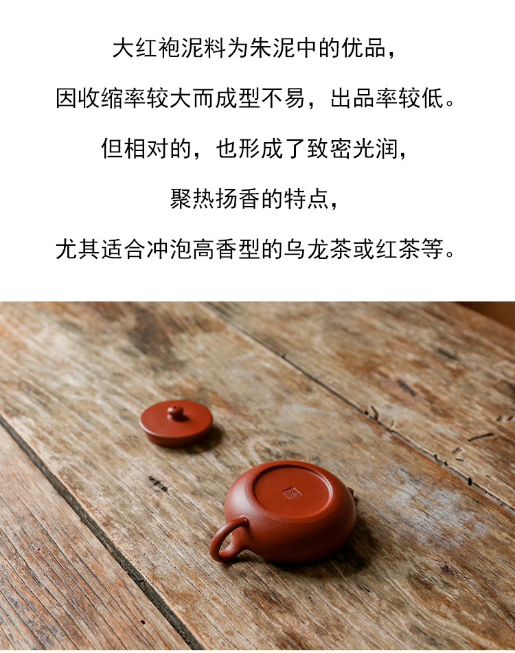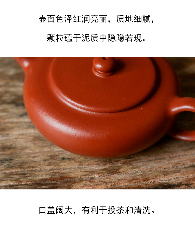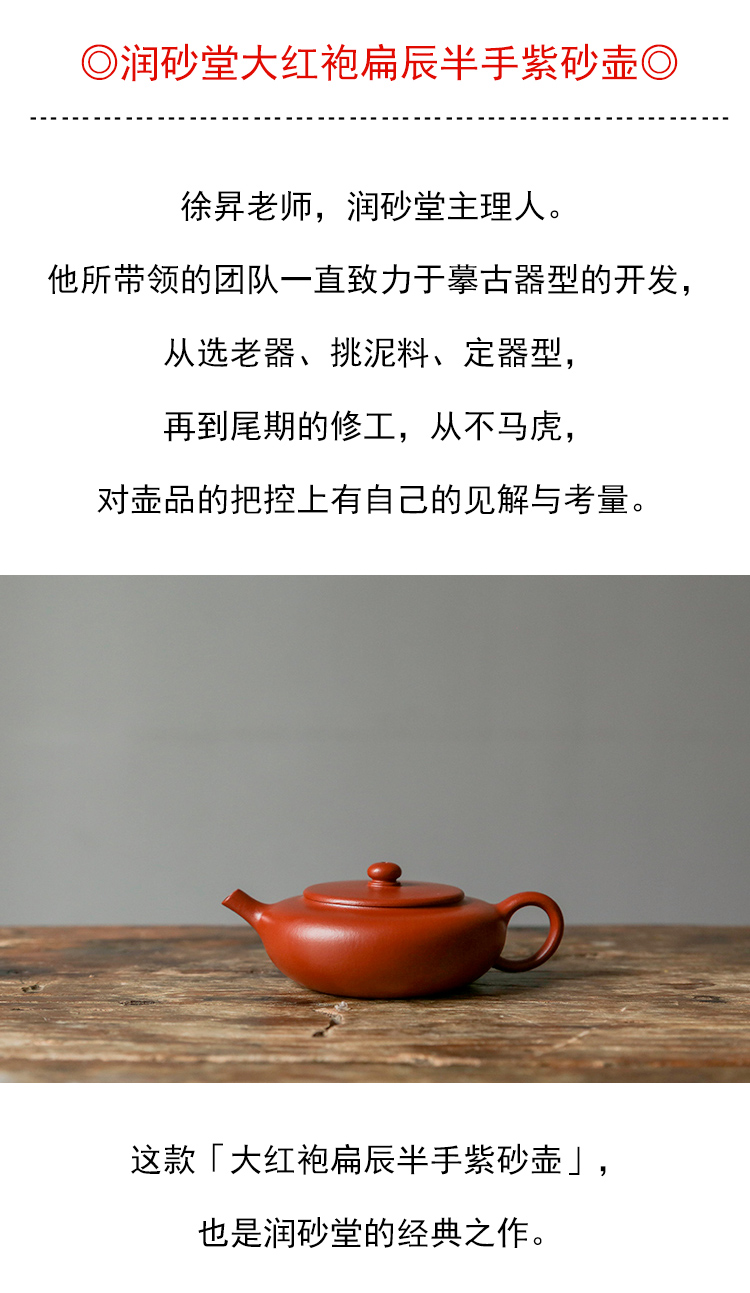 茶香记 润砂堂 大红袍扁辰半手紫砂壶 扁晨壶 朱泥 红润亮丽 扁而不塌 茶壶