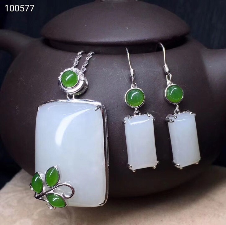 s925银镶和田玉白玉平安牌两件套-------寓意平安无事,料子干净细腻,白度一级,带银链子。