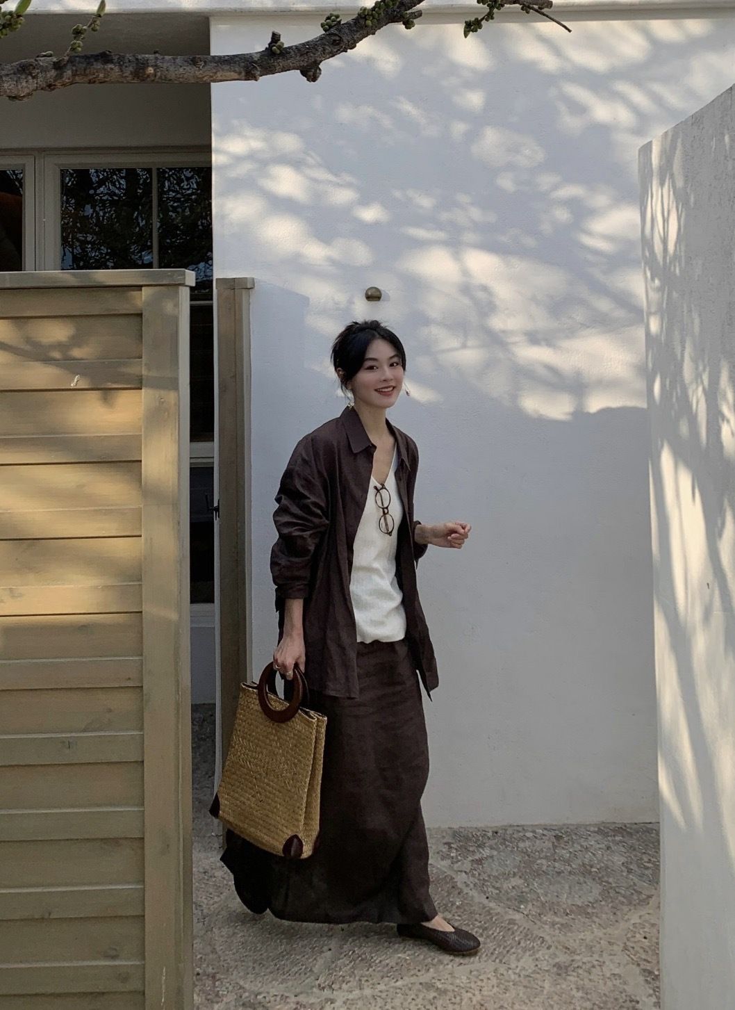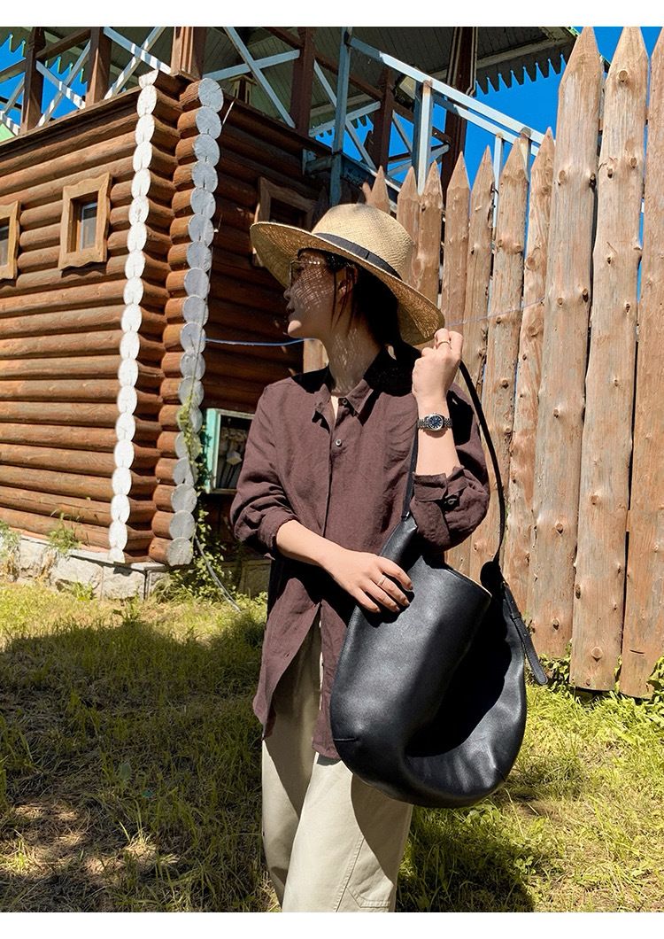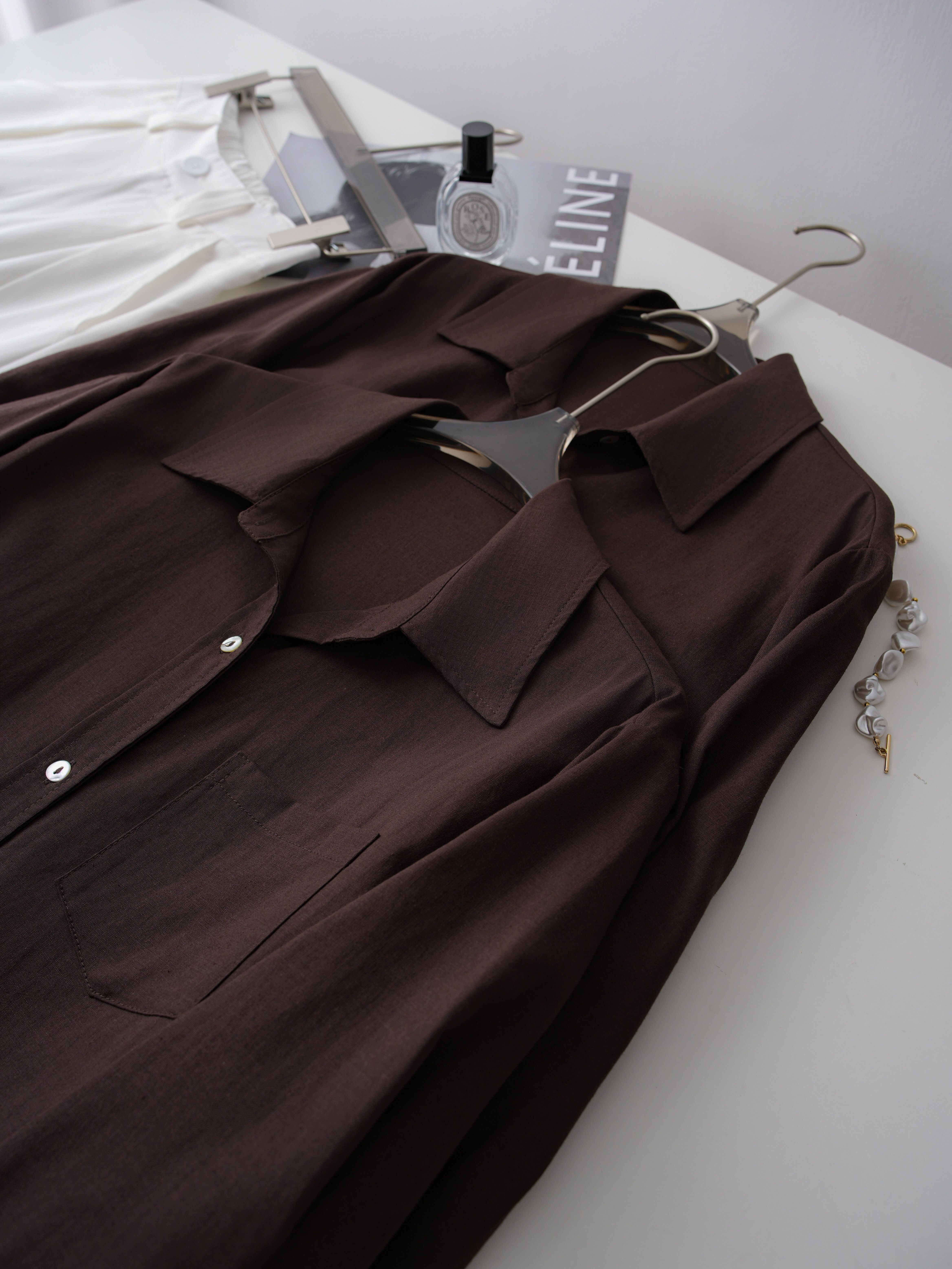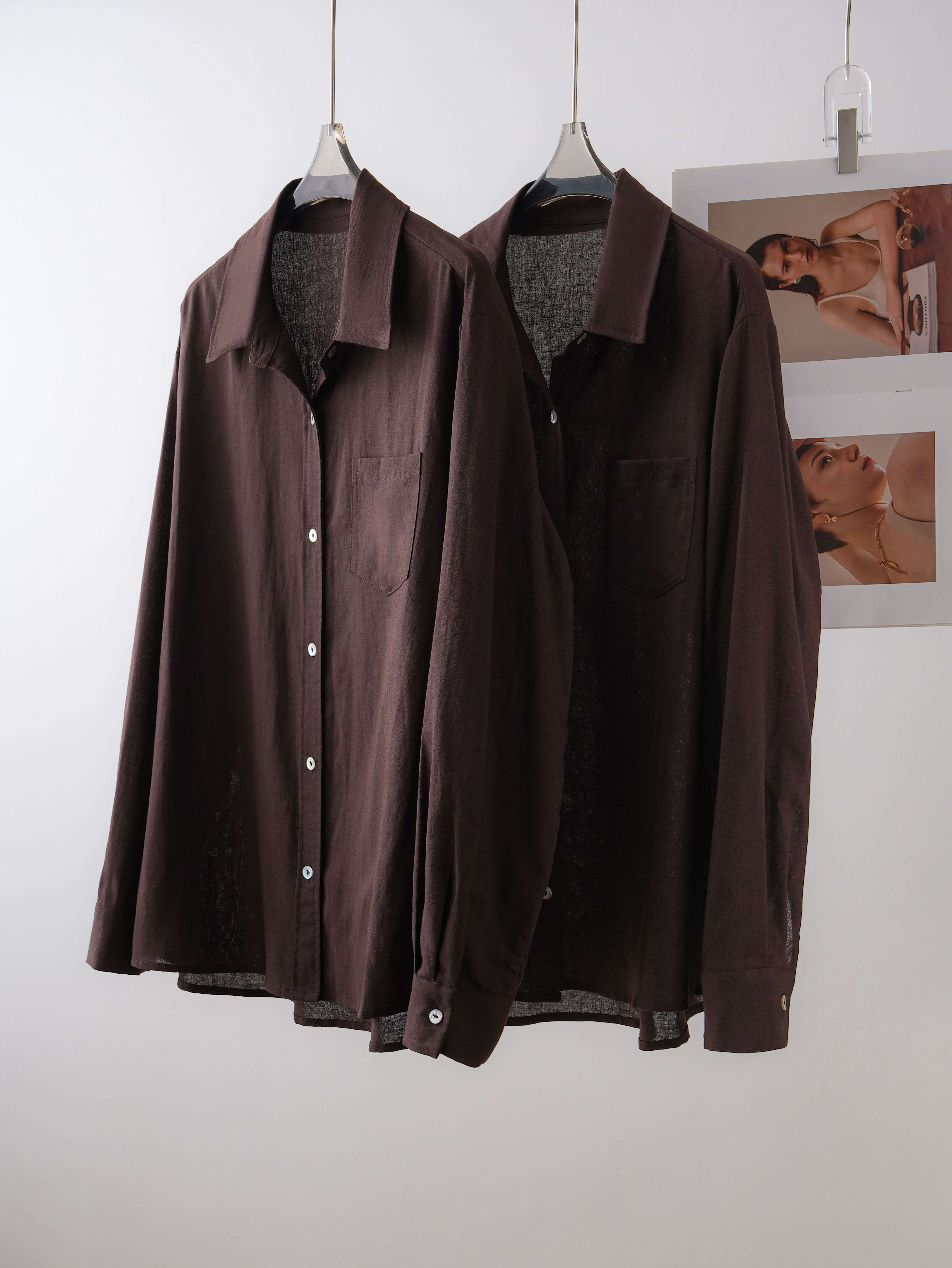【LONGNVFAI 老钱风亚麻天丝棕色衬衫】法式高级感 咖色气质老钱风 版型宽松