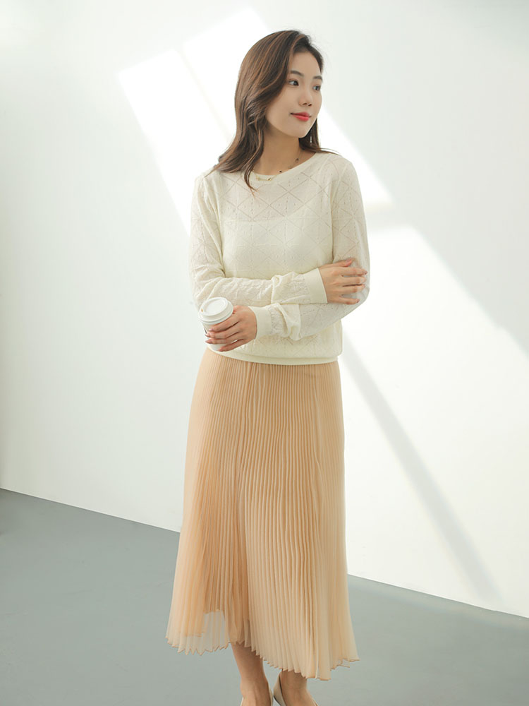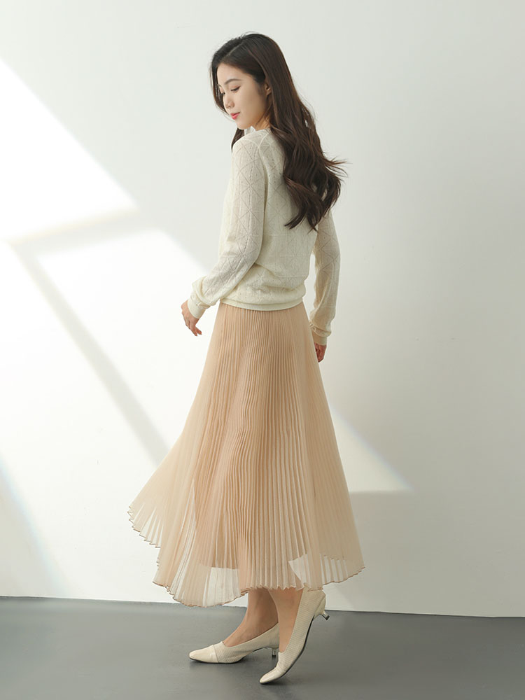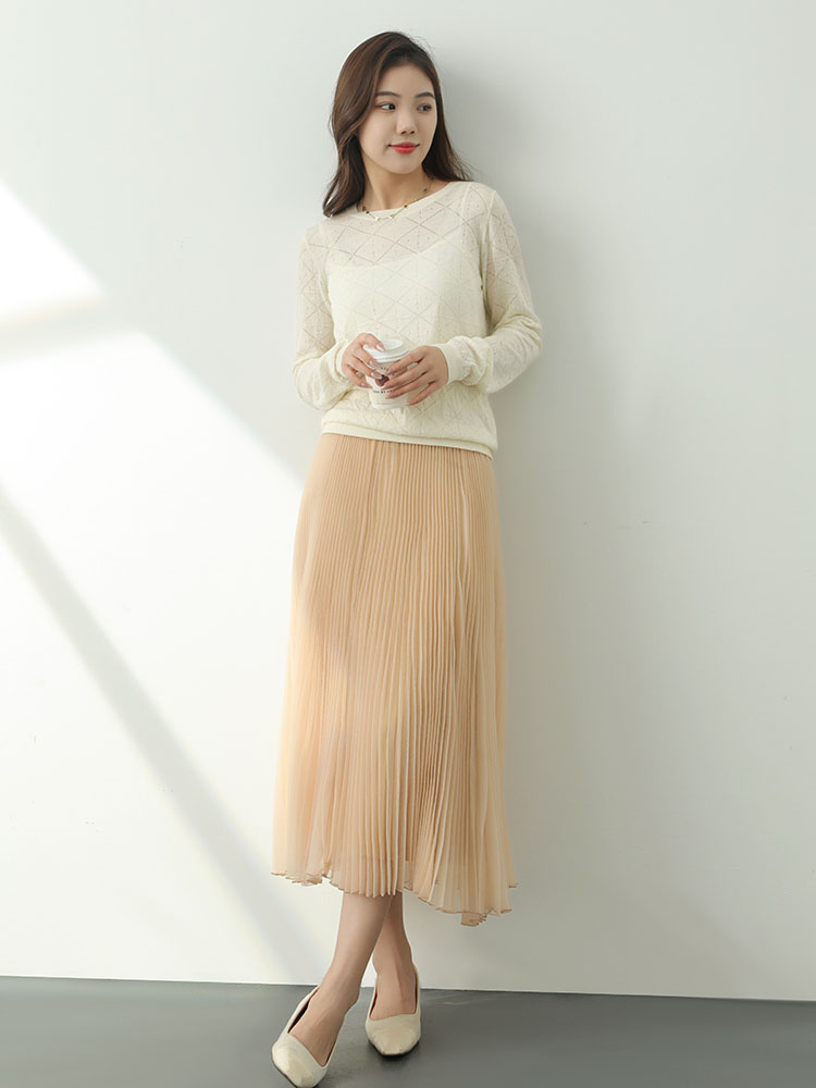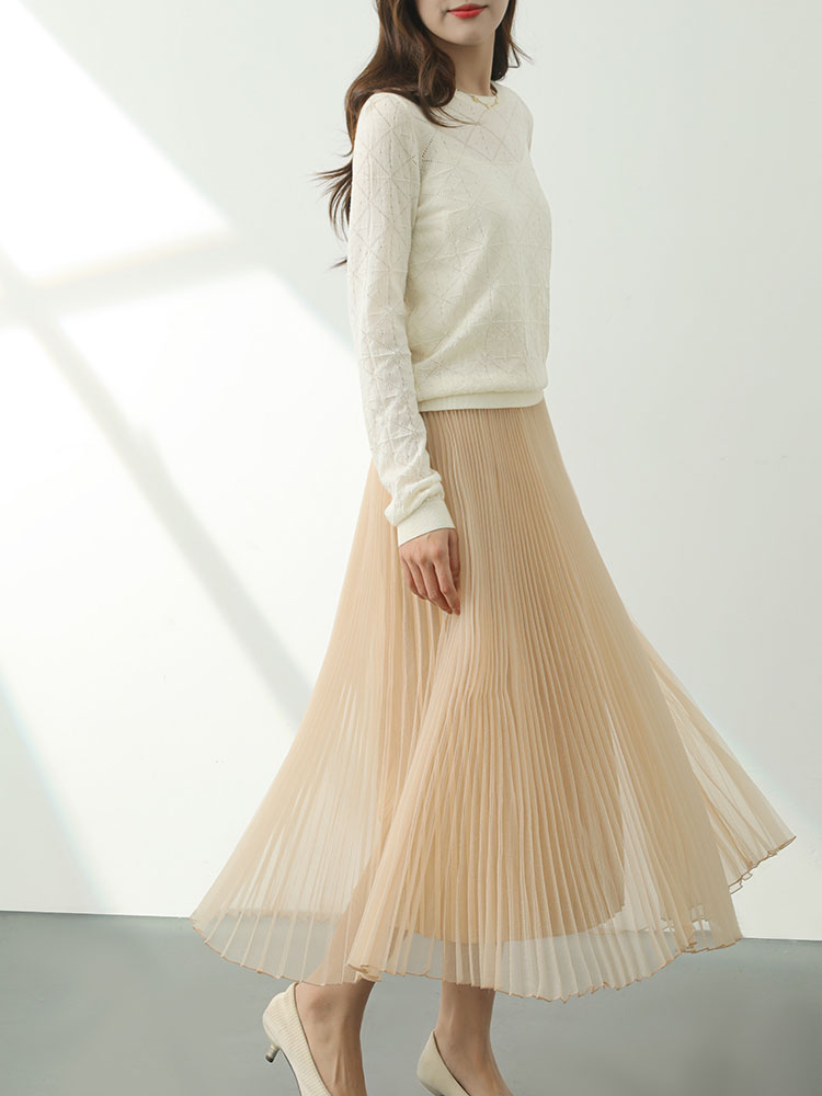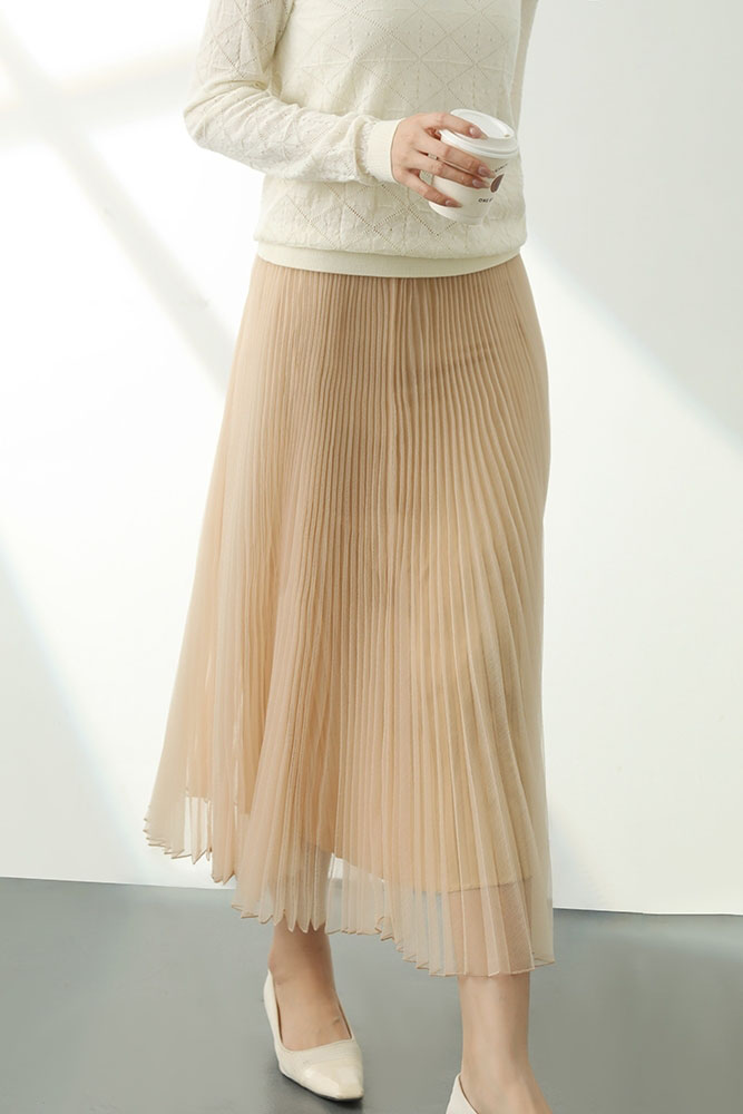 「K」洛诗琳04202仙气网纱半身裙2025夏季气质高腰A字百褶裙1083