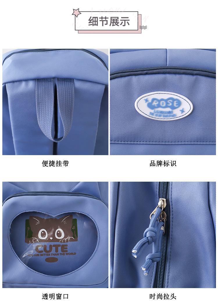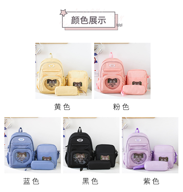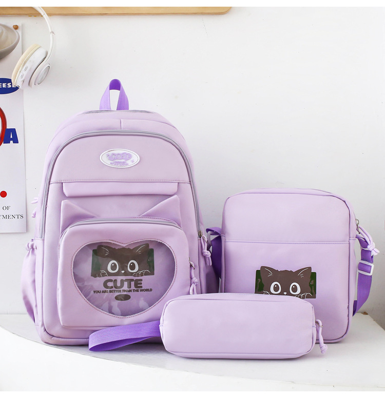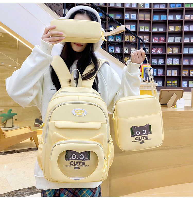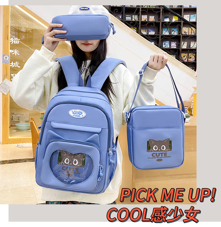 【新款书包三件套,大容量猫咪双肩包!】新款学生书包中小学生背包三件套 大容量可爱猫咪上课双肩包-QQ