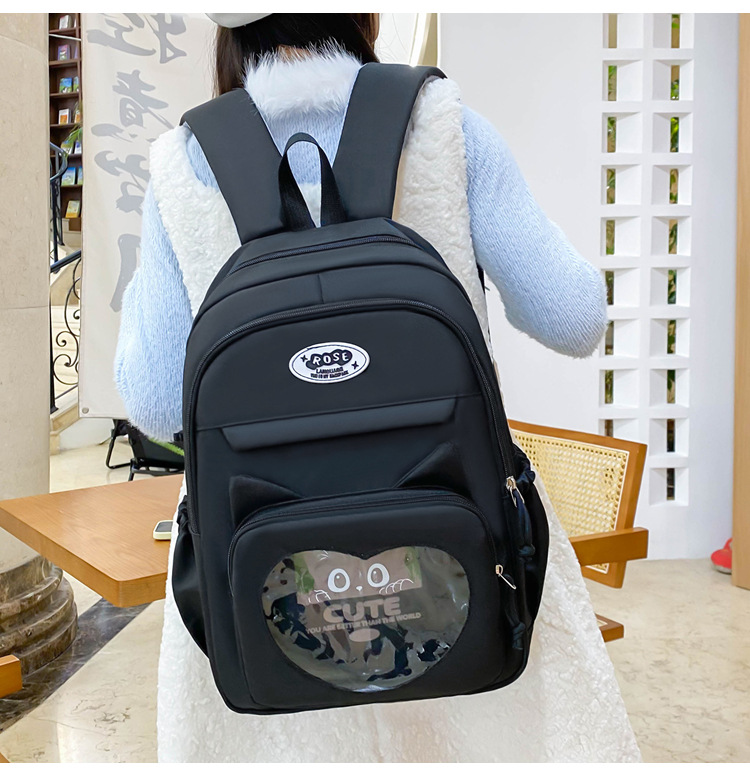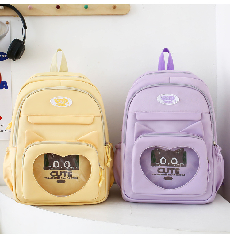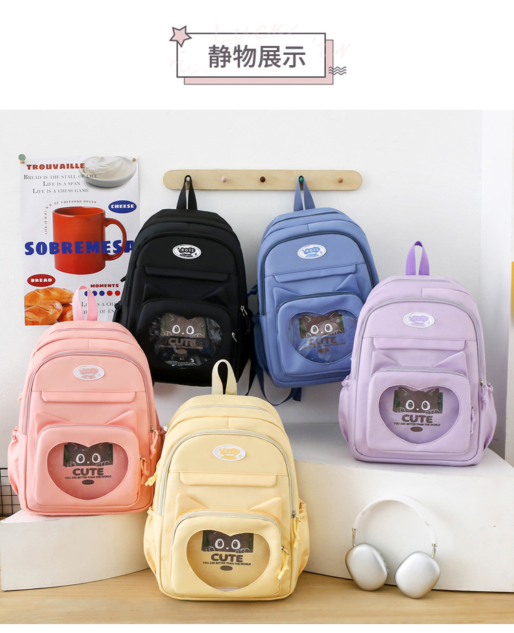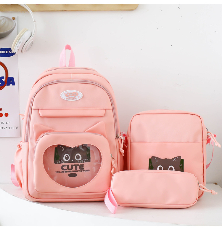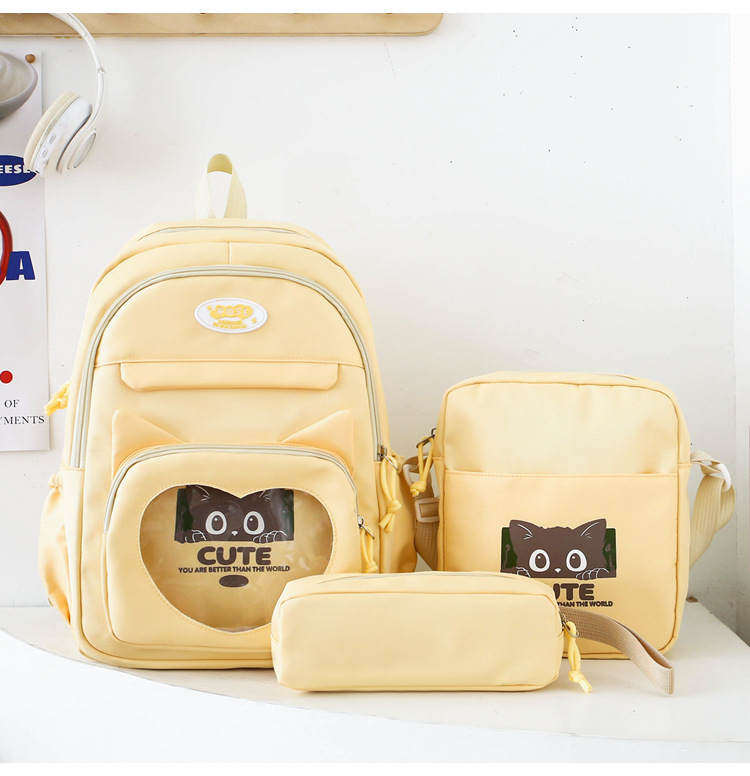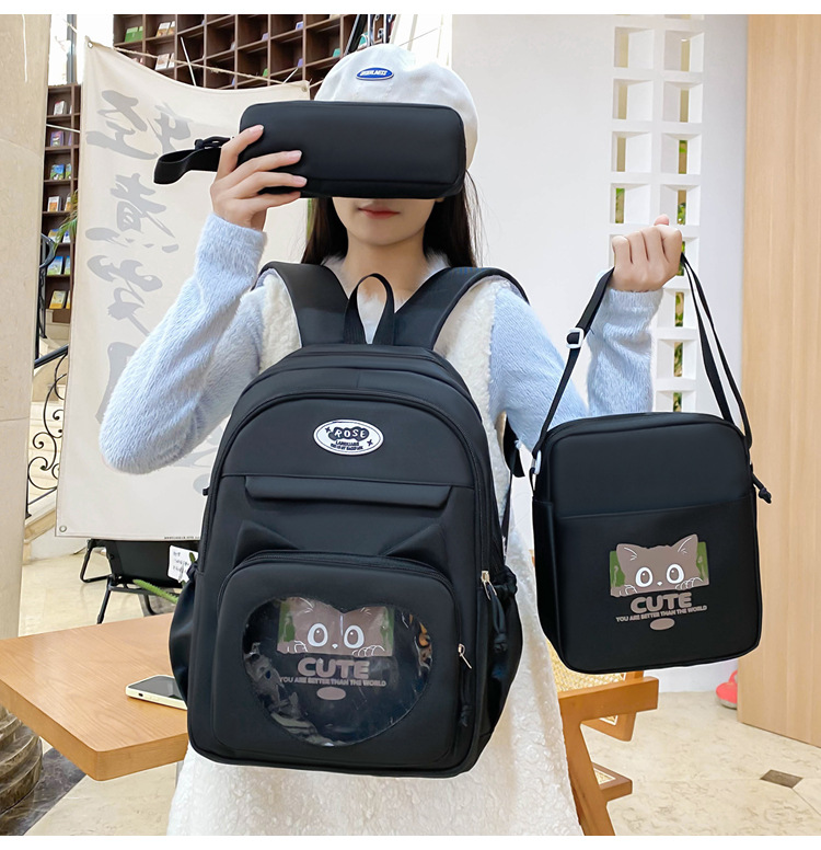 【新款书包三件套,大容量猫咪双肩包!】新款学生书包中小学生背包三件套 大容量可爱猫咪上课双肩包-QQ
