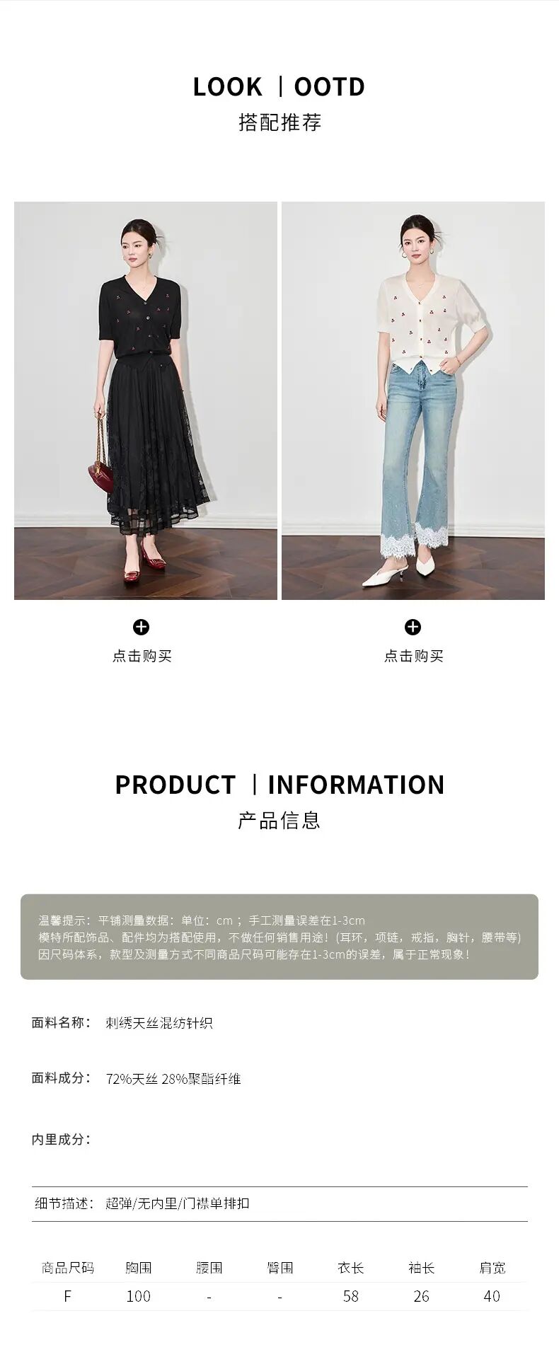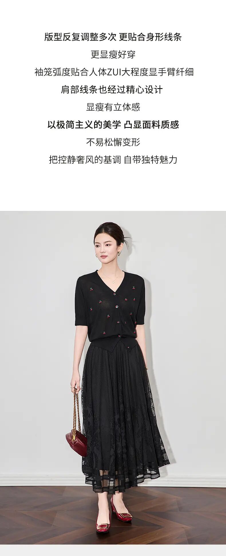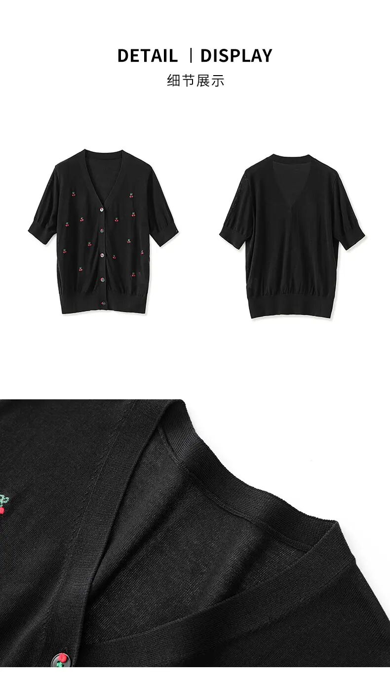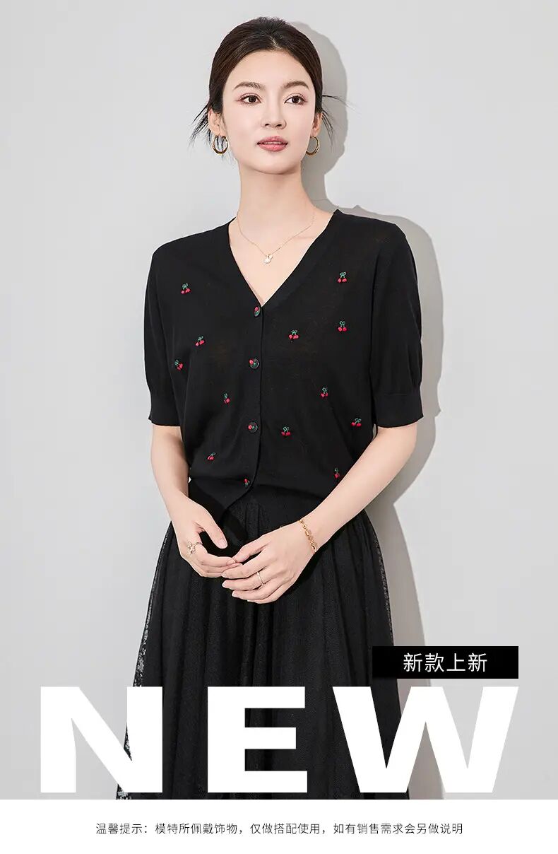【高货wl】全新升级【铂金会员165/天猫219/差价54】(00354) 洛诗琳雅致甜俏樱桃刺绣天丝V领针织开衫精致休闲新款上衣