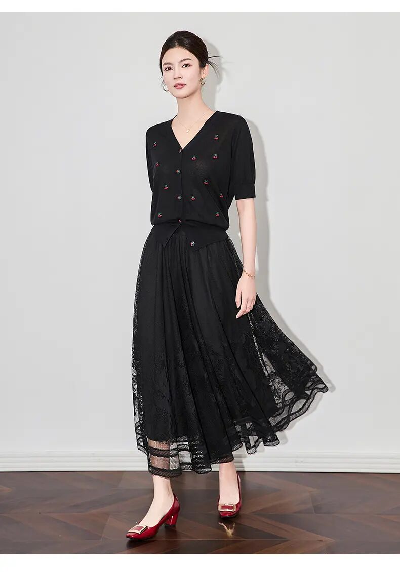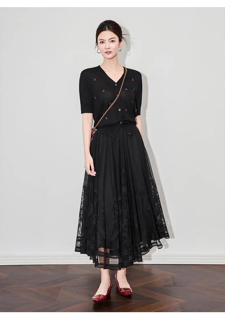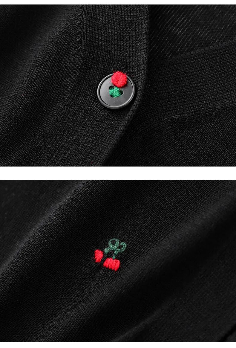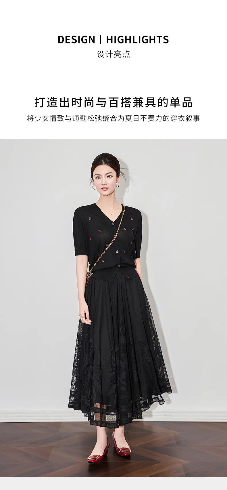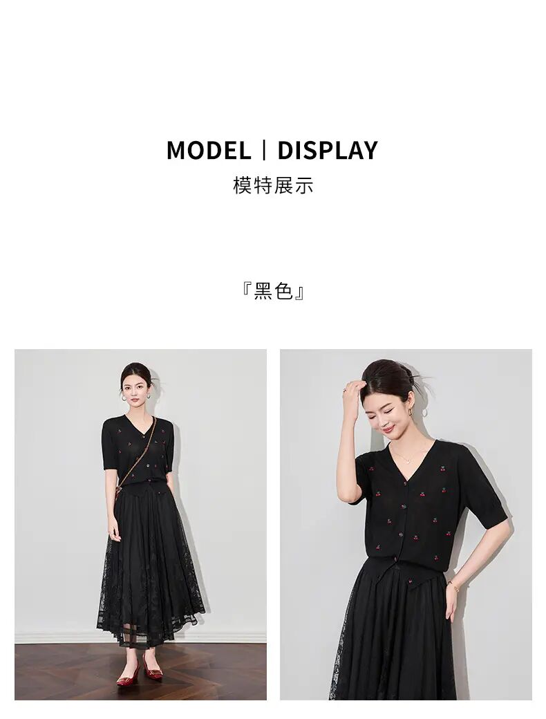 【高货wl】全新升级【铂金会员165/天猫219/差价54】(00354) 洛诗琳雅致甜俏樱桃刺绣天丝V领针织开衫精致休闲新款上衣
