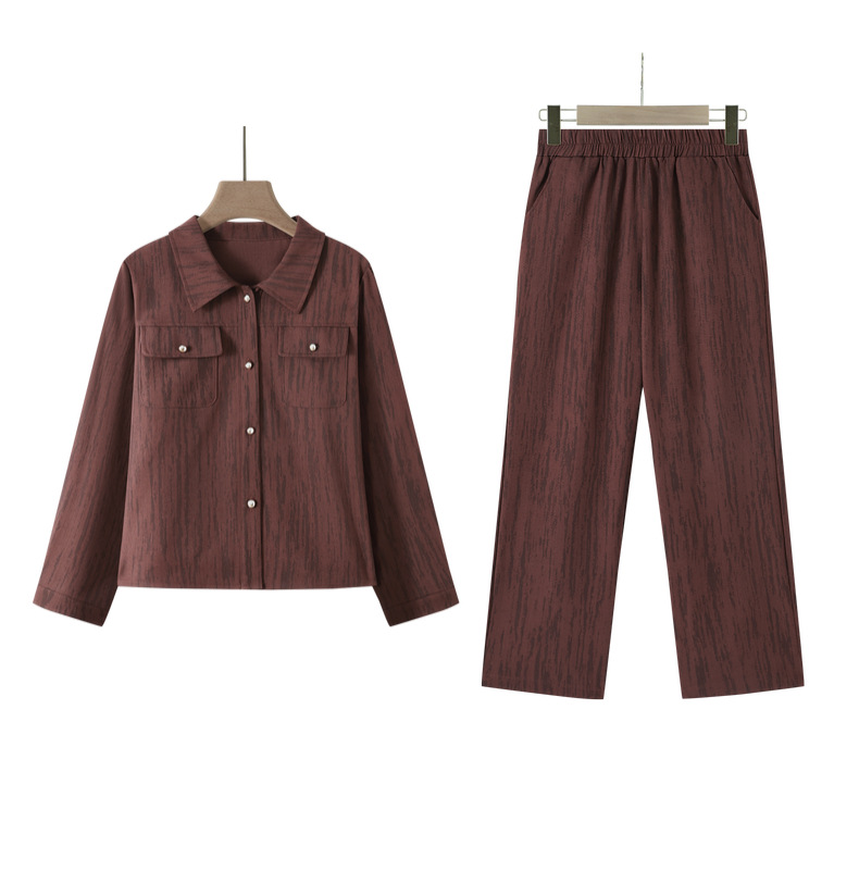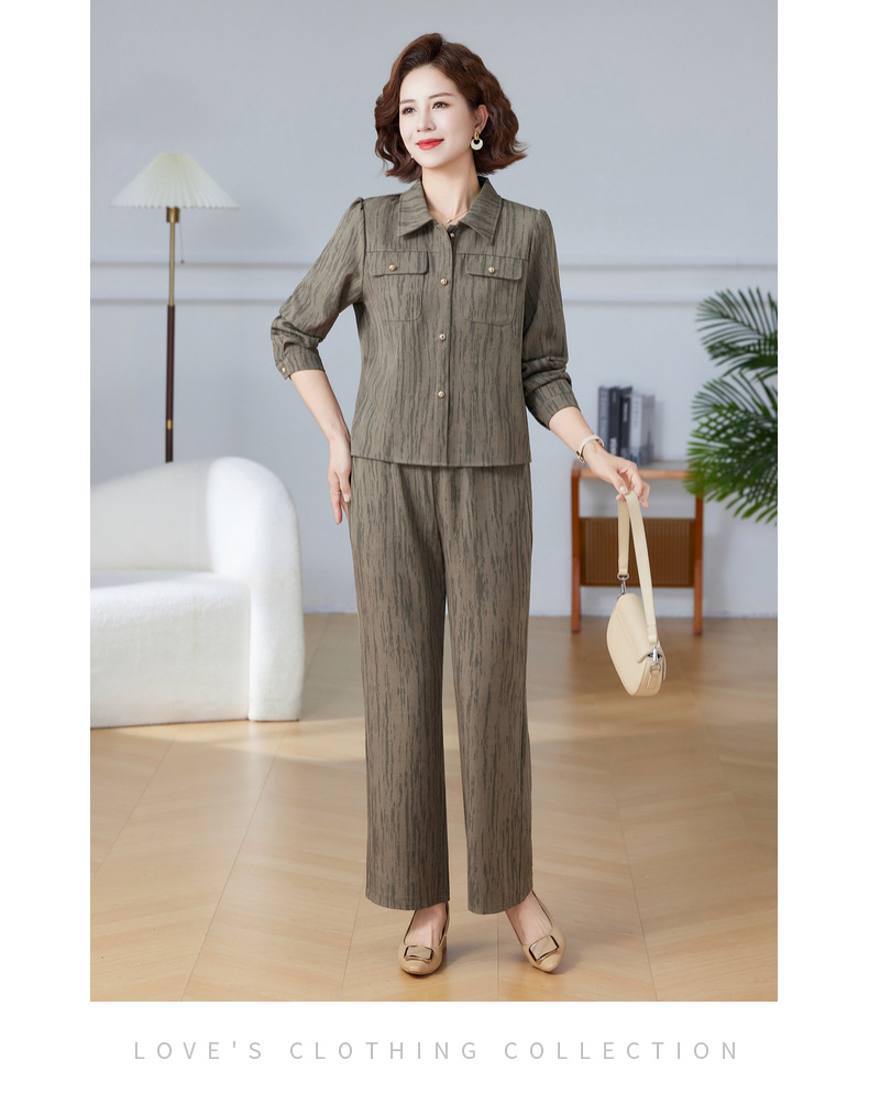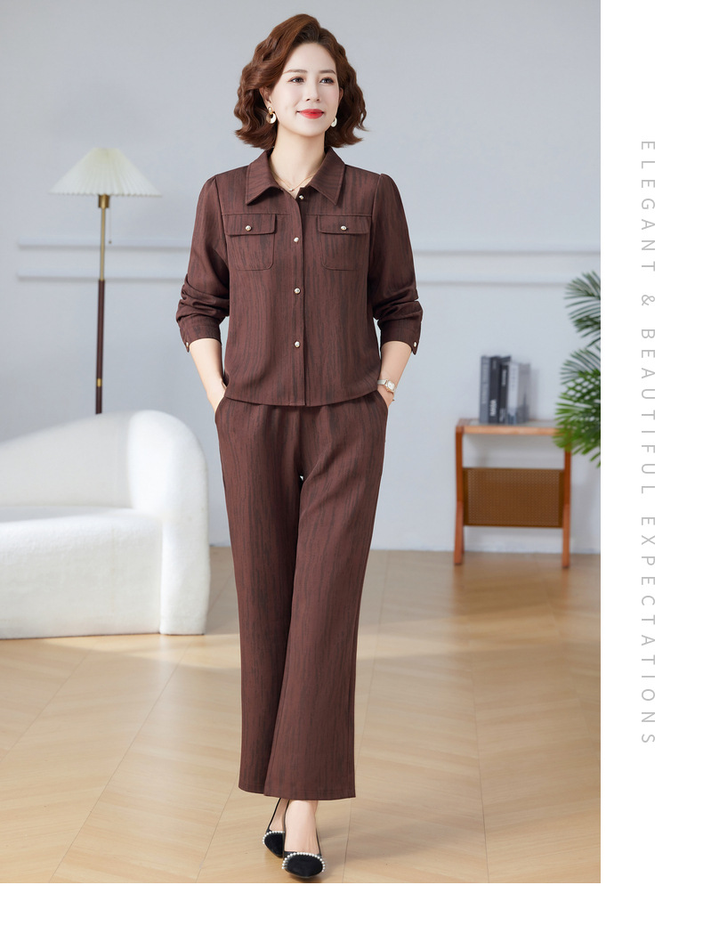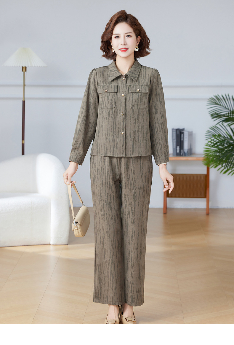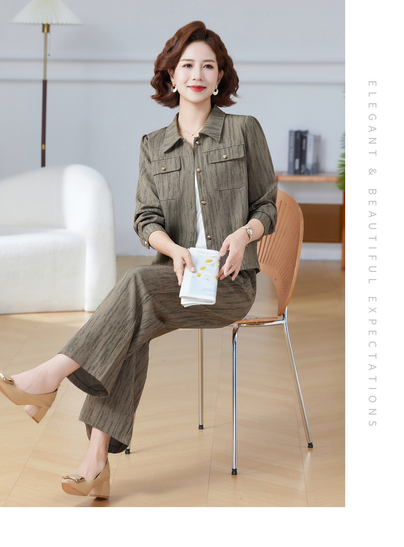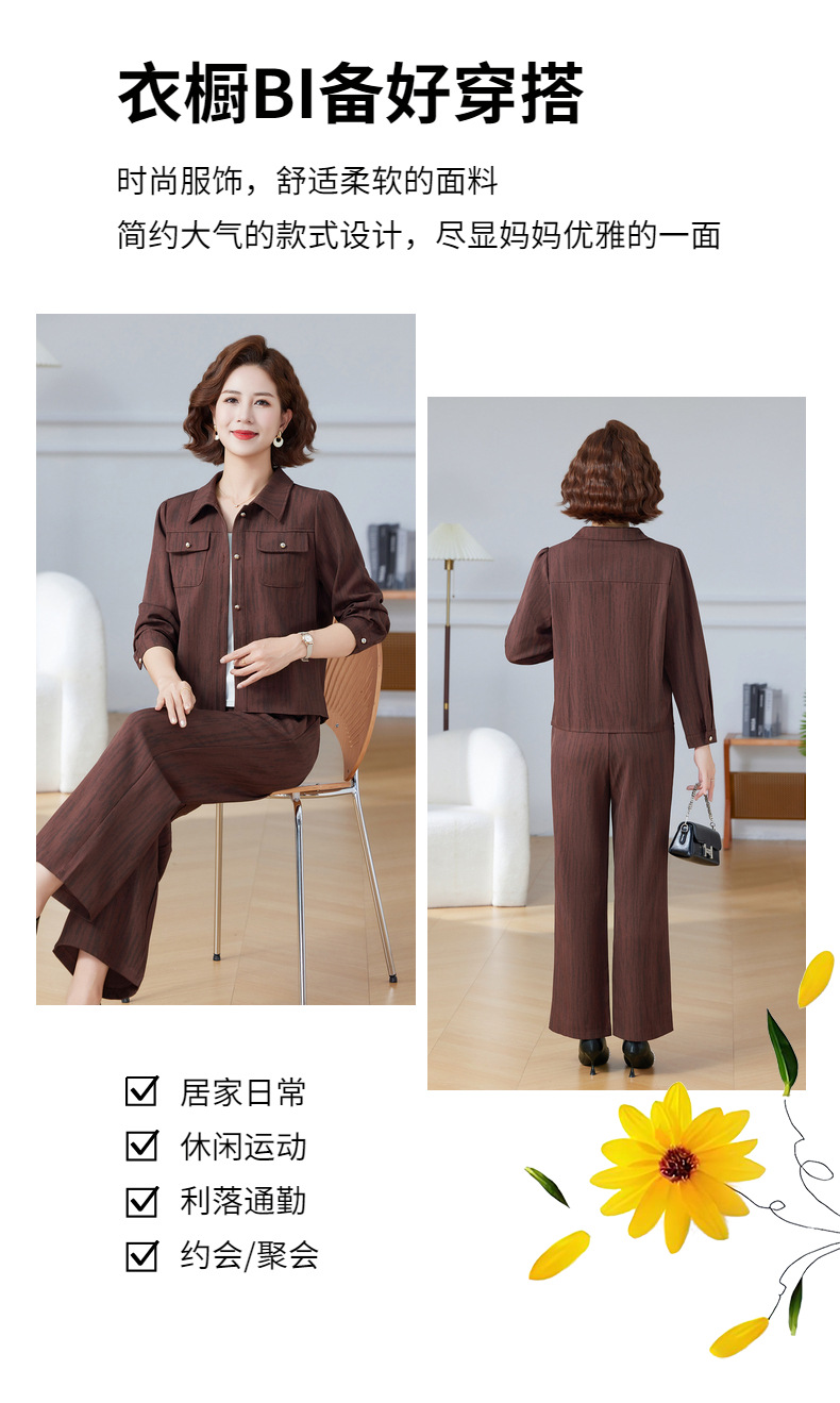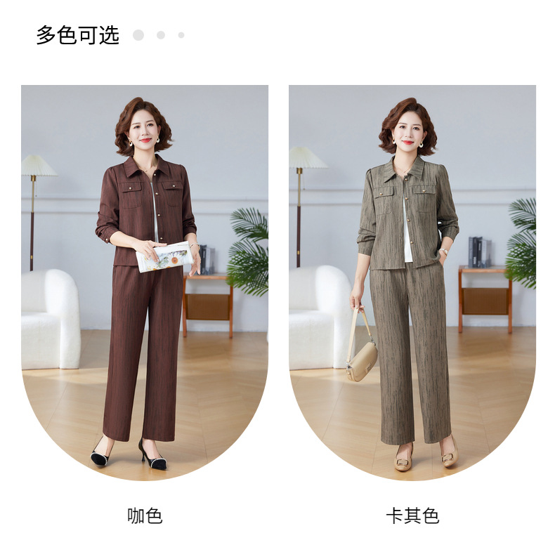 Q1073时尚套装2025秋新款气质休闲开衫妈妈装减龄显瘦中老年女装两件套 商品图0
