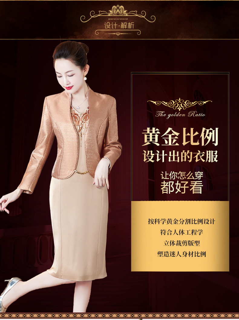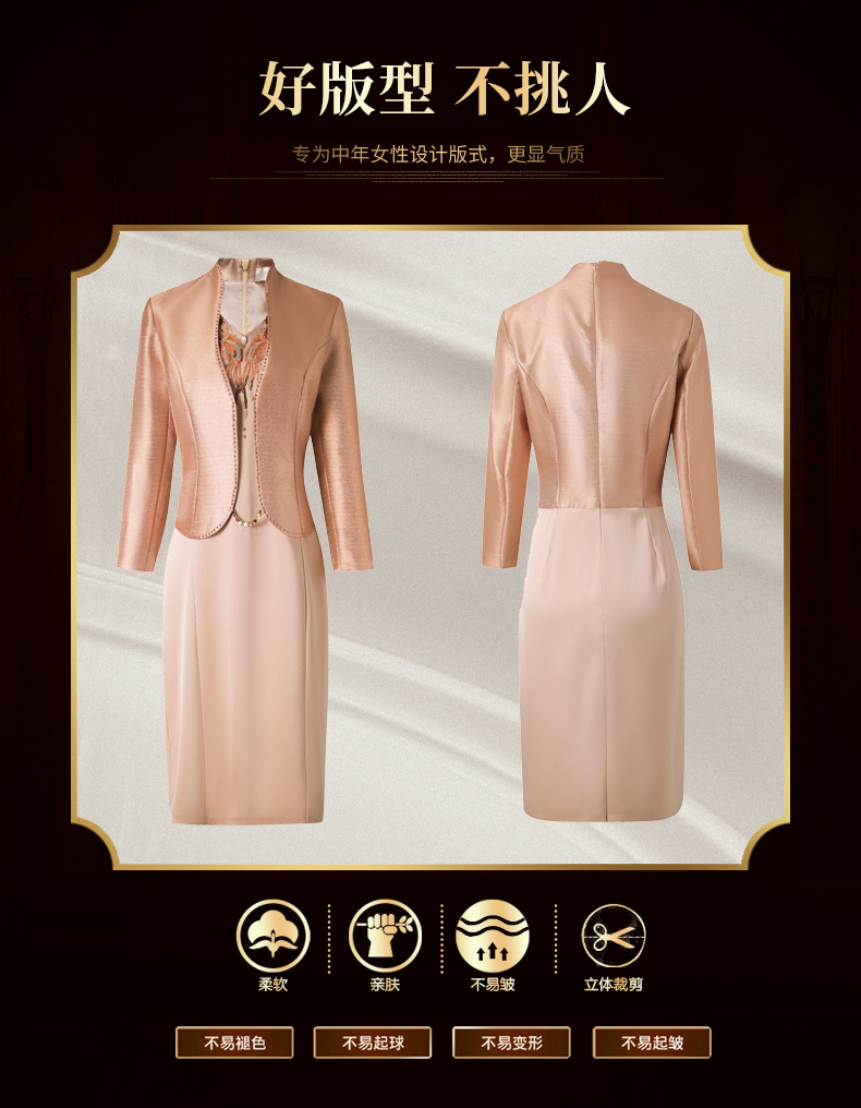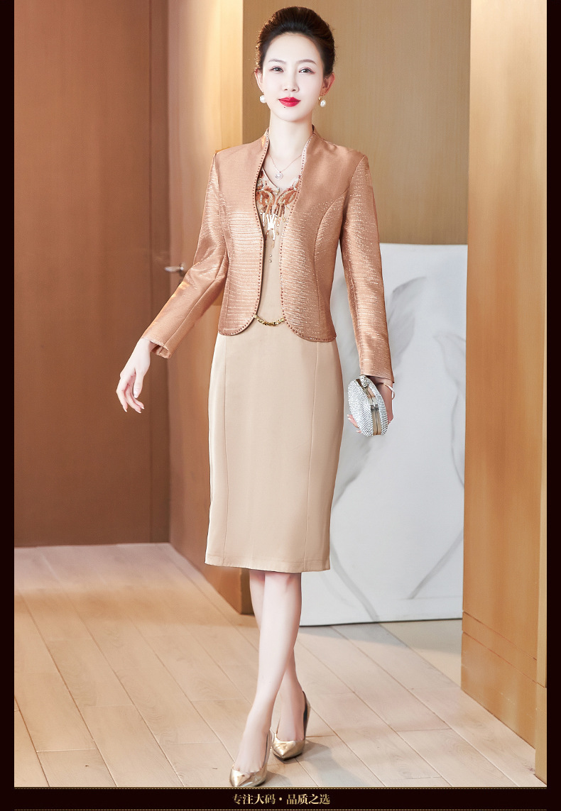 JC-2291年轻喜婆婆婚宴装香槟色婚礼优雅高贵洋气丈母娘晚礼服连衣裙