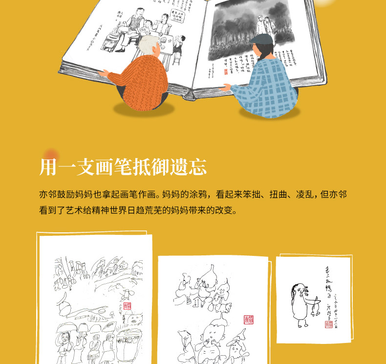 亦邻的妈妈患上了阿尔茨海默病。以前“无所不能的超人妈妈”变成了一个被剥离了记忆、情感和正常认知能力的懵懂老人。作为一名插画师,亦邻试图用绘画帮妈妈抵御遗忘、留存记忆。看到妈妈被画里以前的场景唤起回忆,开口说出“我还记得”,亦邻深受触动,于是坚持每天给妈妈画一幅画,画爸爸妈妈相亲相爱的时光,画三姐妹小时候的故事,画妈妈曾经的理想…… 亦邻还鼓励妈妈拿起画笔作画,妈妈有时临摹亦邻的画,有时也写生,画家里的花花草草;心情好时,也提笔创作,画下三姐妹小时候的肖像;阿尔茨海默病患者的涂鸦,笨拙、扭曲、凌乱,但亦邻看到了艺术给精神世界日趋荒芜的妈妈带来的改变,这鼓舞她一路坚持画了下来,她把这个系列的绘画命名为“唤醒妈妈的记忆”。