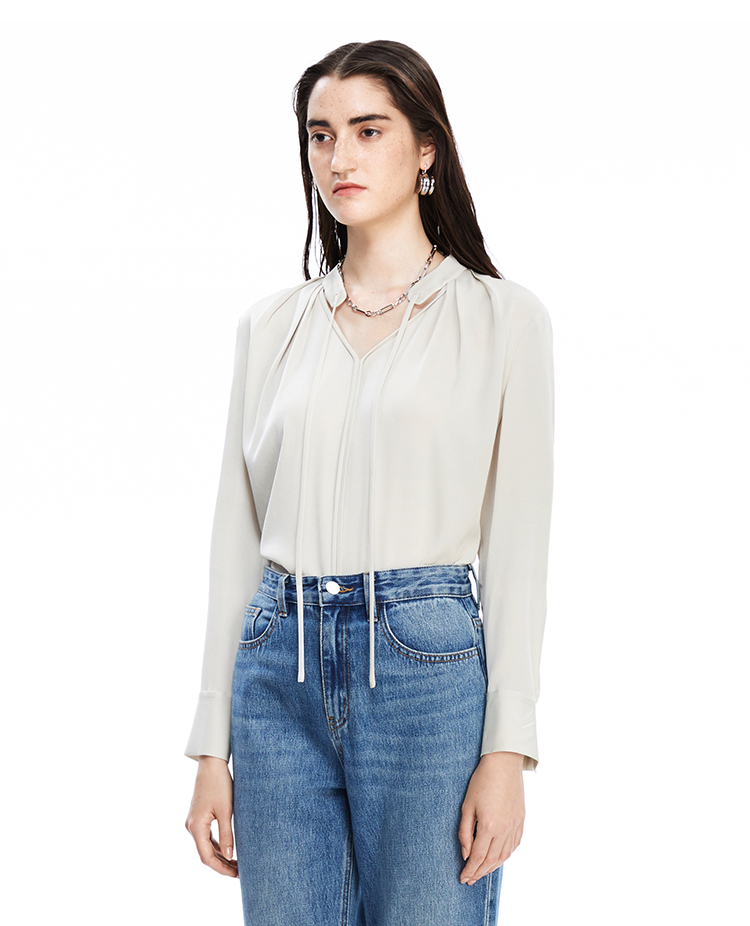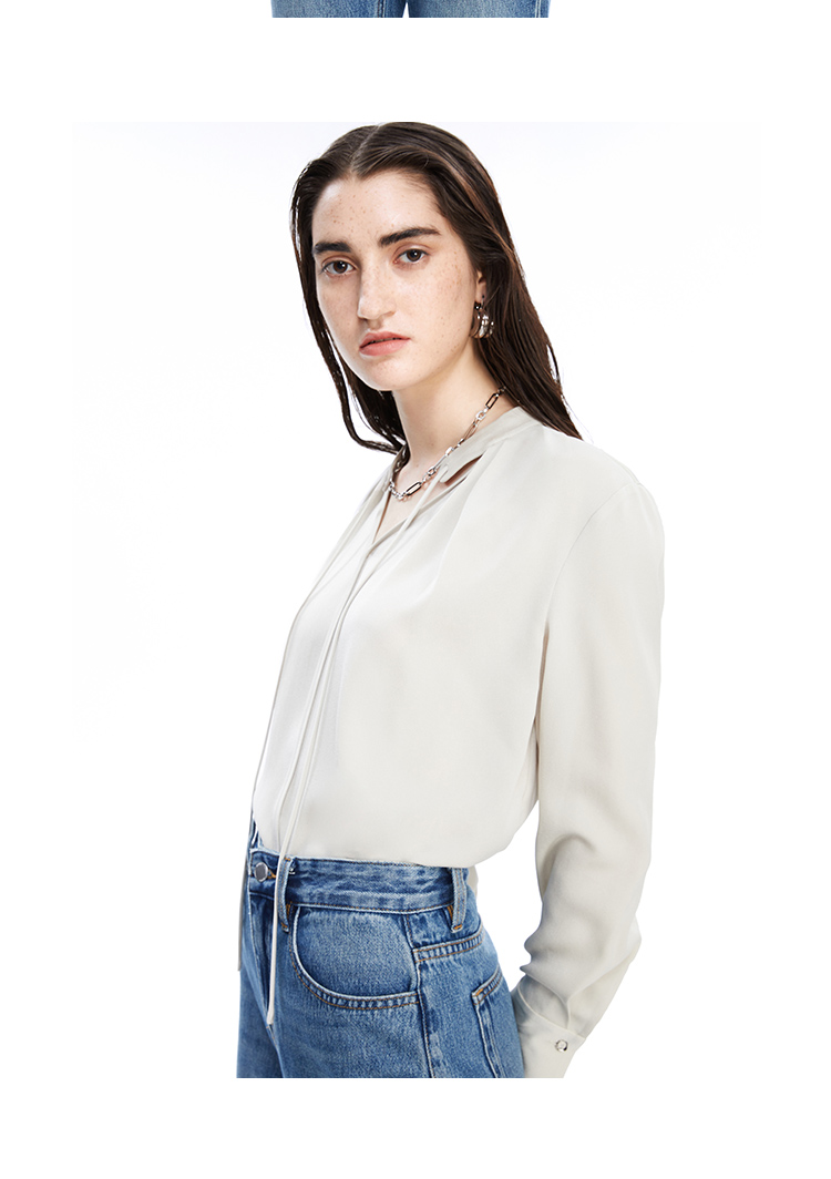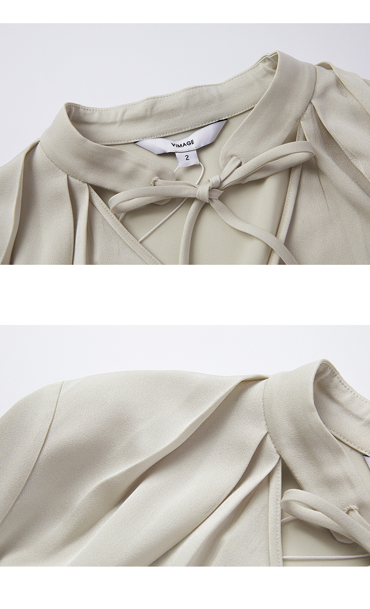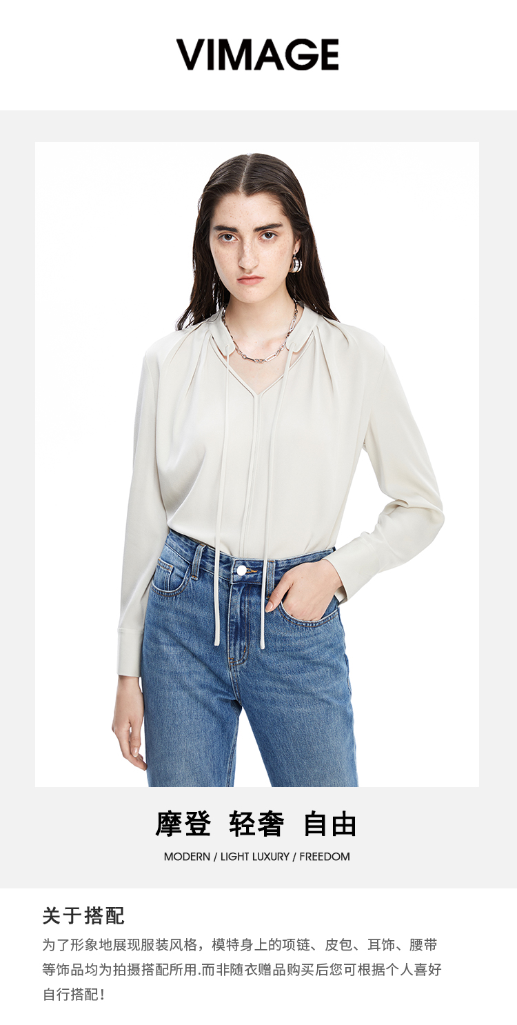 VIMAGE纬漫纪秋季新款纯色通勤百搭系带衬衬衣女士小上衣1613203