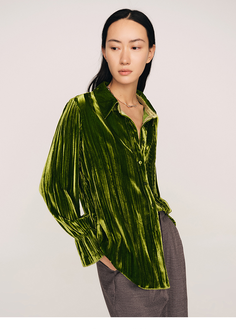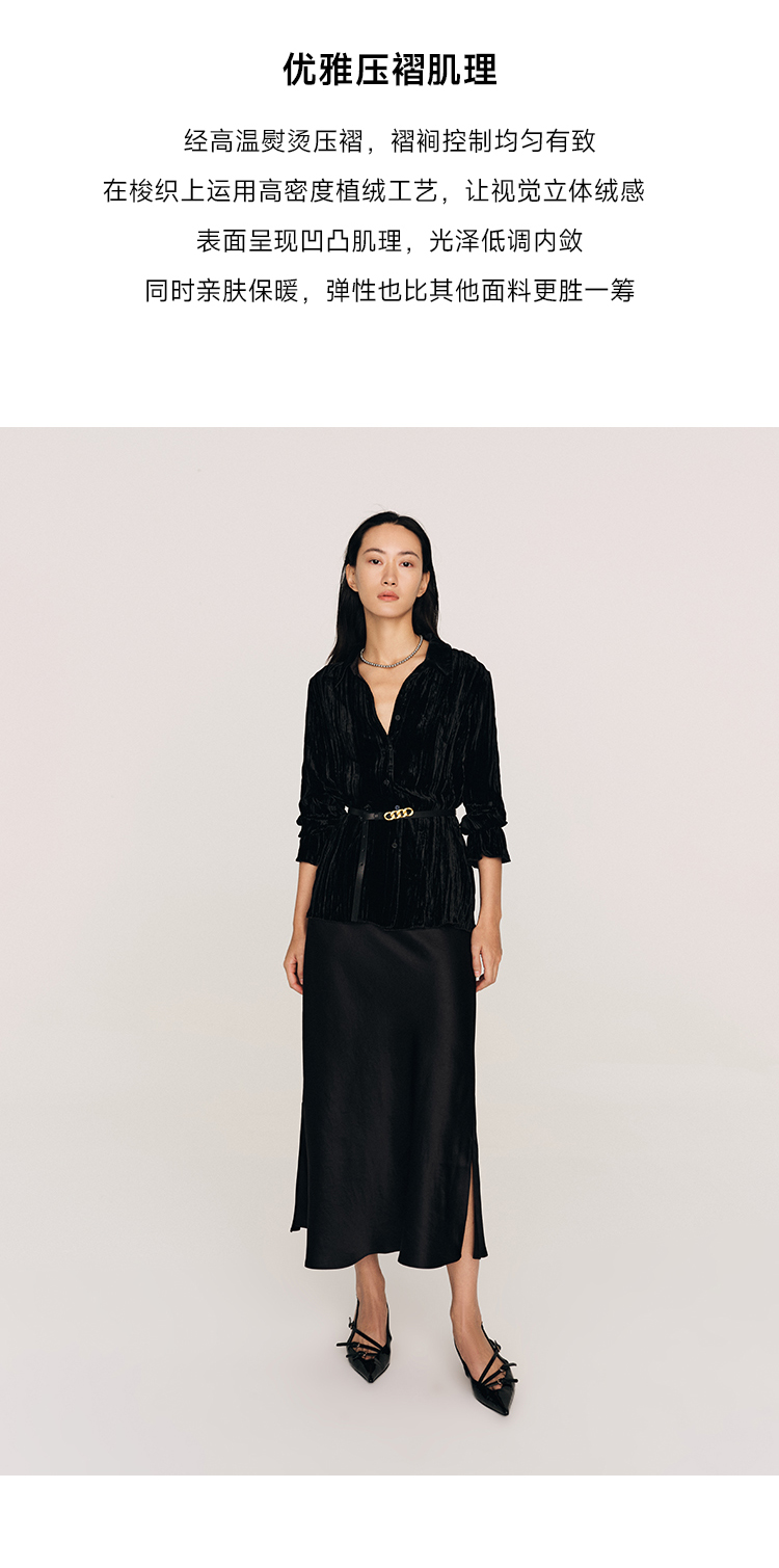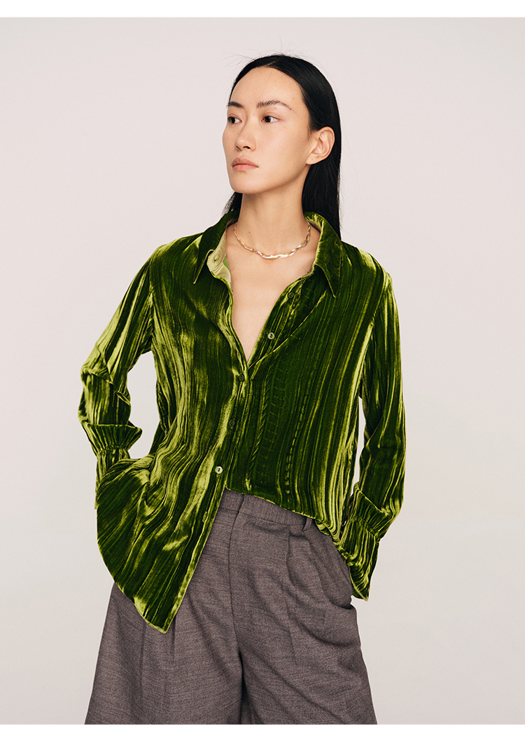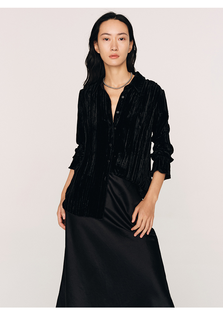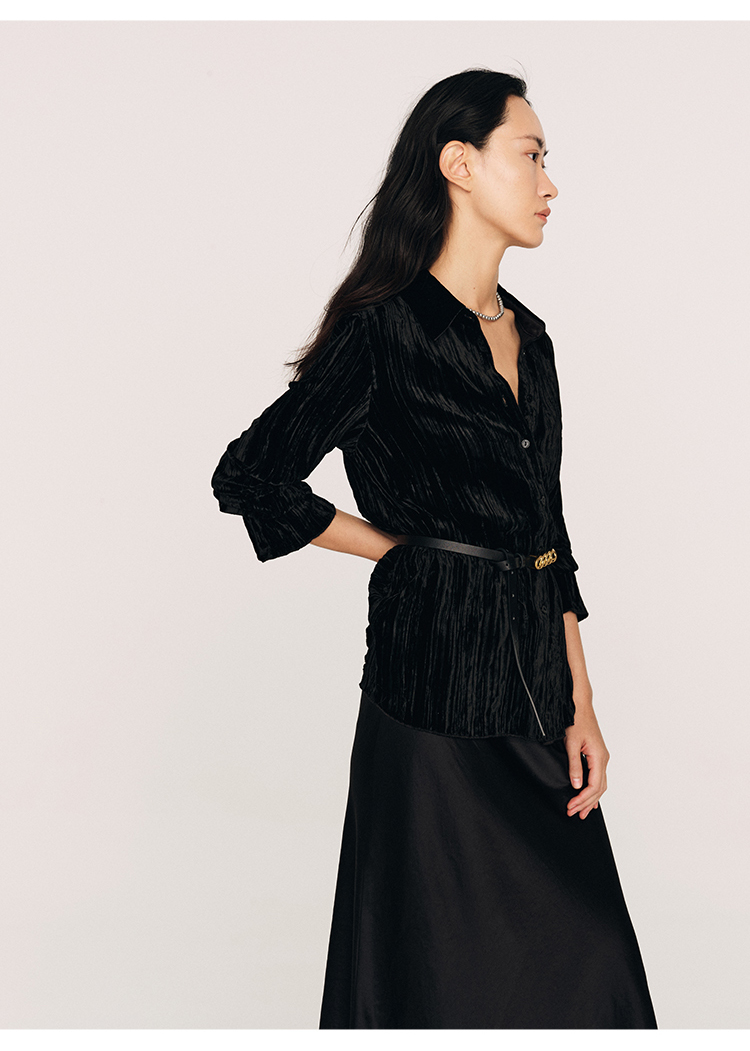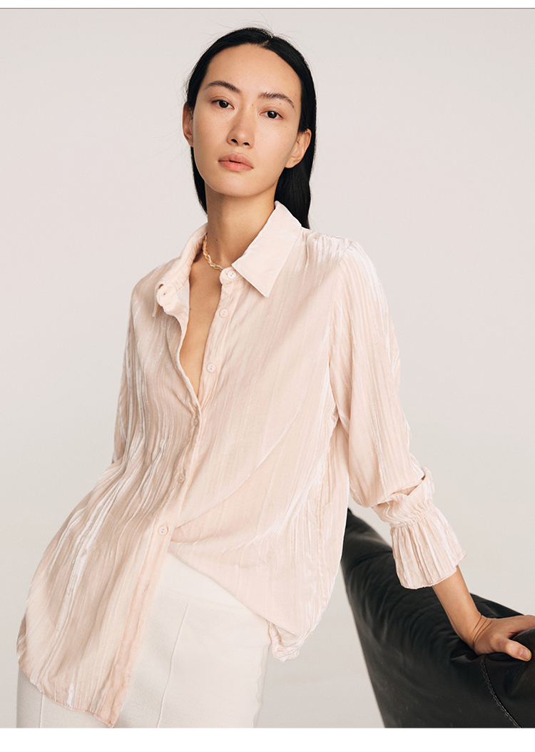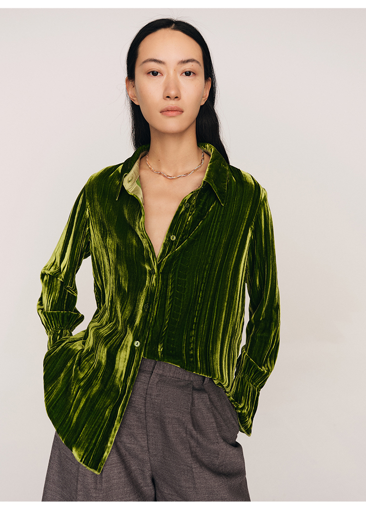 重磅真丝丝绒 立体褶皱衬衫FJ475123O