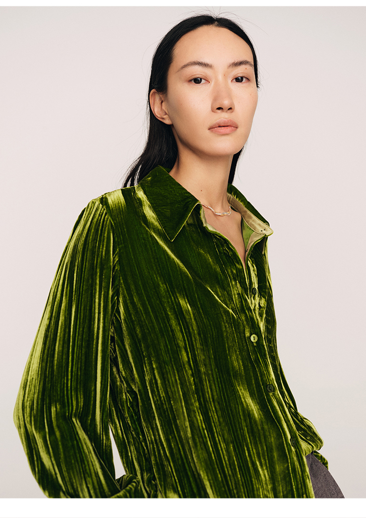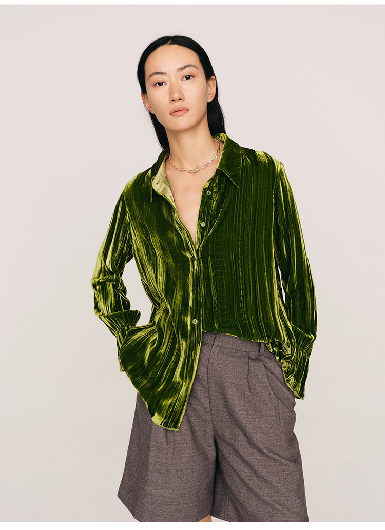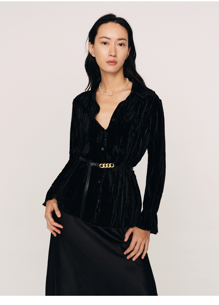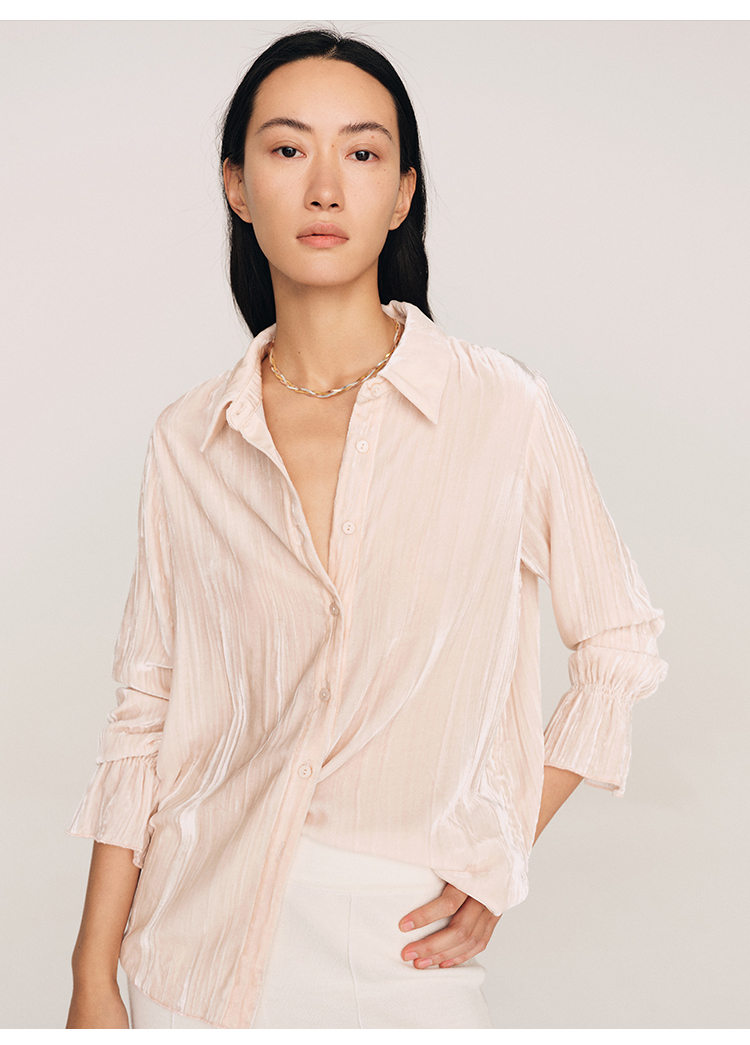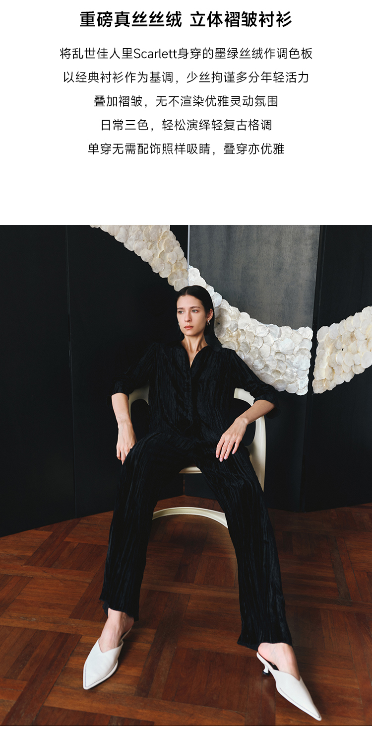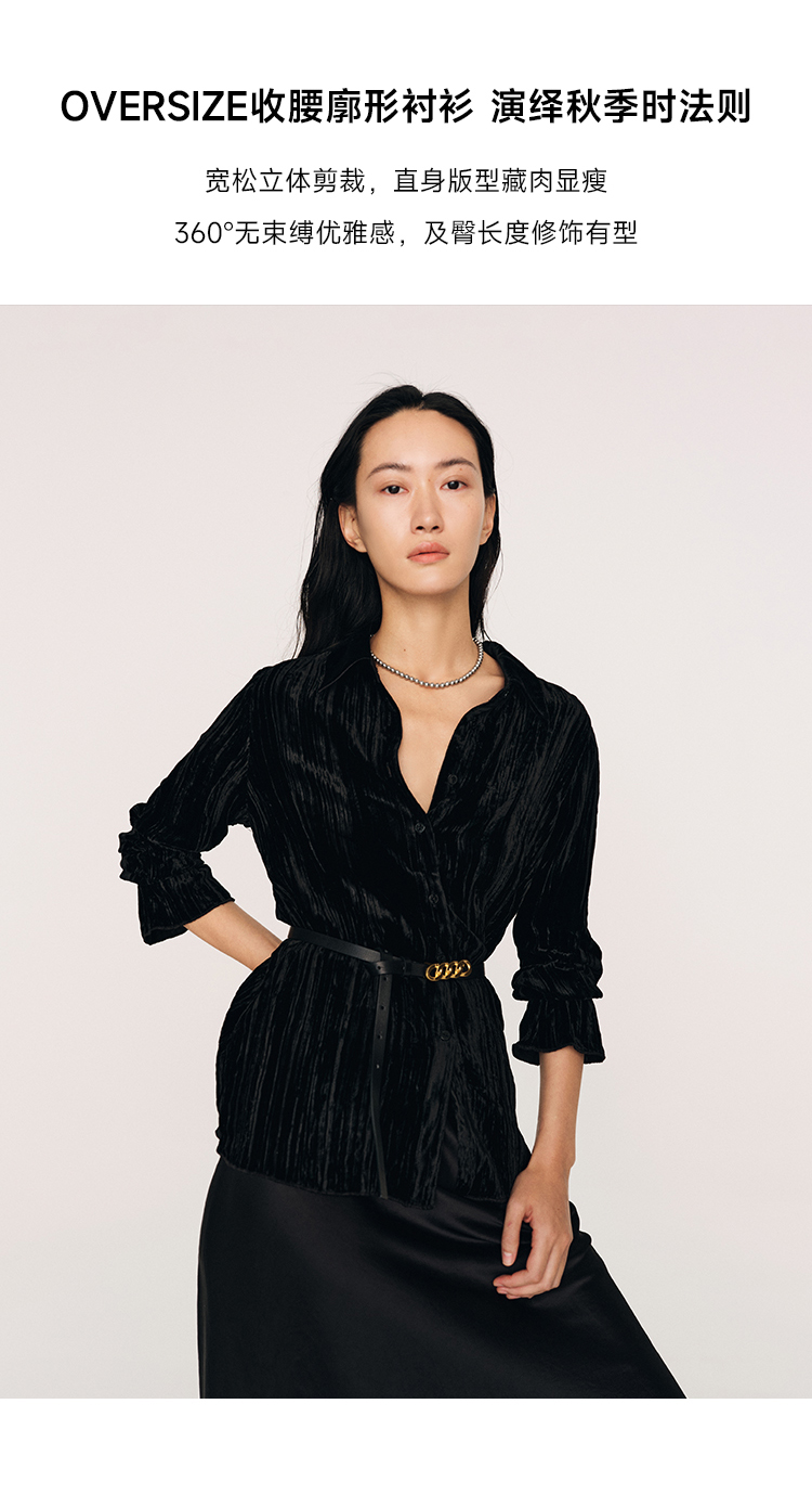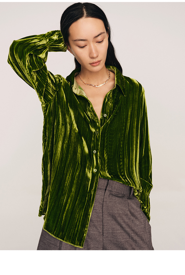 重磅真丝丝绒 立体褶皱衬衫FJ475123O