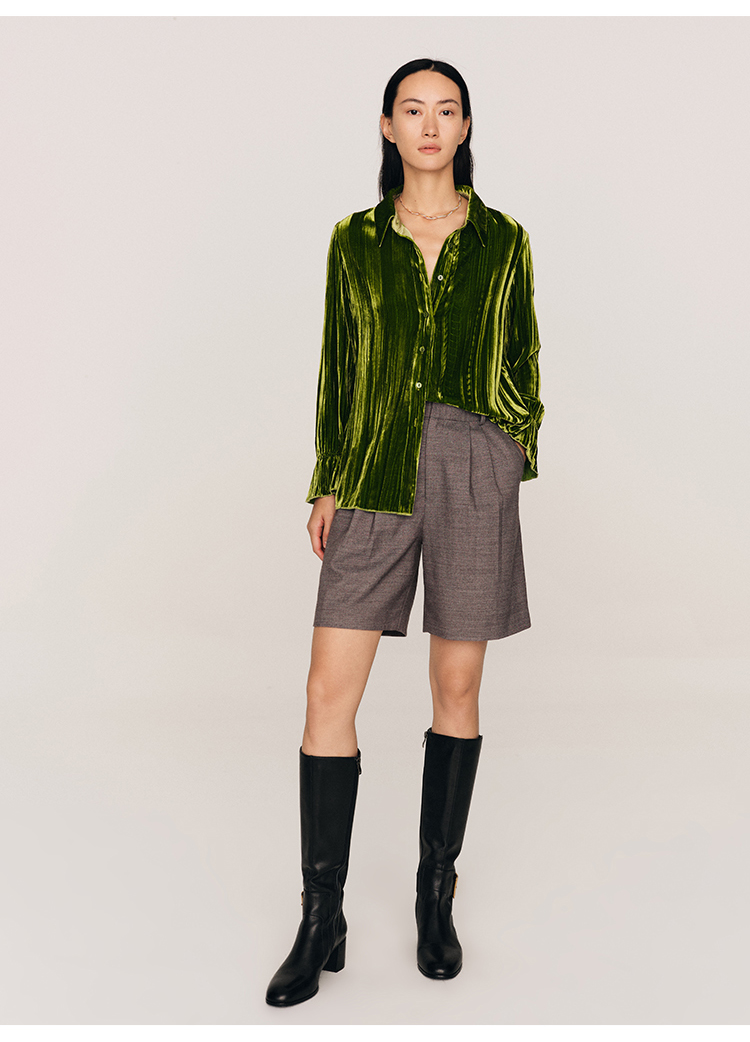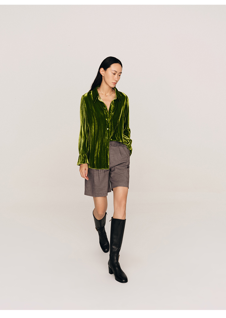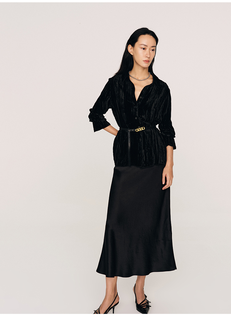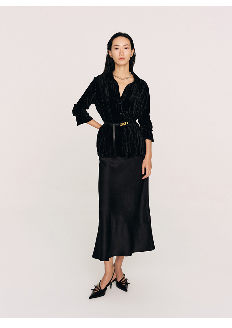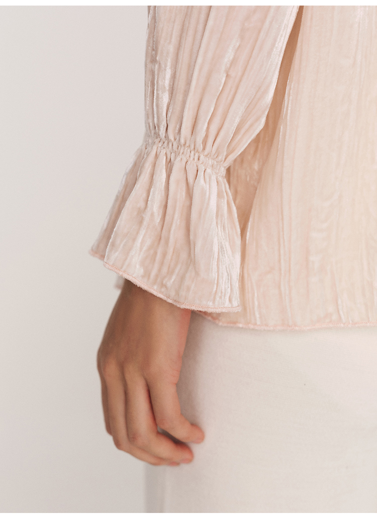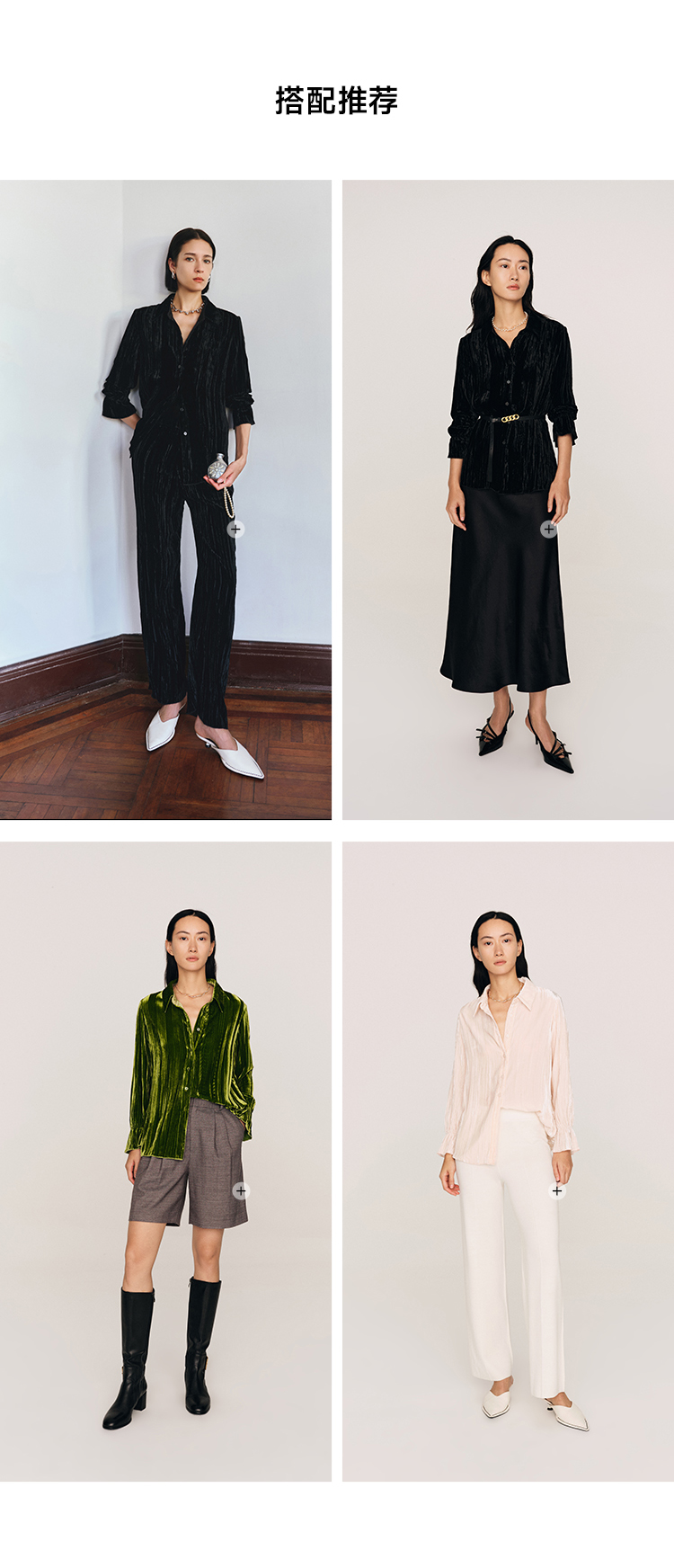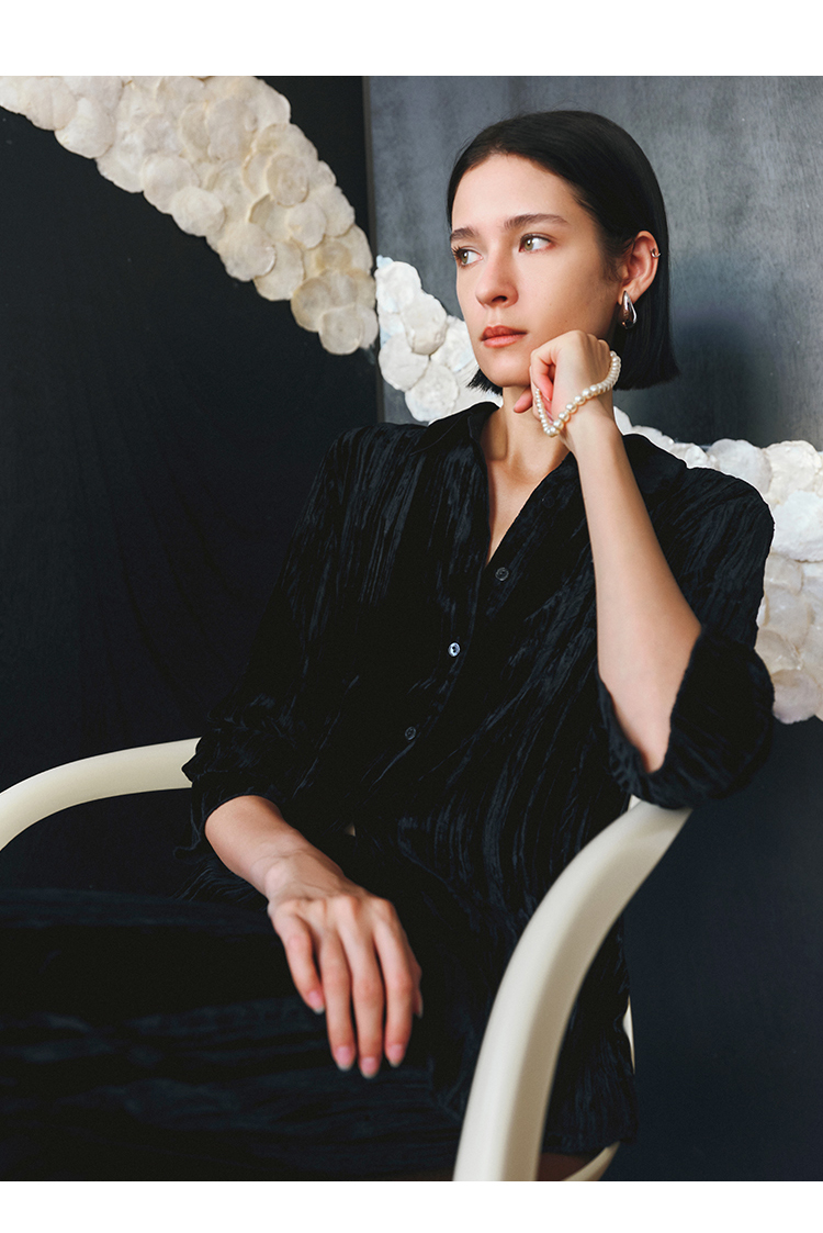 重磅真丝丝绒 立体褶皱衬衫FJ475123O