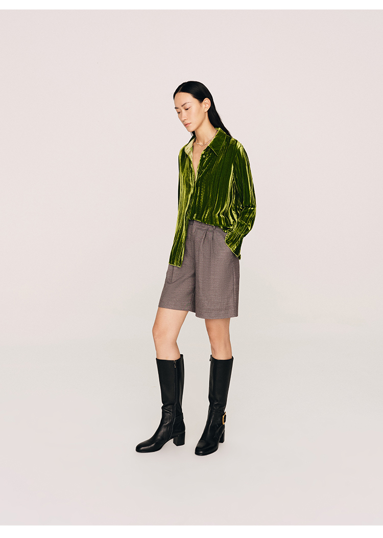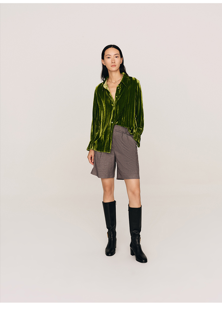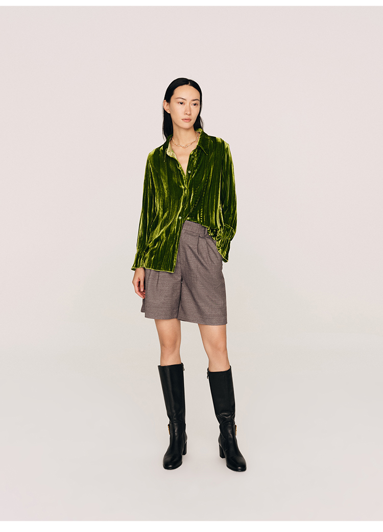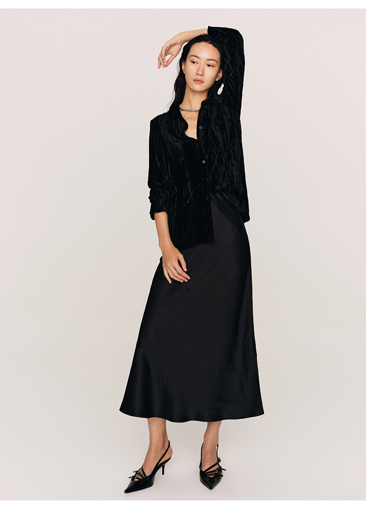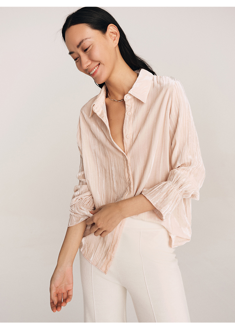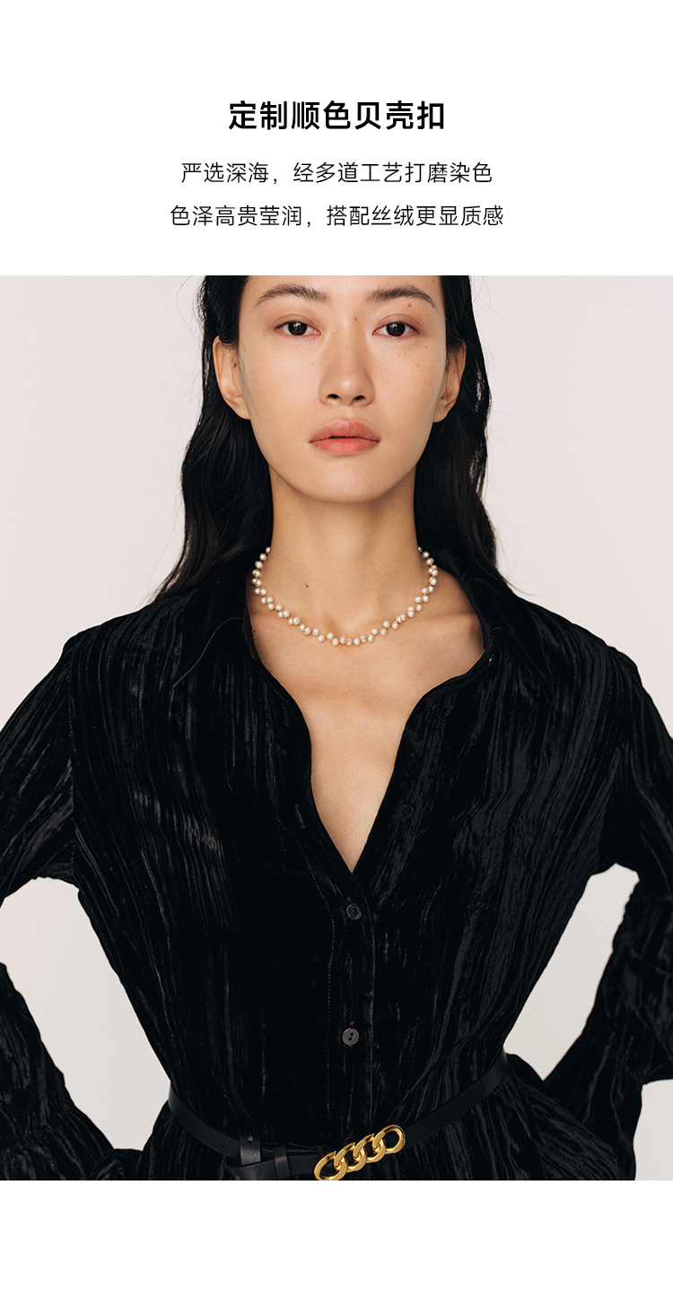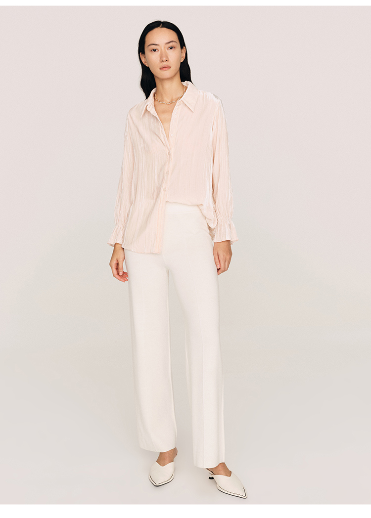 重磅真丝丝绒 立体褶皱衬衫FJ475123O