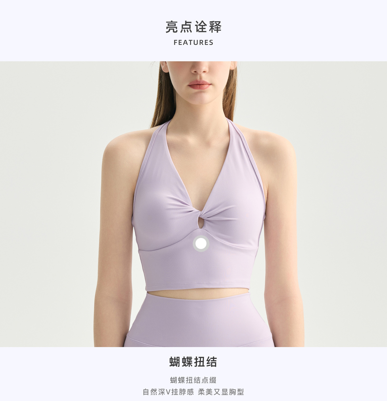 【3~5天发货】跃牌【美度空间】系列 蝴蝶扭结V领挂脖瑜伽内衣女带胸垫运动文胸WX62022