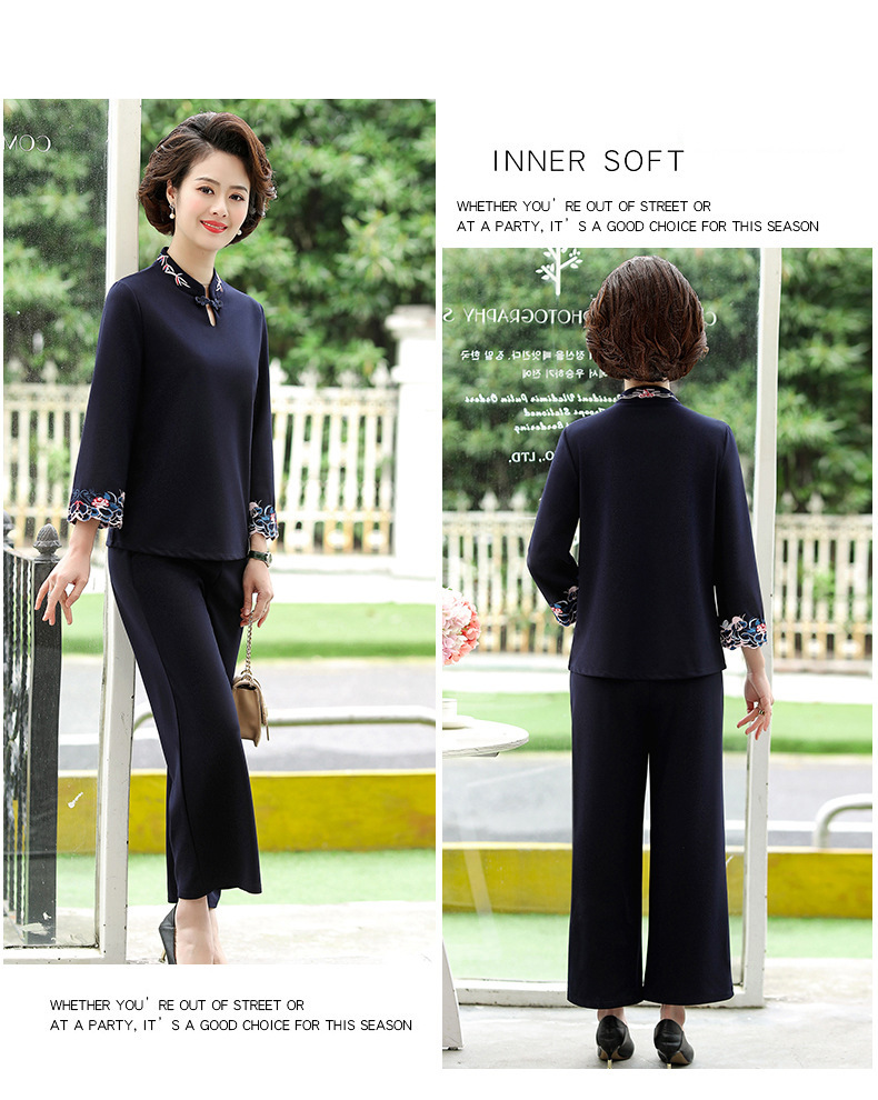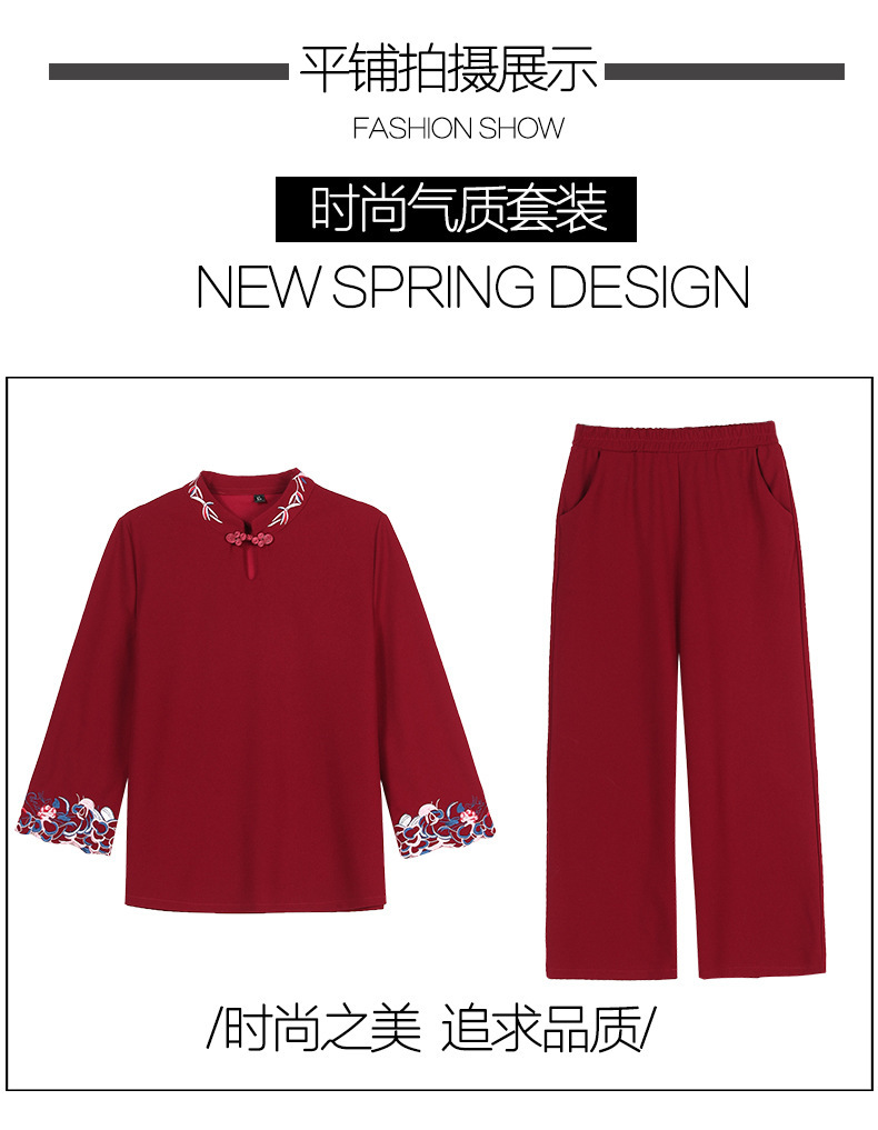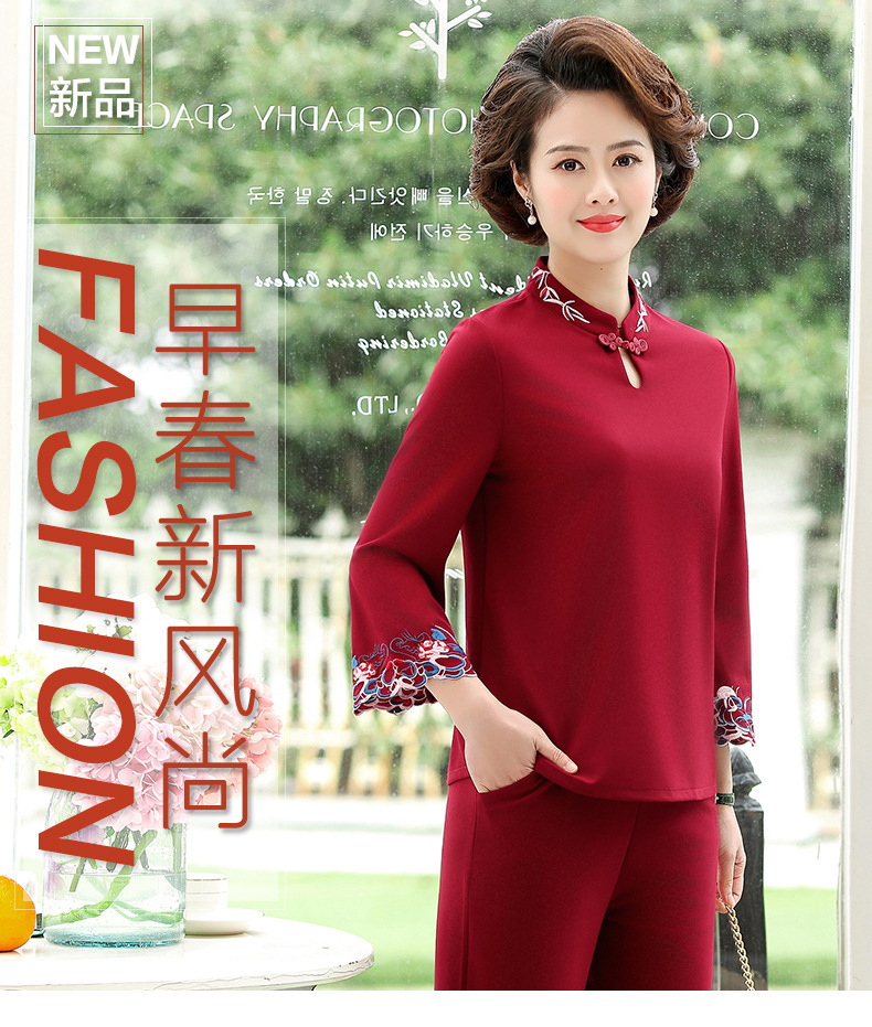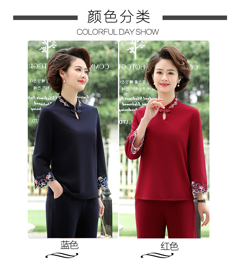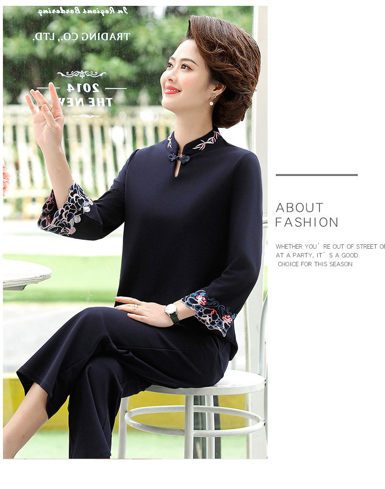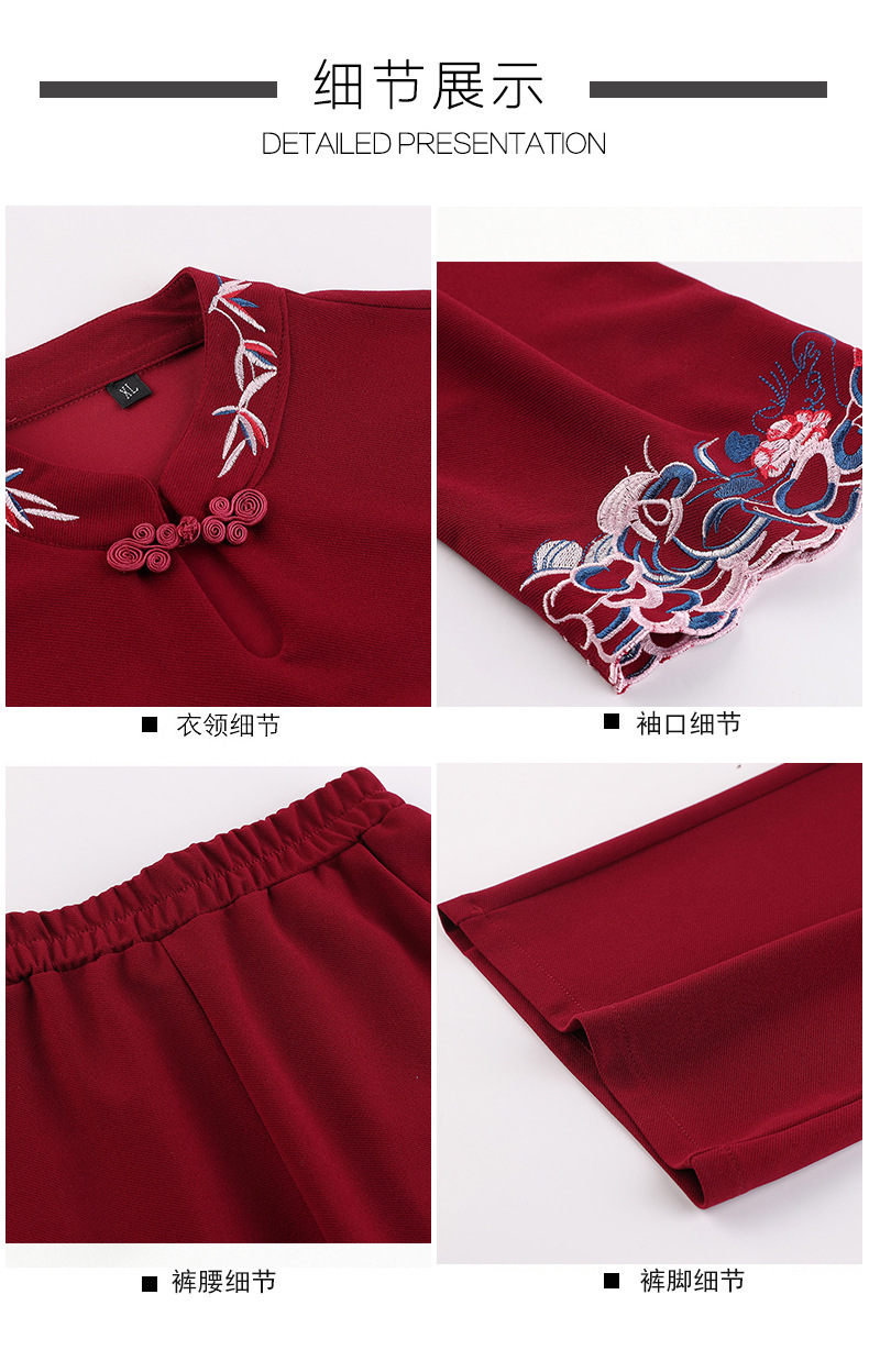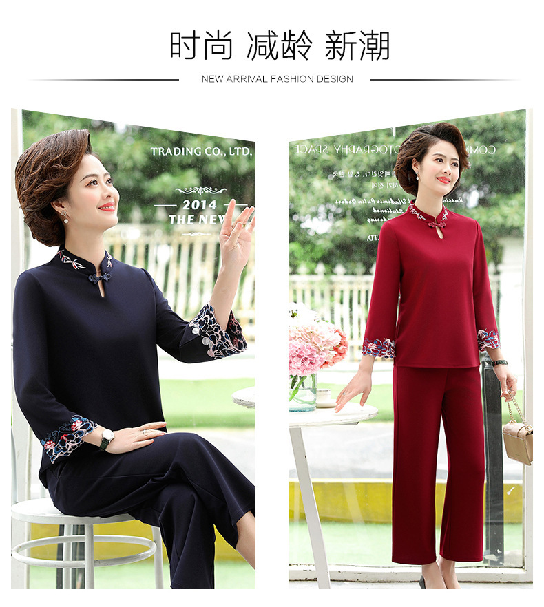 XK-XHR18810妈妈装2020新品 时尚绣花休闲九分袖两件套装