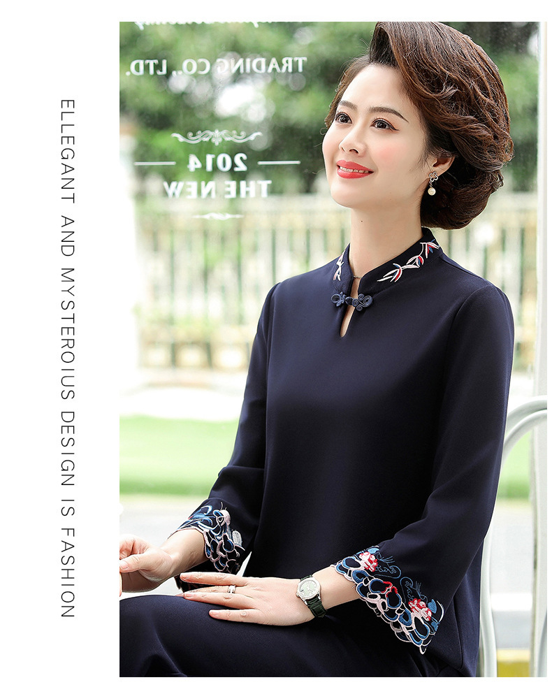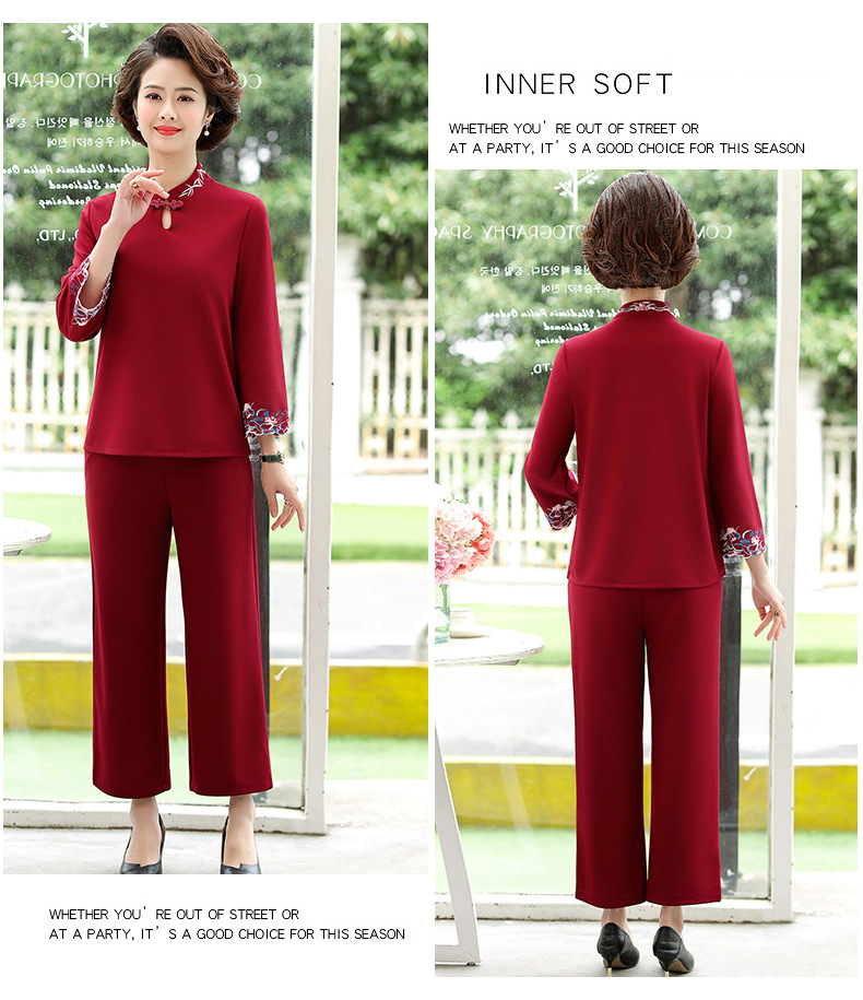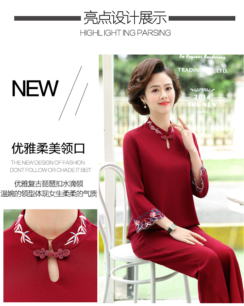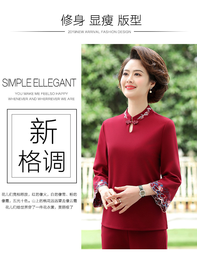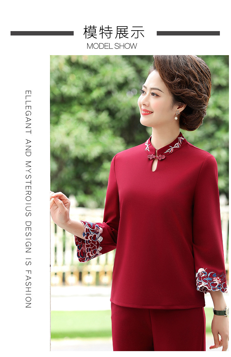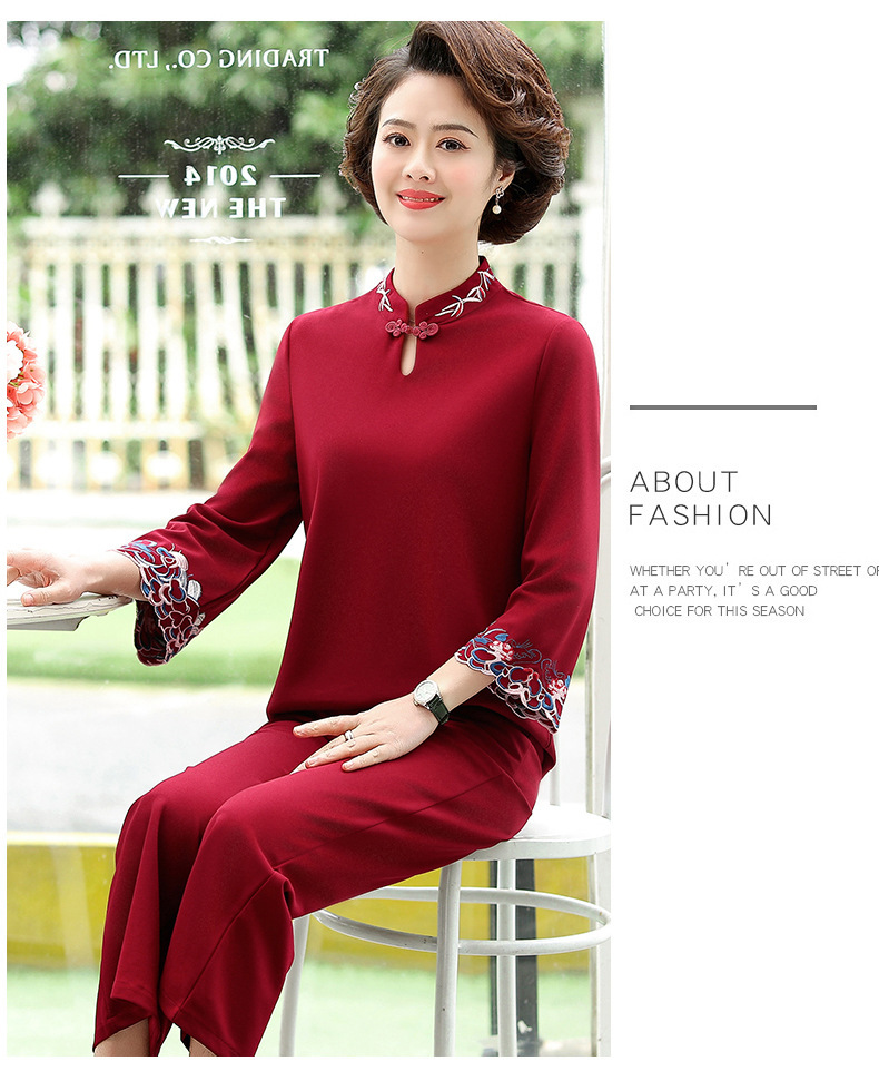 XK-XHR18810妈妈装2020新品 时尚绣花休闲九分袖两件套装