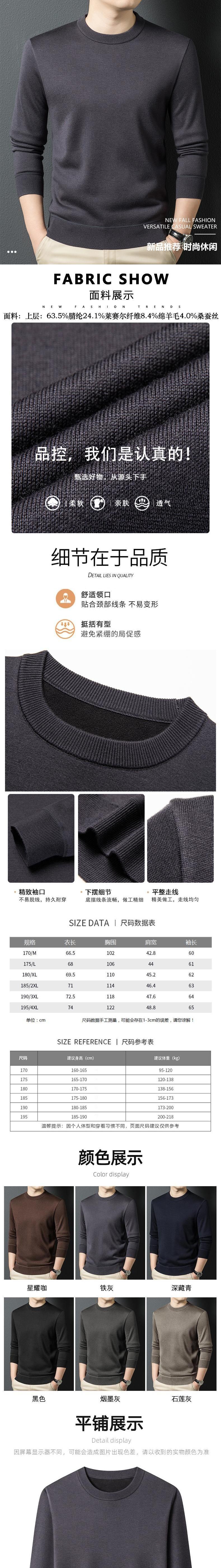 丰讯 男士秋冬季圆领纯色休闲百搭针织衫打底毛衣 FXT5168