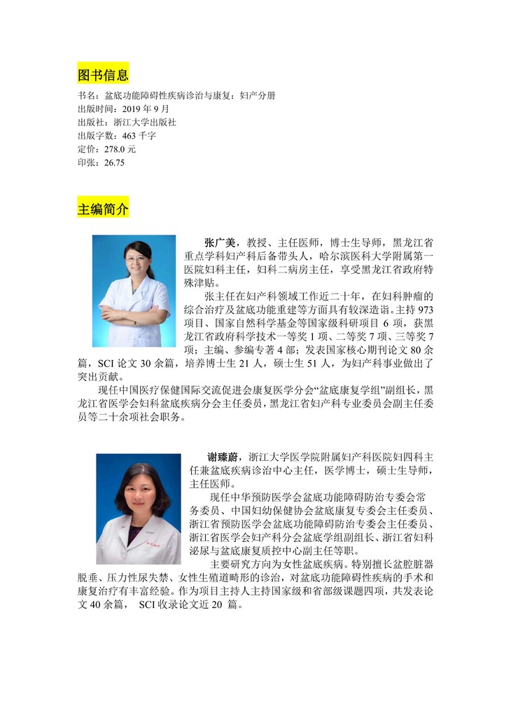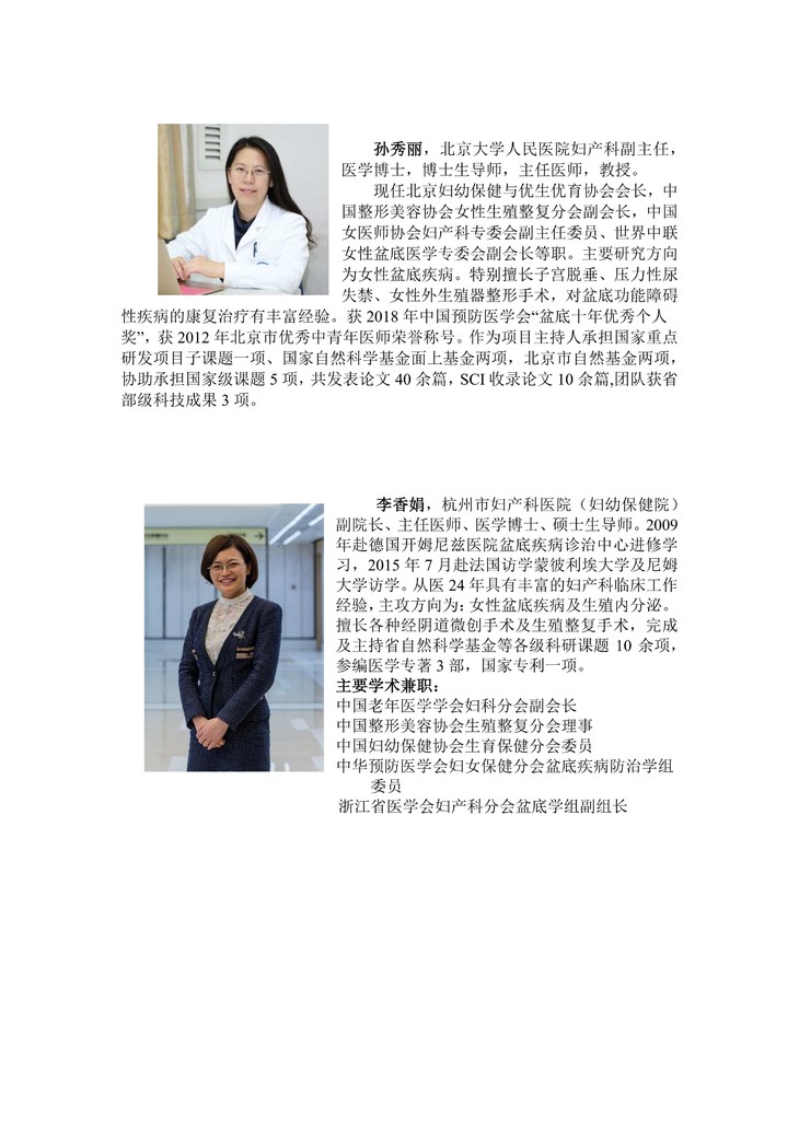 浙江省预防医学会盆底功能障碍防治专委会主任委员、