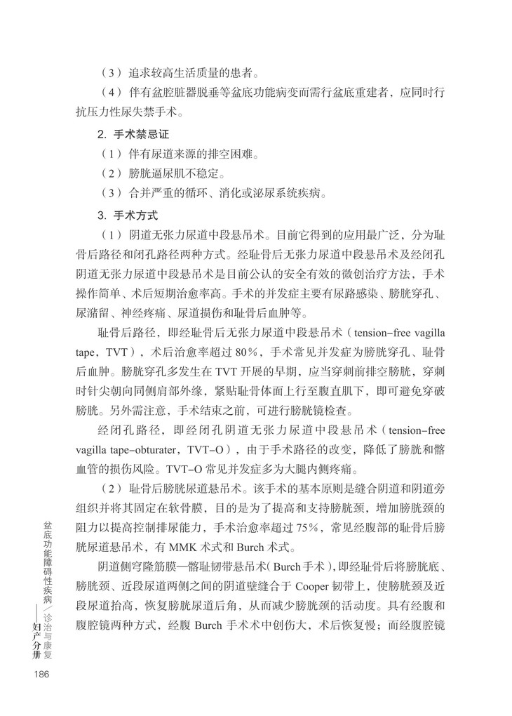 脱垂、压力性尿失禁、女性生殖道畸形的诊治,对盆底功能障碍性疾病的手术和