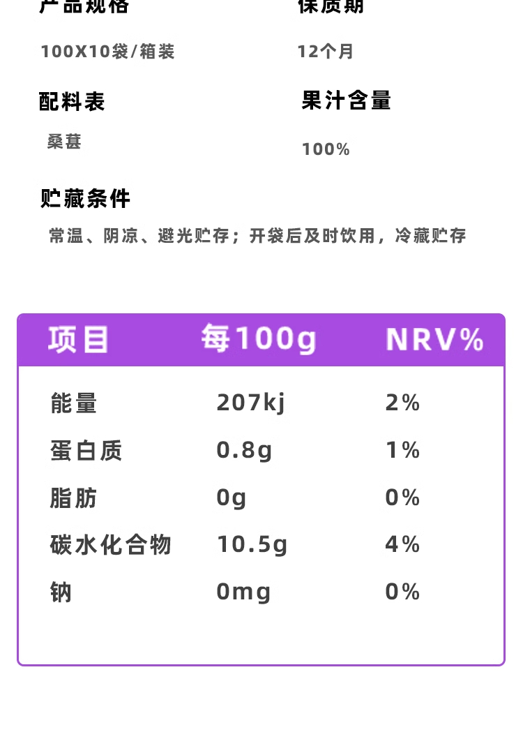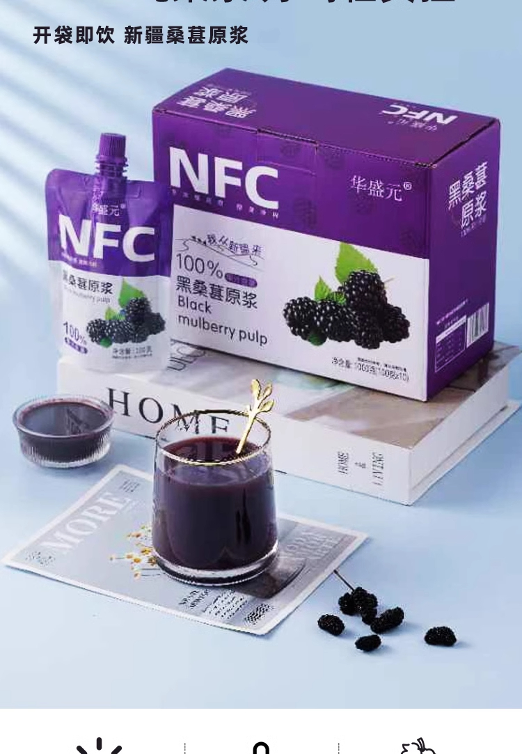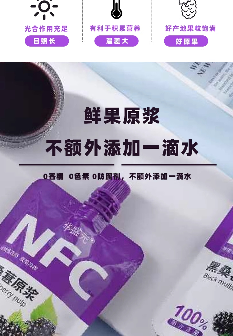 华盛元·黑桑葚原浆100g*10袋 鲜果原浆 开袋即饮