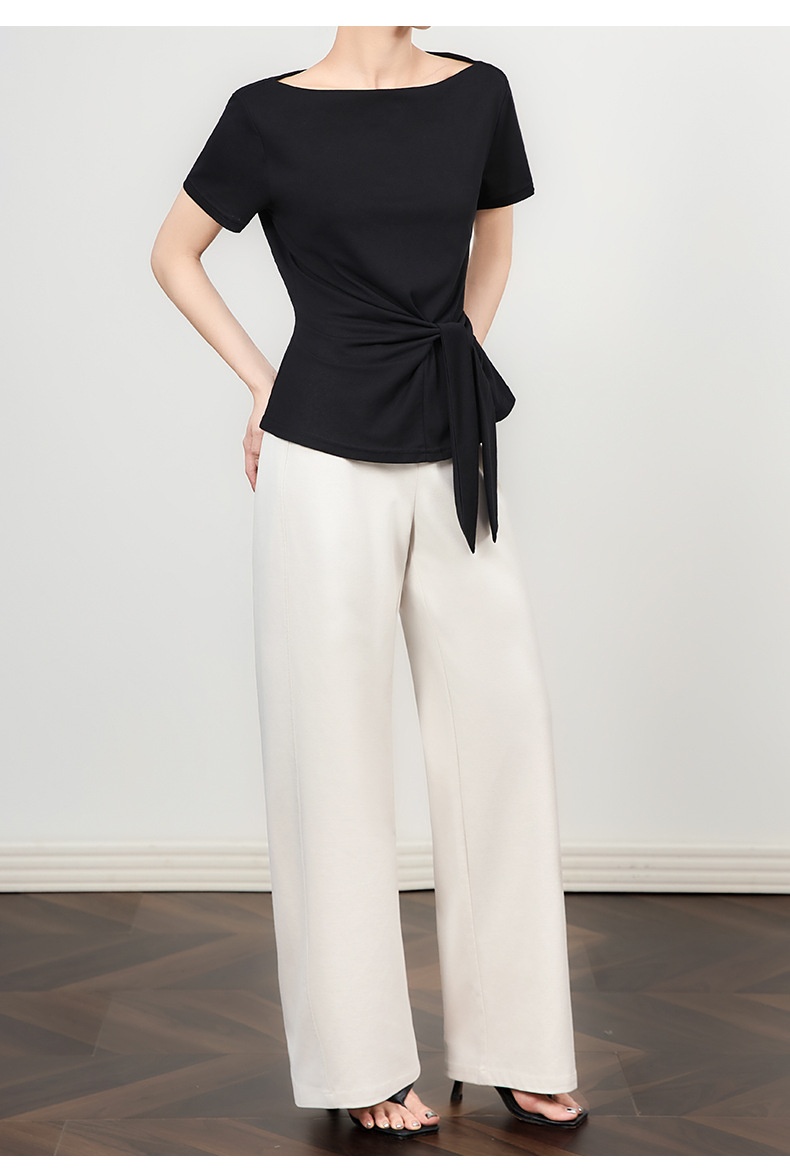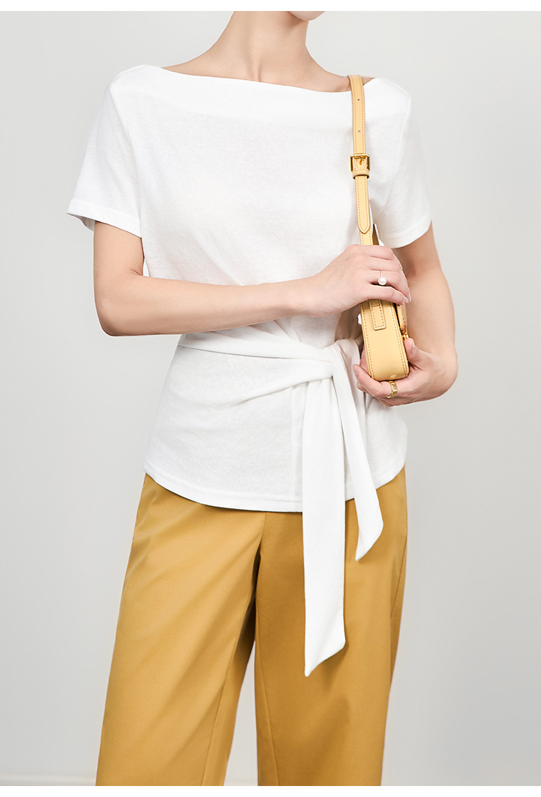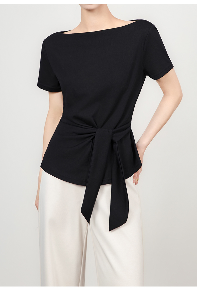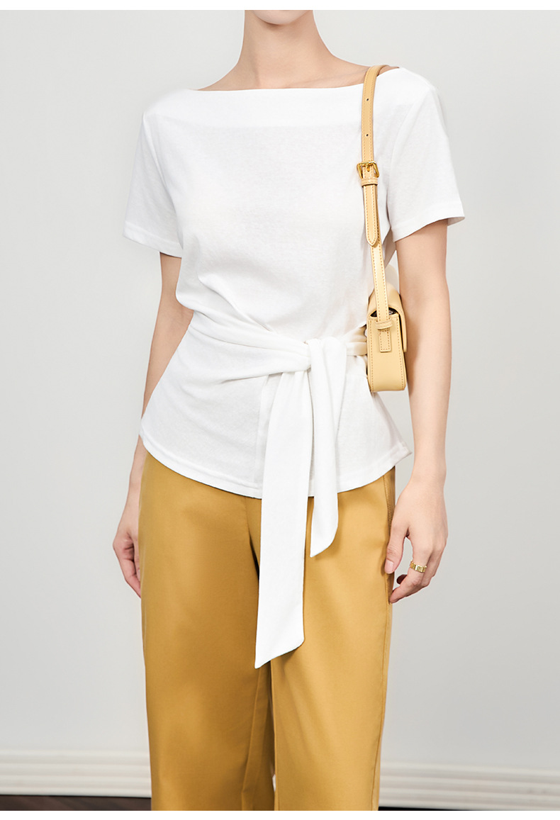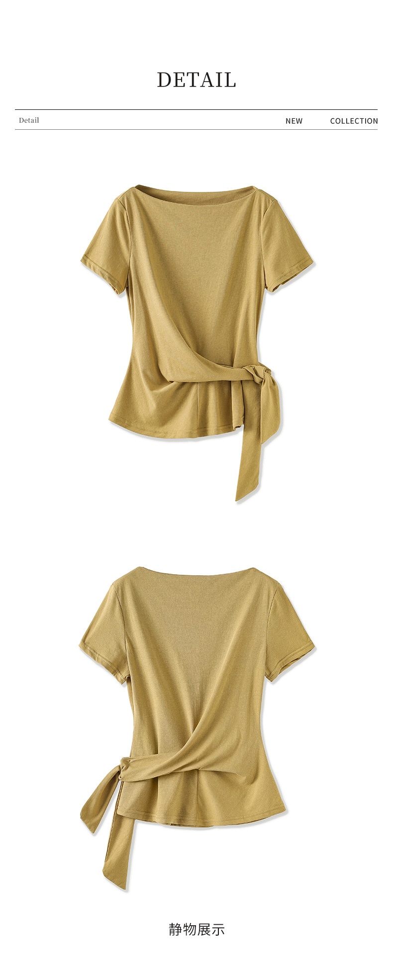 「高货wl」全新升级【铂金会员183/天猫239/差价56】(15416)洛诗琳小众设计不规则T恤2025夏季系带收腰显瘦短袖上衣女
