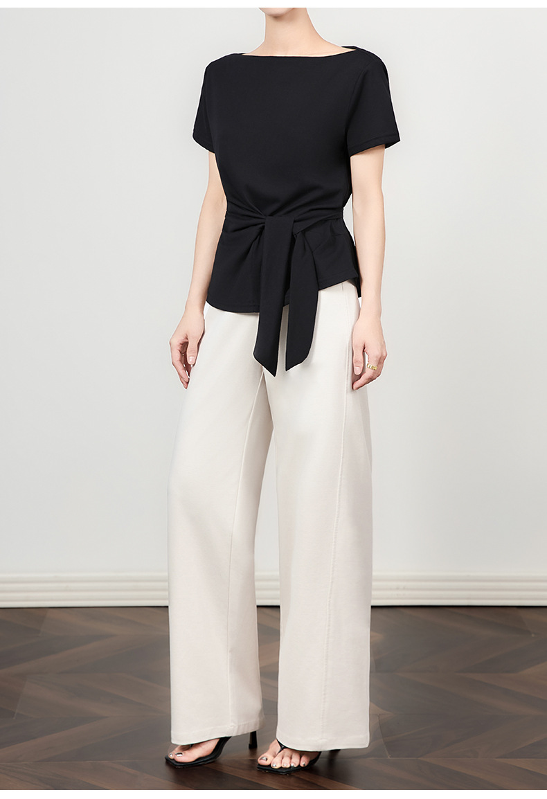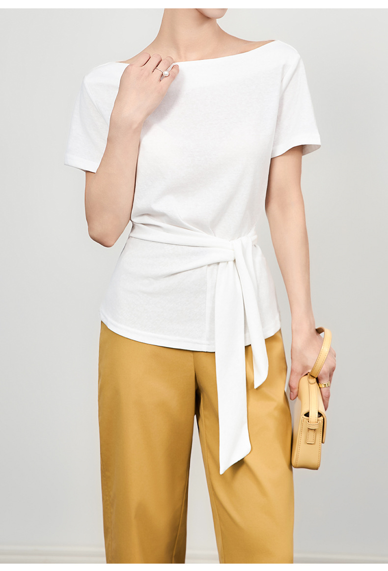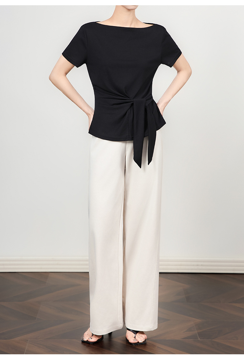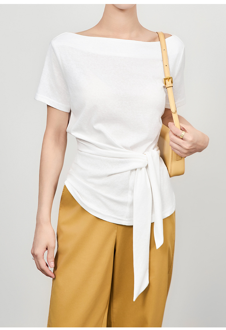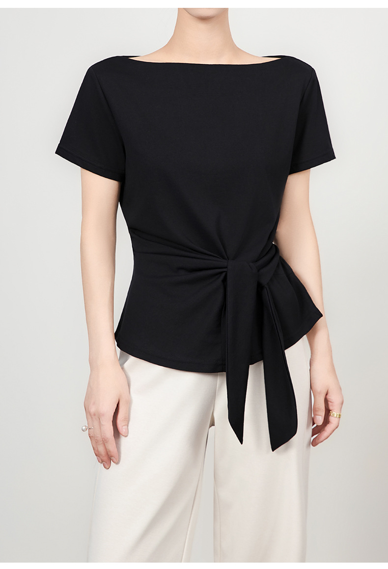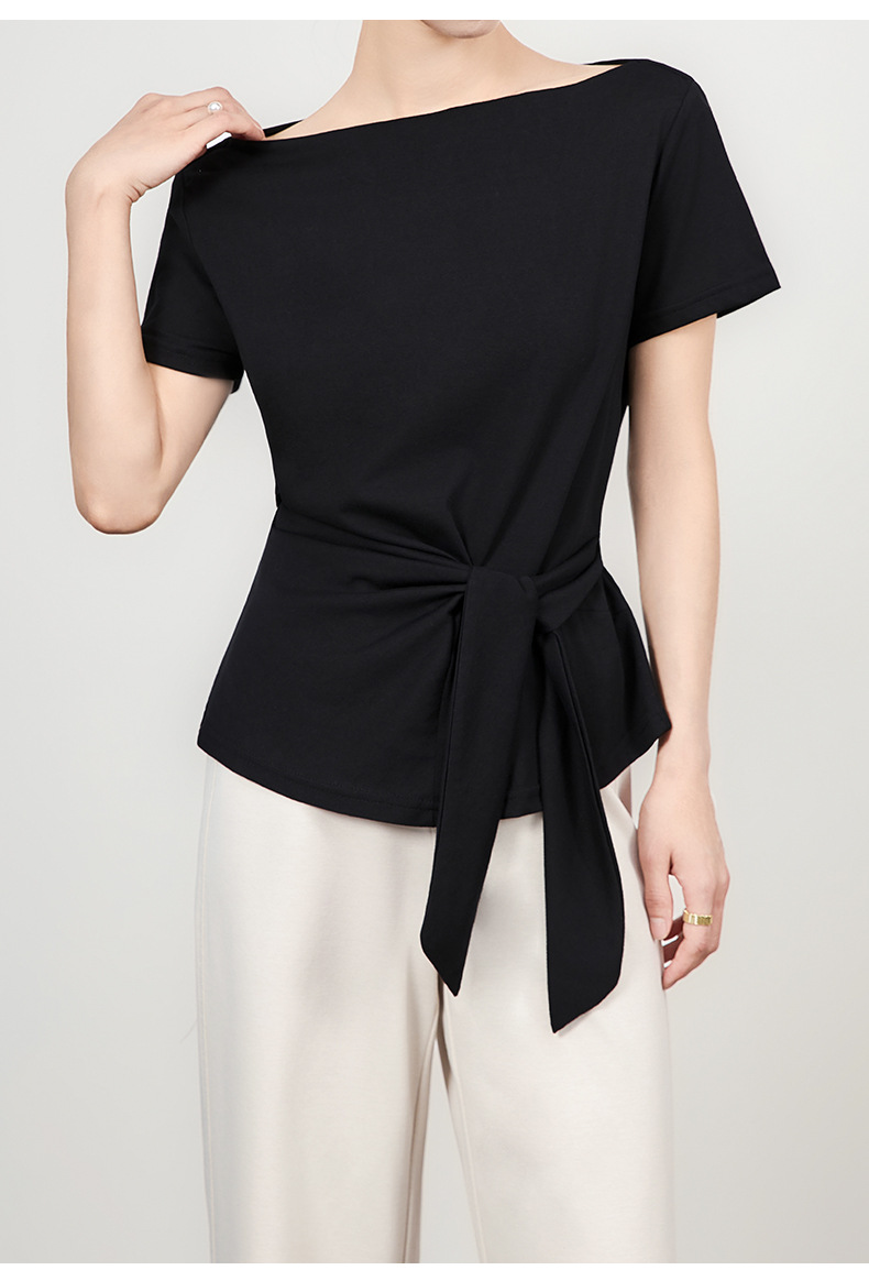 「高货wl」全新升级【铂金会员183/天猫239/差价56】(15416)洛诗琳小众设计不规则T恤2025夏季系带收腰显瘦短袖上衣女