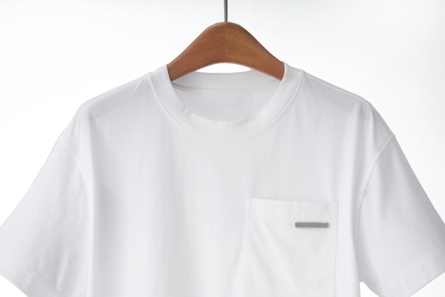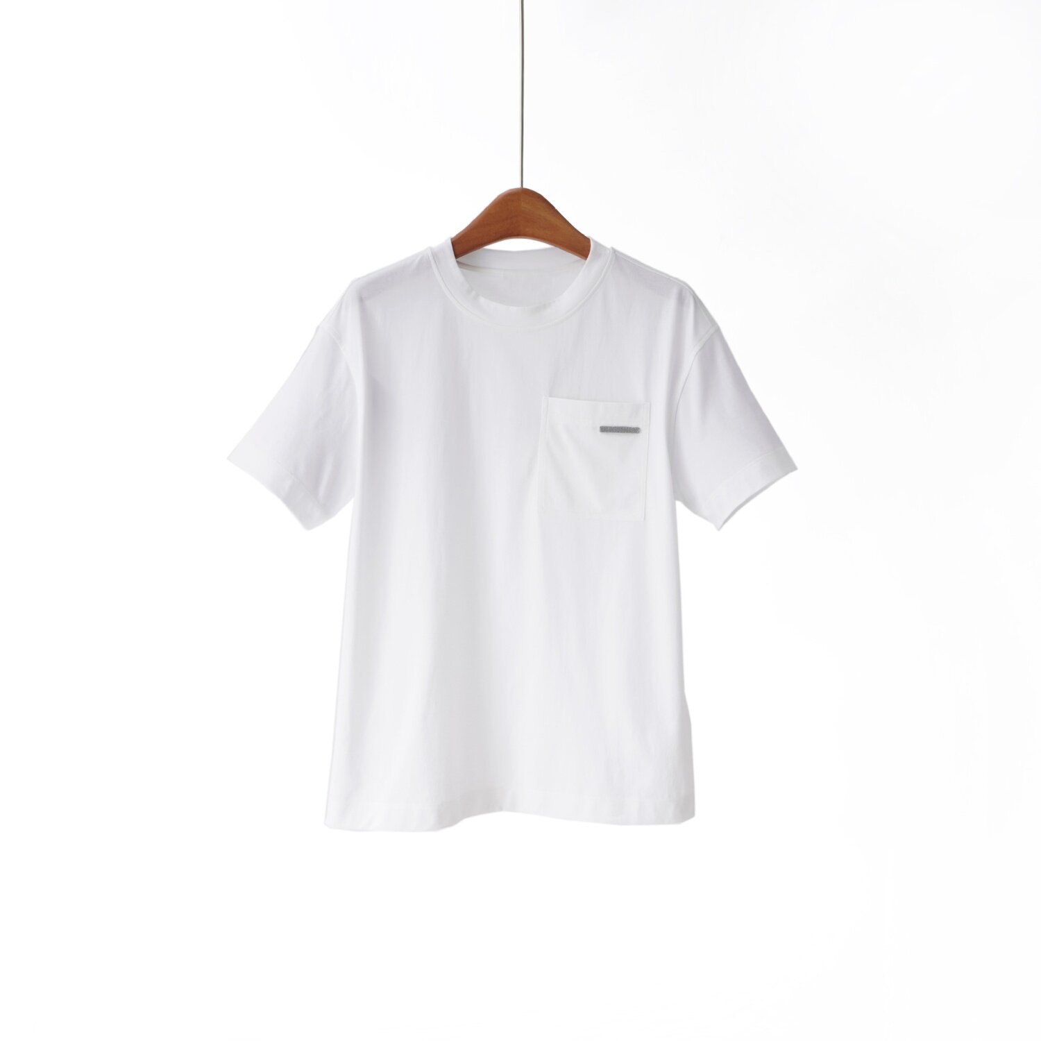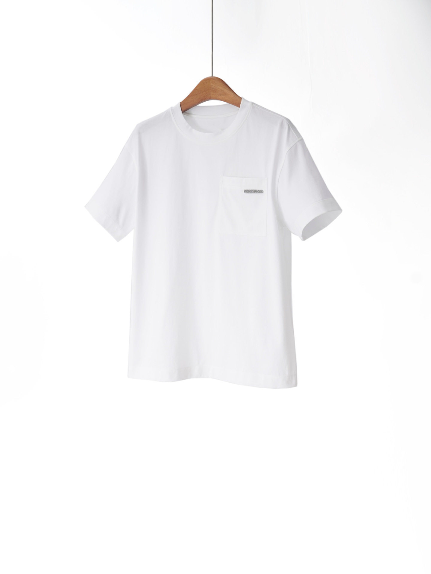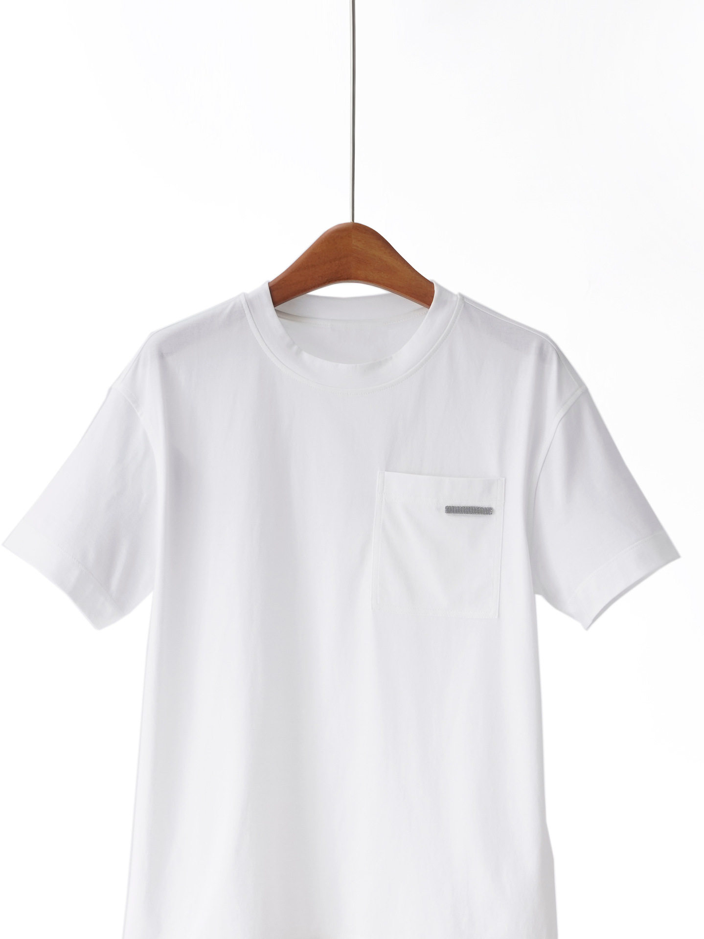 「高货yn」全新升级【铂金会员165/天猫219/差价54】(13111)洛诗琳气质简约长绒棉T恤2026新款口袋镶珠圆领百搭短袖上衣
