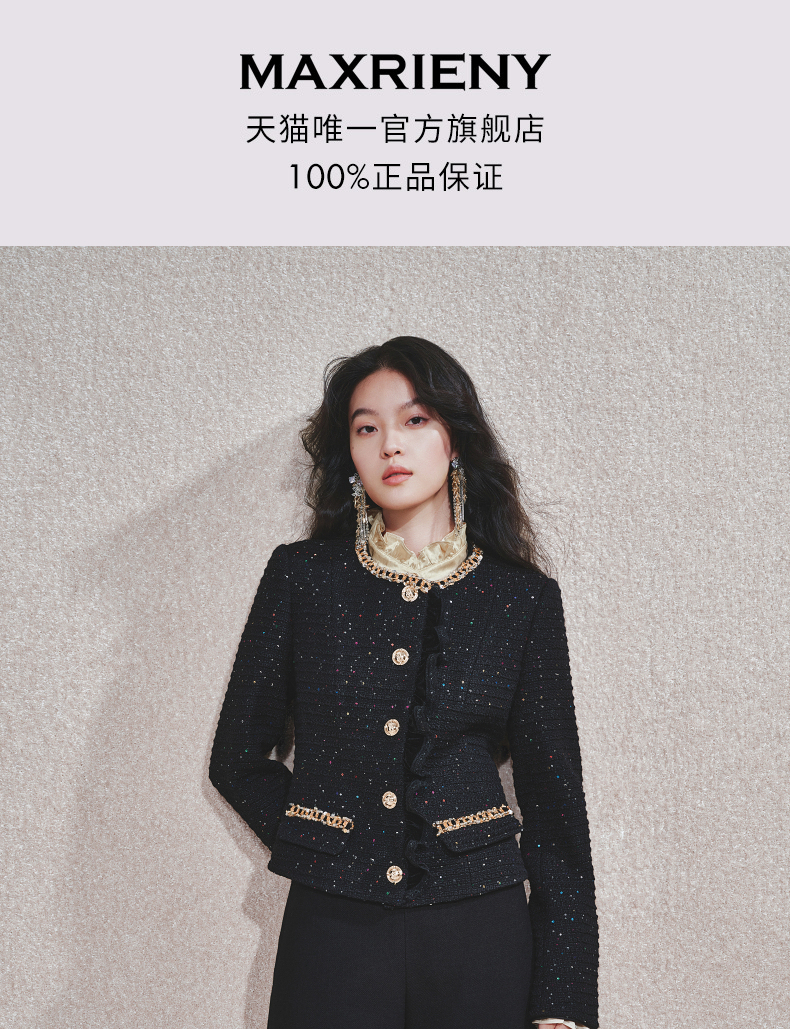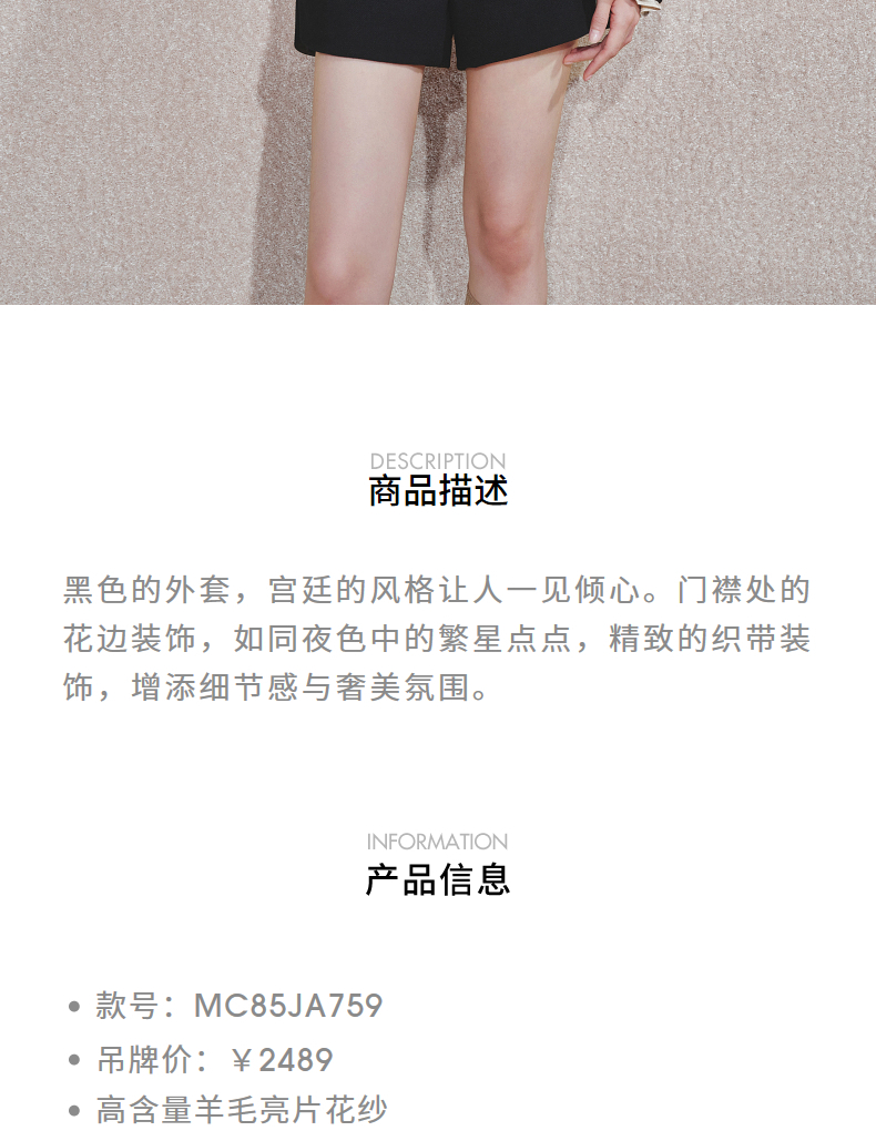 玛克门店发货:黑金小香羊毛外套女气质高级感(货号:MC85JA759)