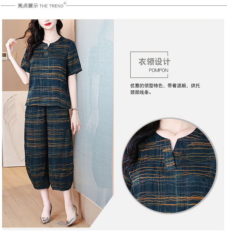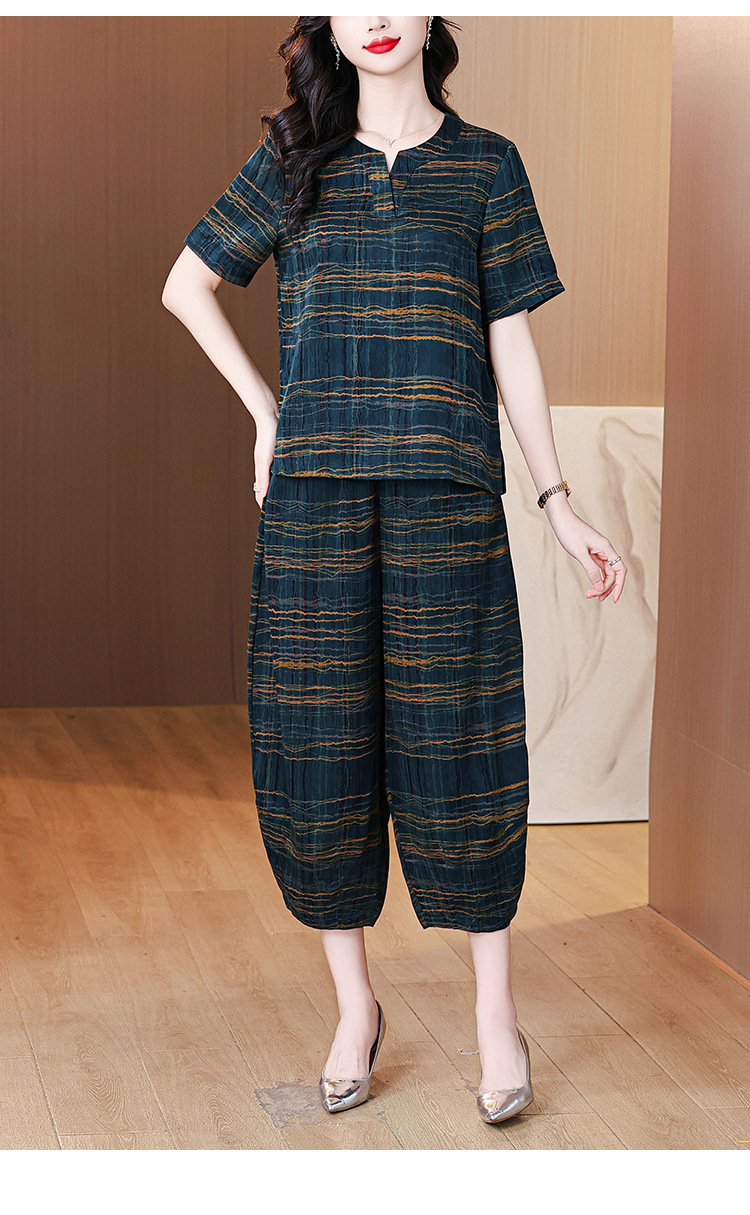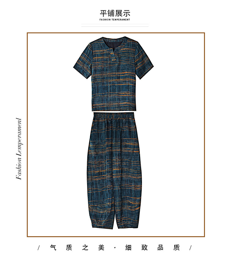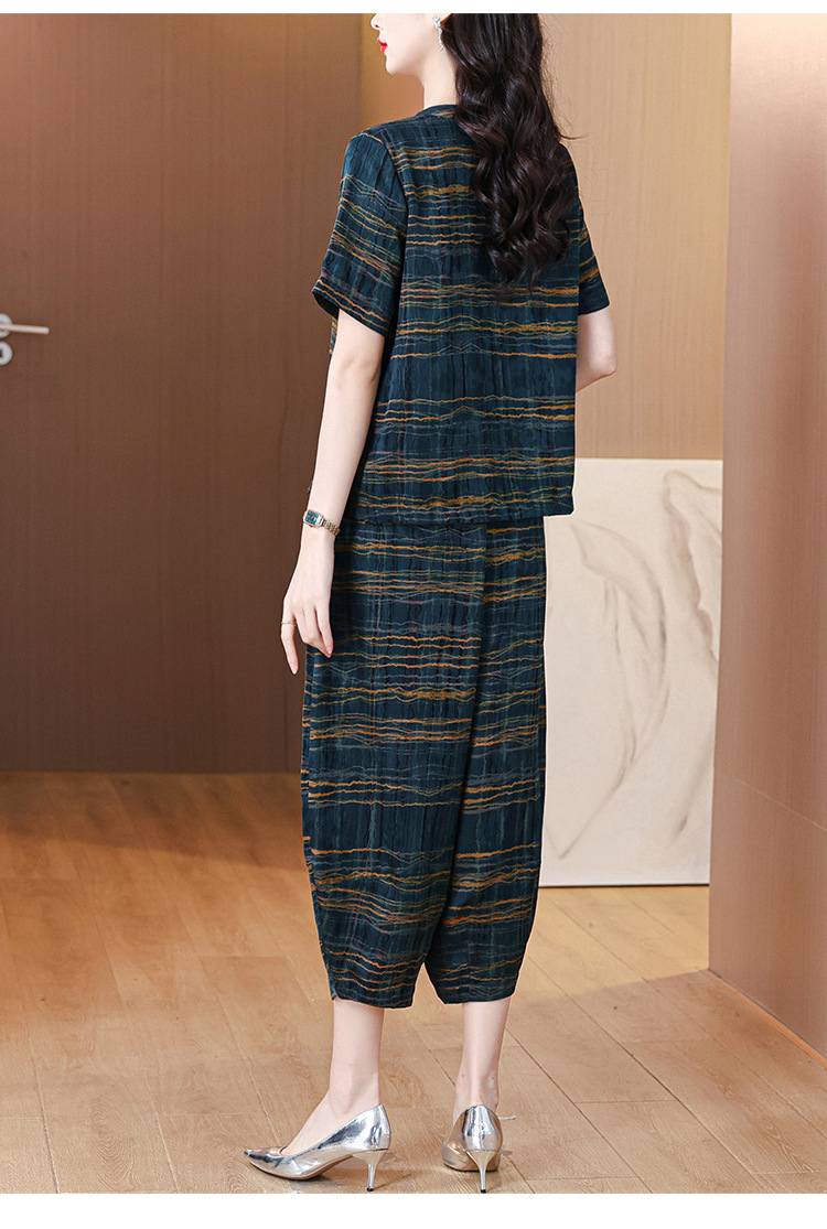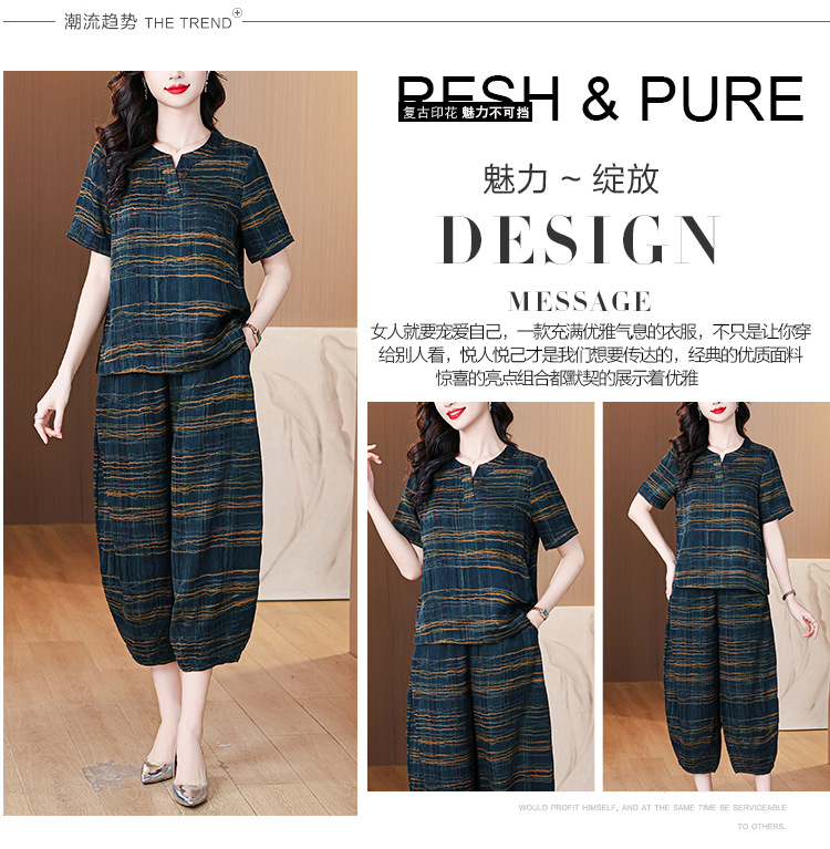 A34531高品质大码遮肚减龄夏季新款复古气质哈伦裤宽松洋气上衣两件套装