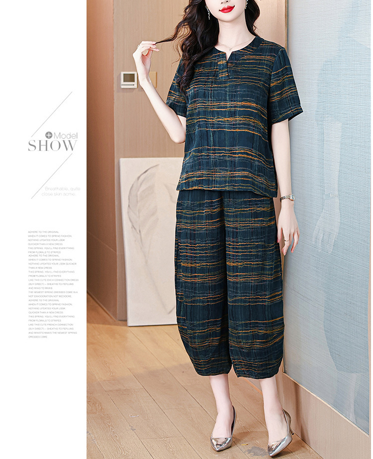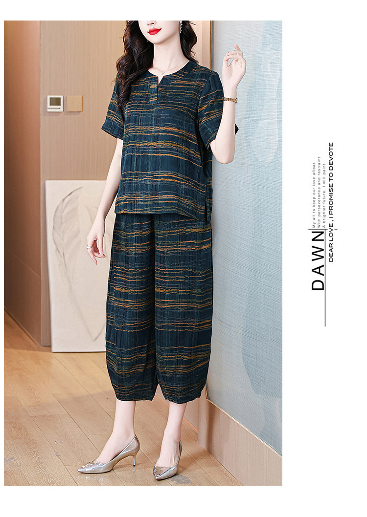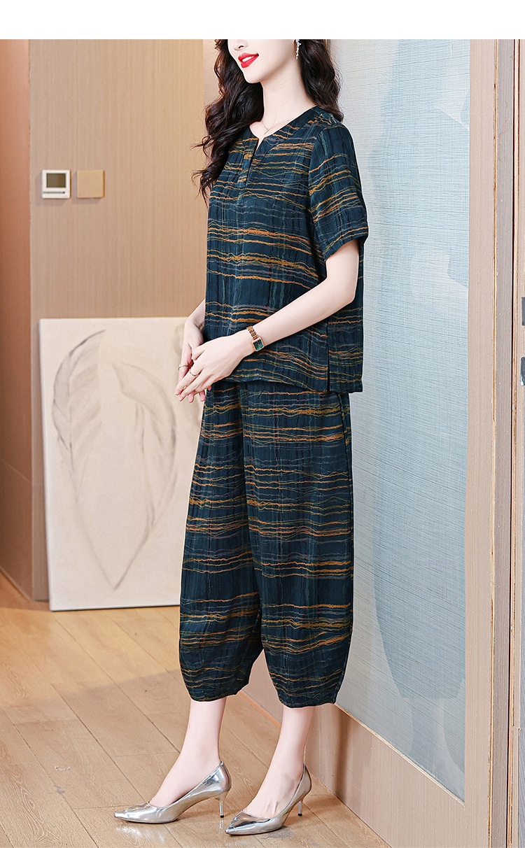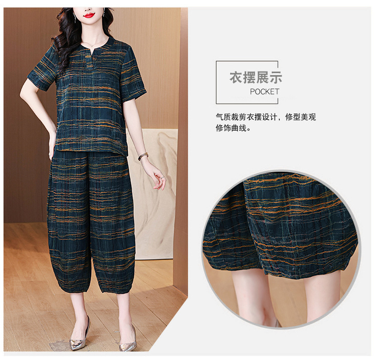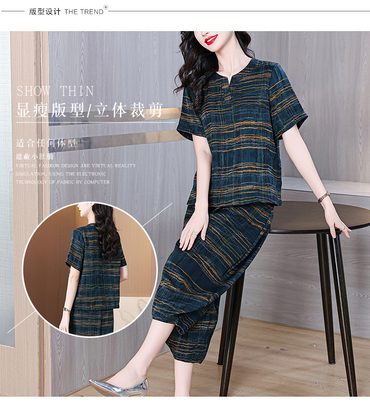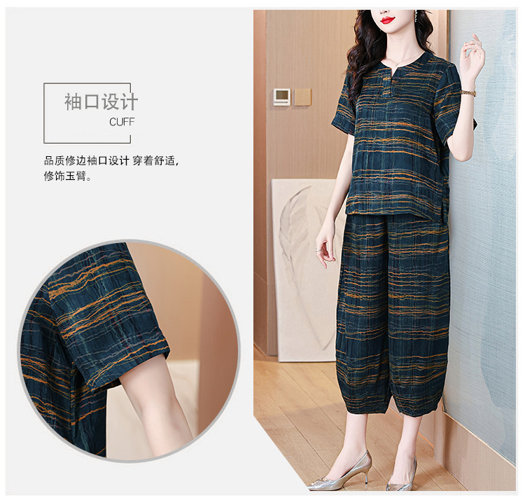 A34531高品质大码遮肚减龄夏季新款复古气质哈伦裤宽松洋气上衣两件套装