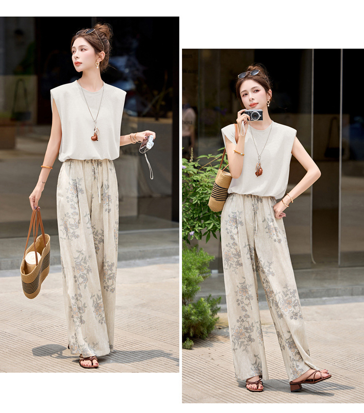 【预售2天】夏日绝美穿搭套装2025新款百搭气质无袖洋气显瘦阔腿裤两件套YDYX9358