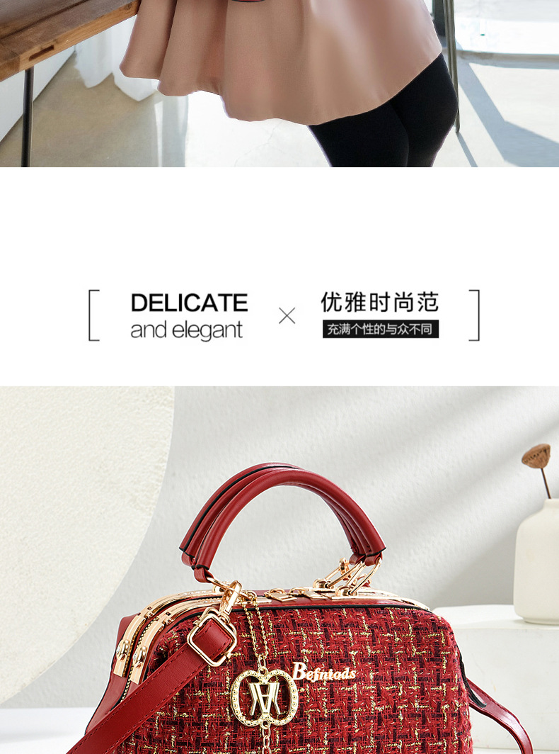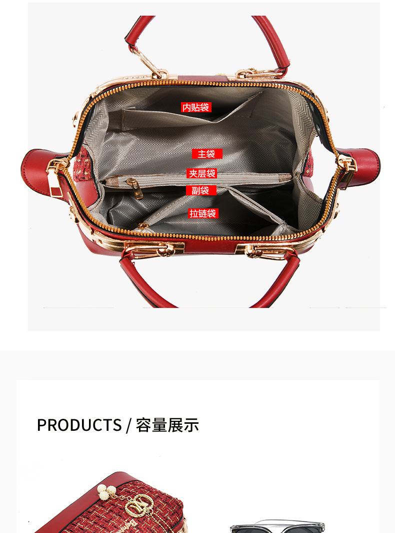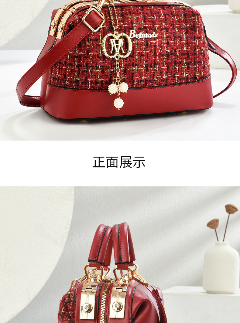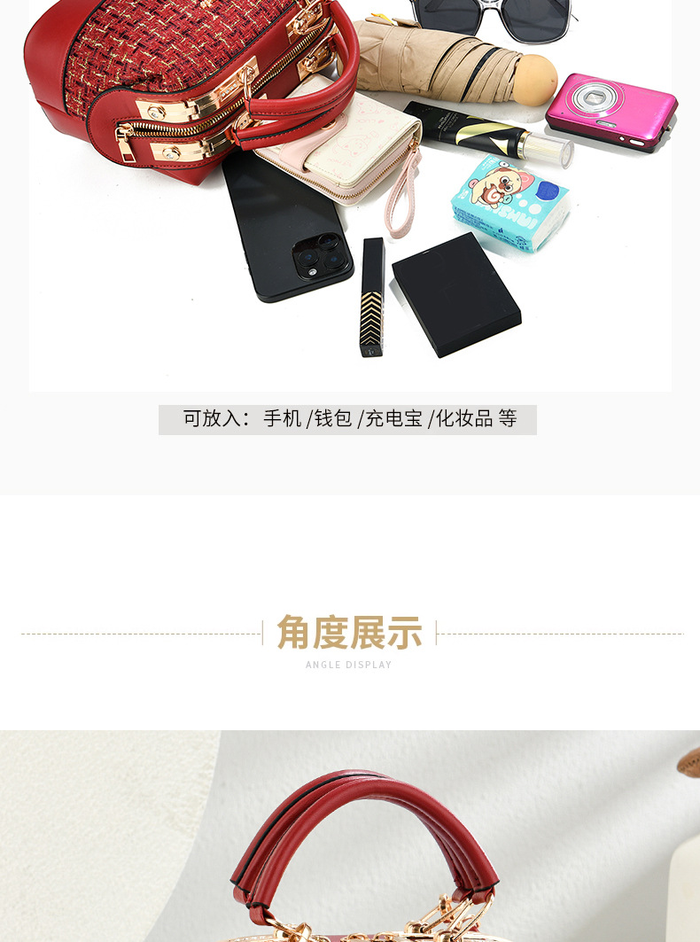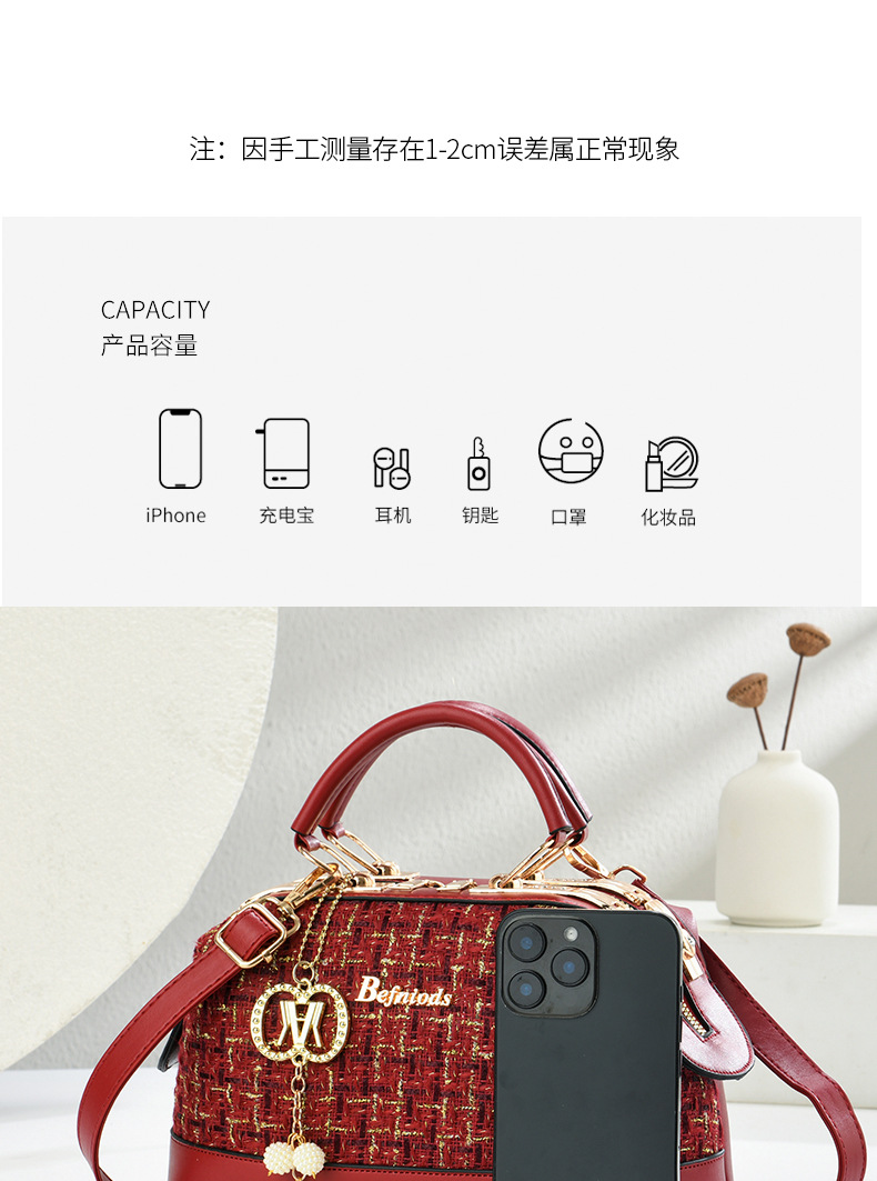 雀说 红色小香风女士手拎包高级感百搭单肩女包T0808