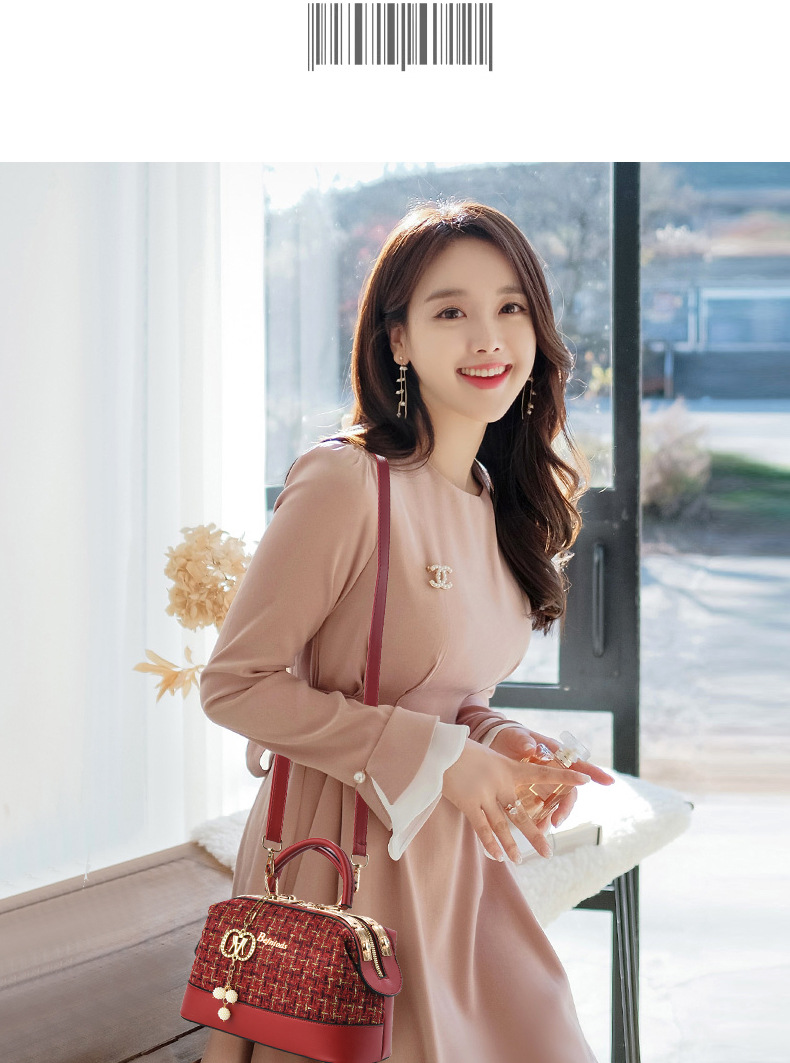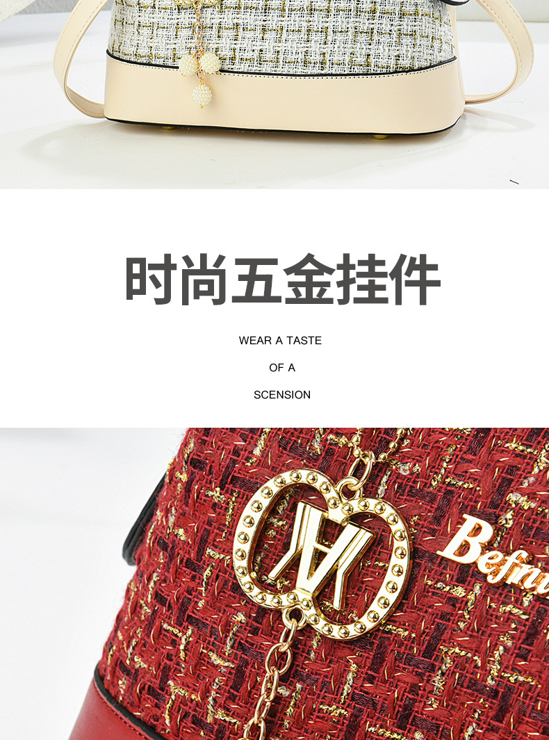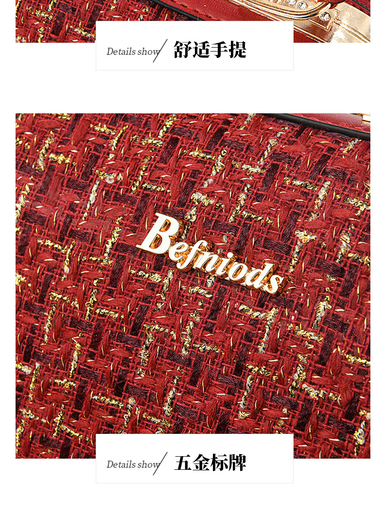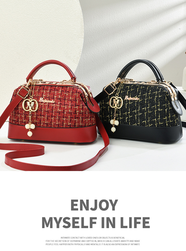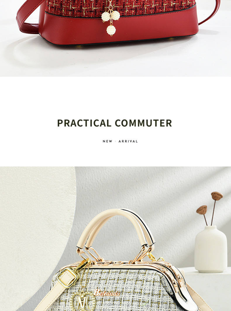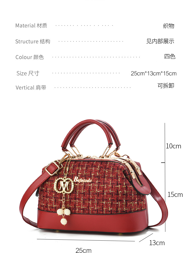 雀说 红色小香风女士手拎包高级感百搭单肩女包T0808