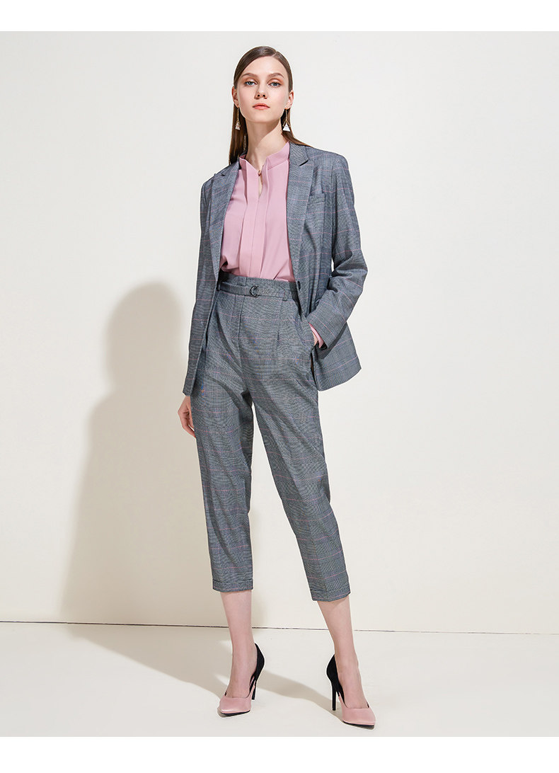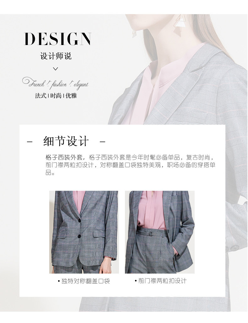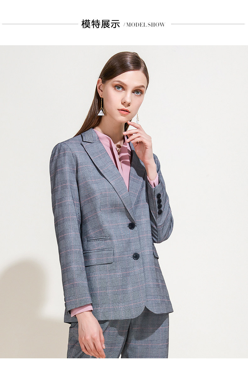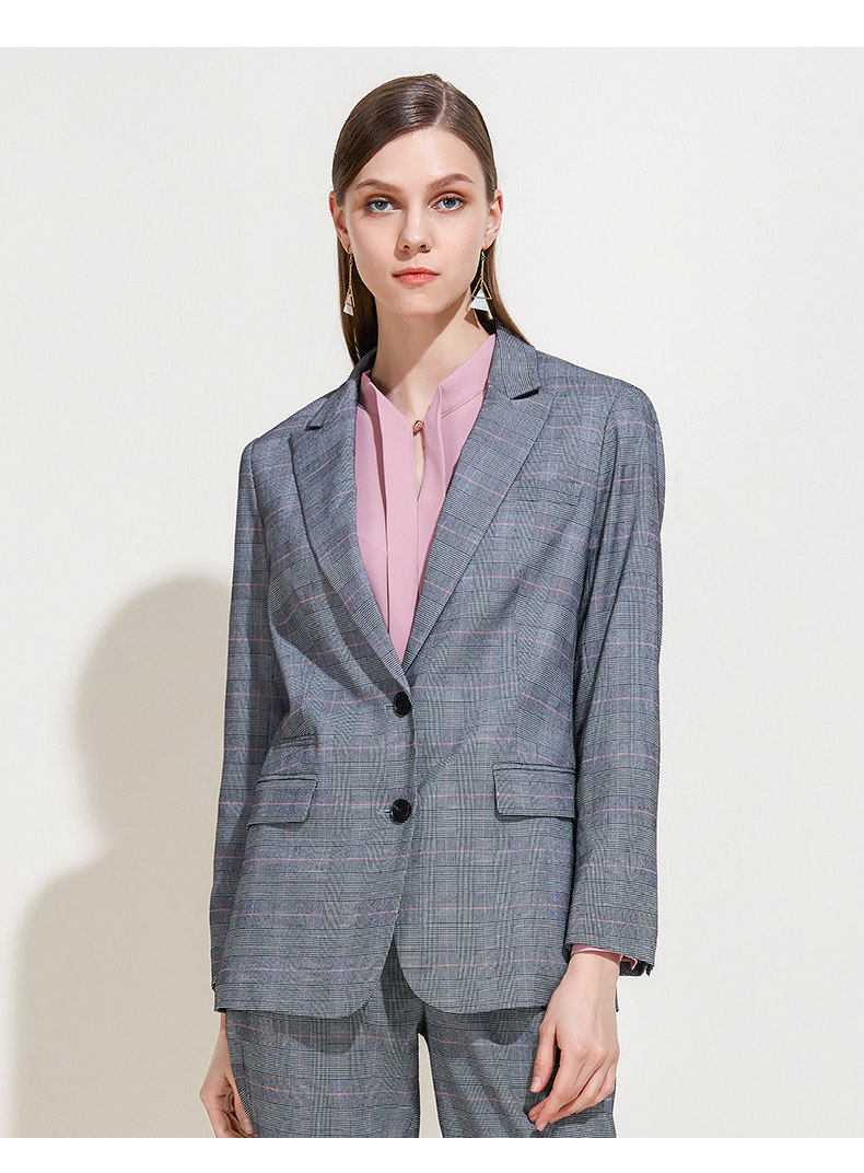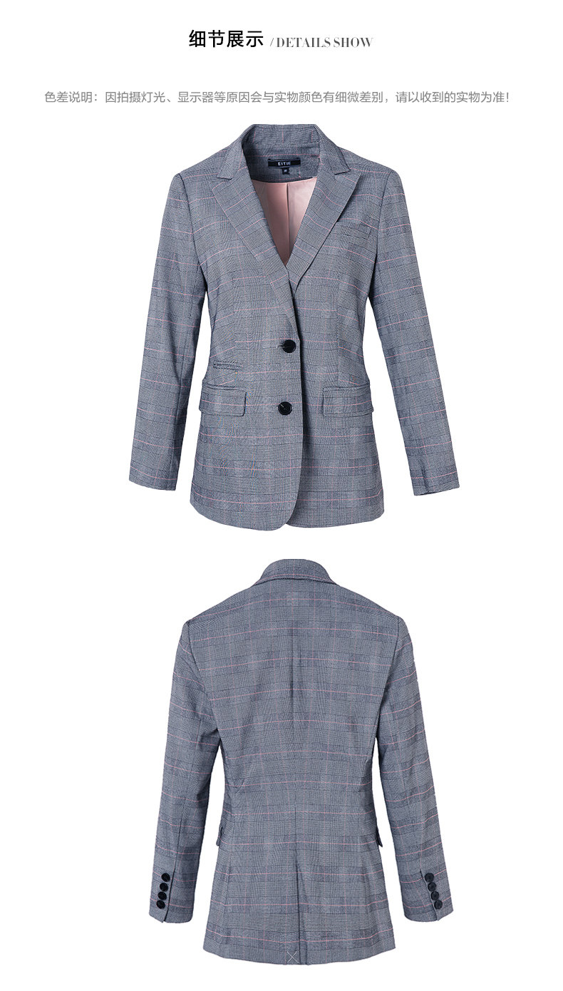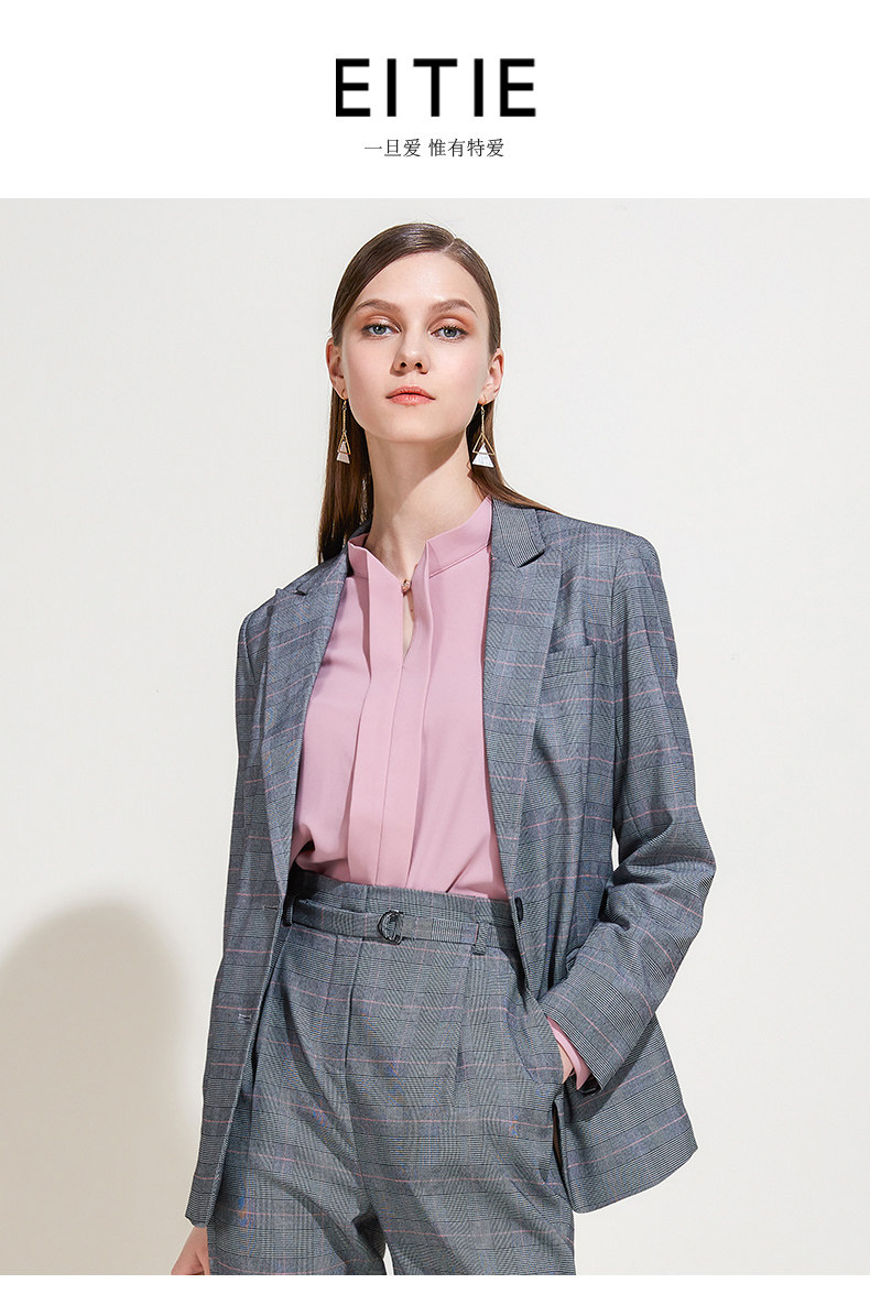 EITIE爱特爱品牌女装年春秋季宽松复古时尚格子西装外套5903608