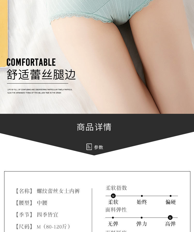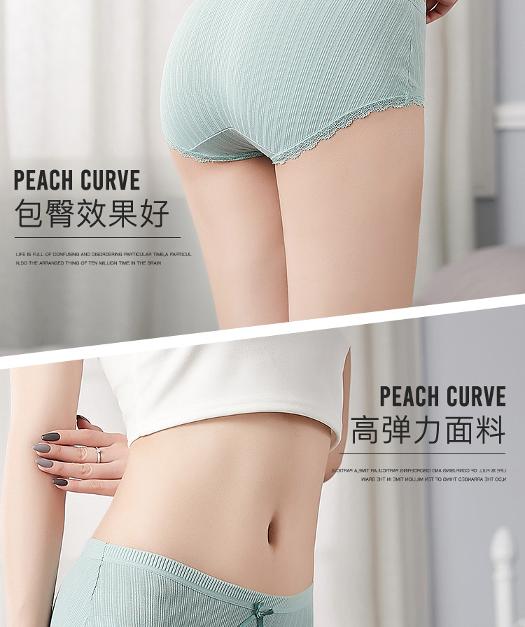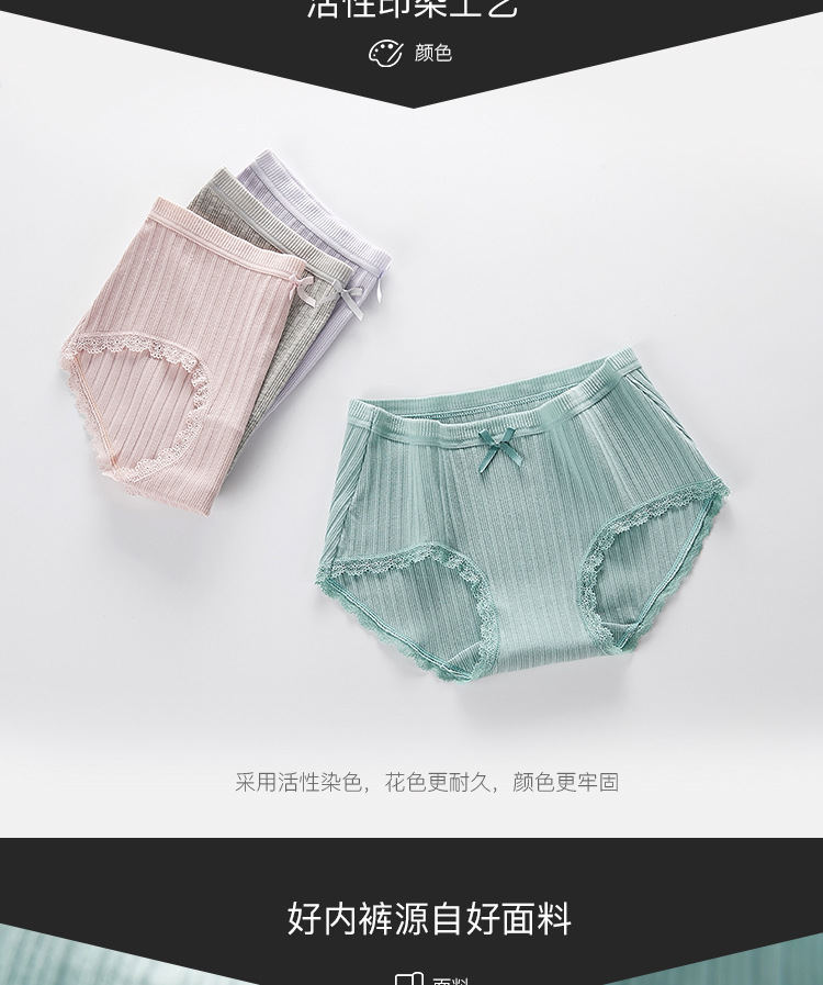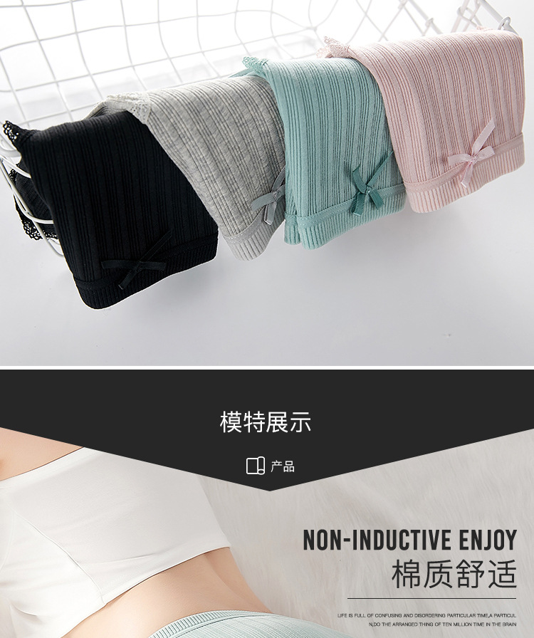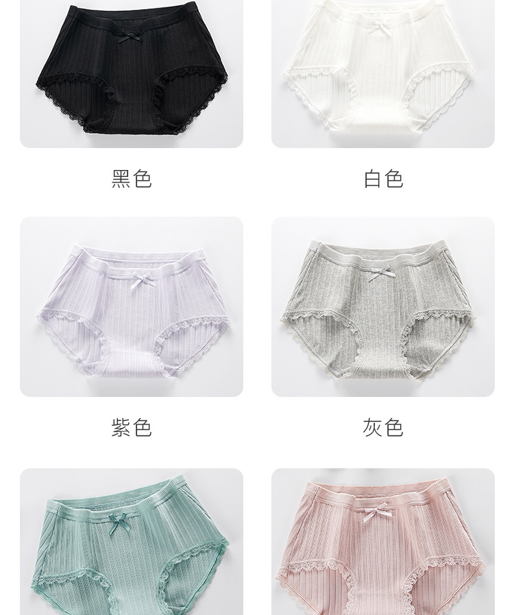 XYE-090日系新品罗纹透气舒适甜美性感蕾丝边三角裤(6条装)