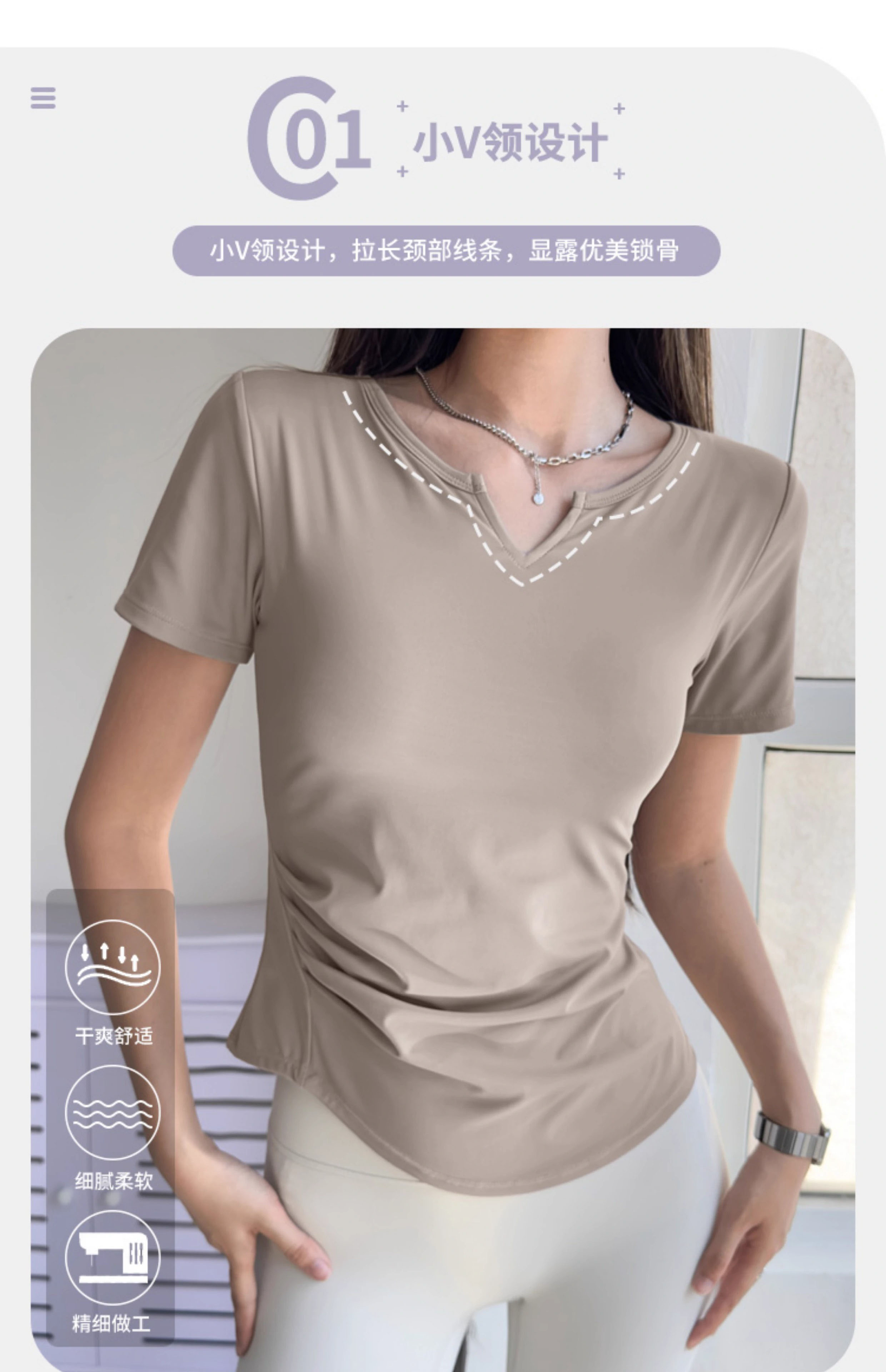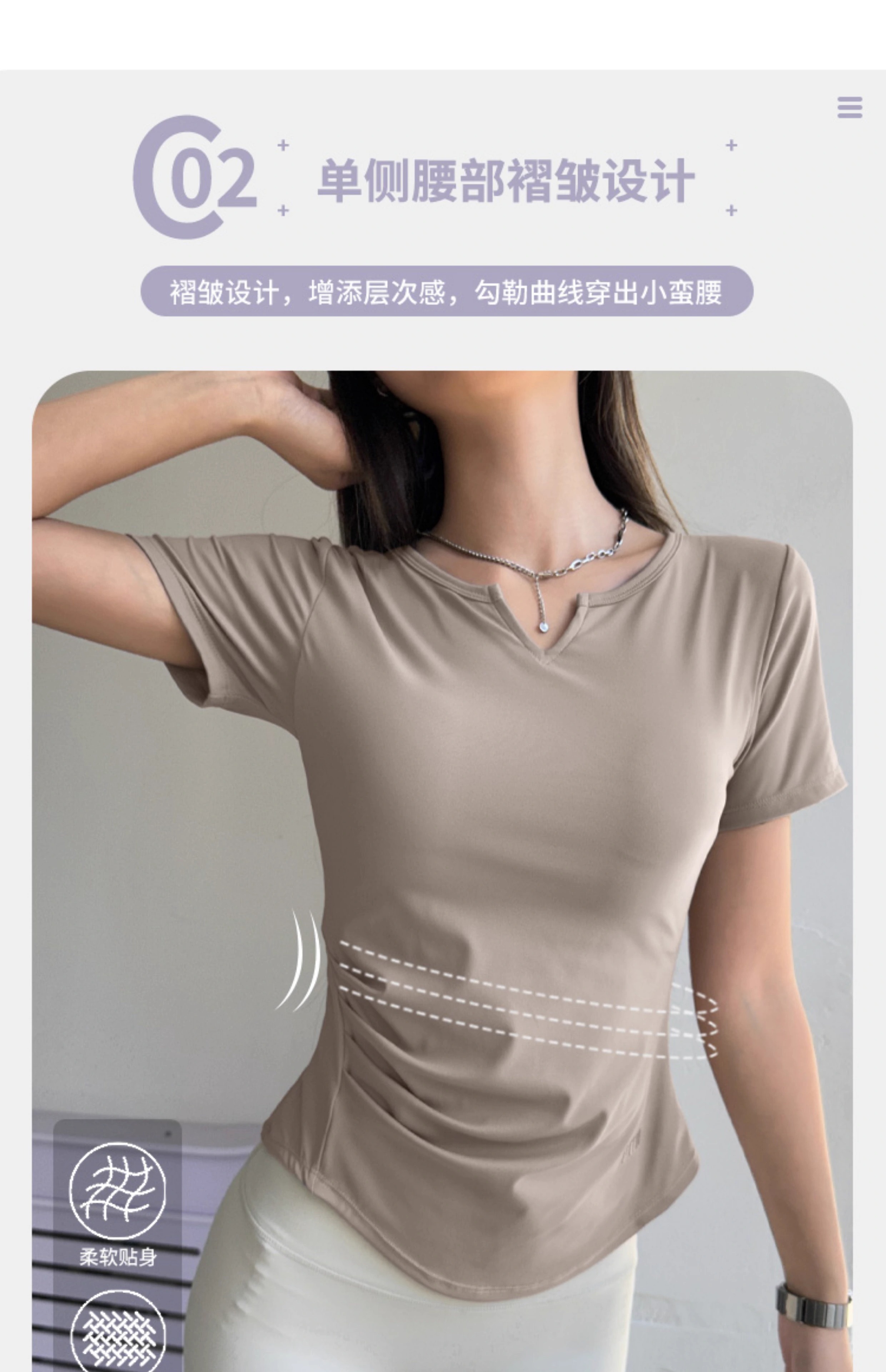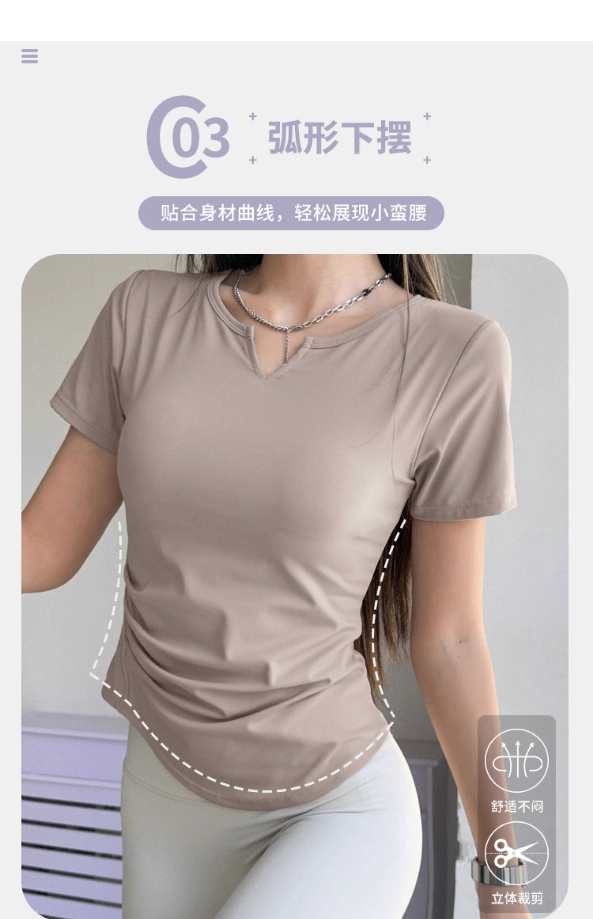 跃牌【美西西系列】紧身运动上衣女短袖短款性感修身健身服网红速干衣瑜伽T恤DX-226