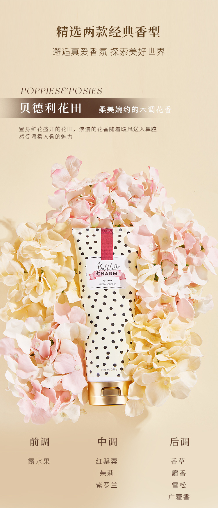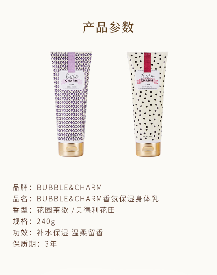 出一批身体乳!前几年卖的贵的离谱,今年也特价甩卖了,正品,前两年假货横行的!日期到26年底!2个味道!均分发货!240g的正装!泊&蔻旗下的Bubble Charm身体乳,香氛级的!法国高定香氛品牌!传承百年法式调香!2个味道都是经典,迄今为止,没人能够超越!.肤感水润,好吸收,从老到幼全年龄段通杀! 不粘腻、好吸收、保湿度又高,24小时持续高能保湿!240g超大容量,既是身体乳,也能当颈霜,还能当护手霜!代替香水的程度!自带氛围感伪体香!!它是香氛身体乳。好闻但不浓郁!恰到好处那种!!泊&蔻的身体乳,护手霜小小一支都要四五十了,身体乳!2个味道均分发货,一个是花果香,一个是木质茶香,都好闻!不腻!清新!!香水身体乳,举手投足间都是香水味道! 留香扩香不输香水! !独创的香氛植物护肤理念,完美诠释欧式优雅与英式香氛美学!巨大的!240g装!zheng品.