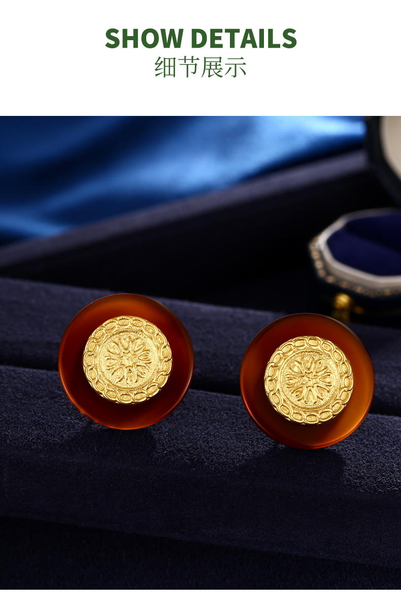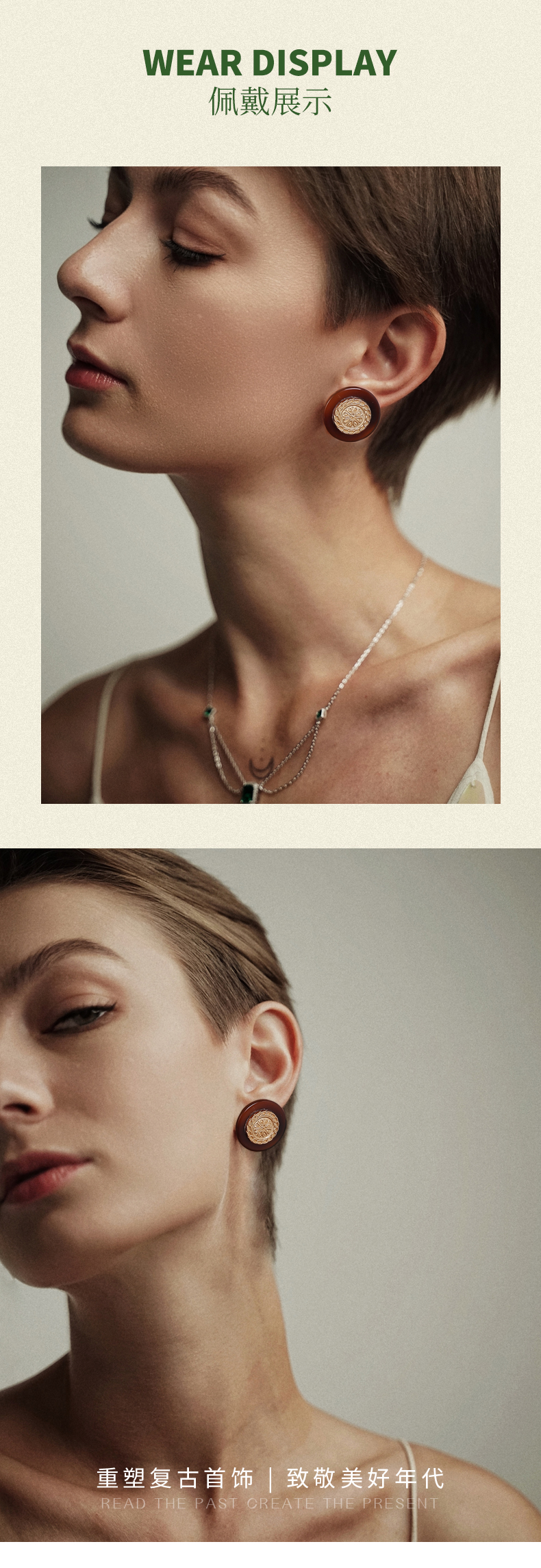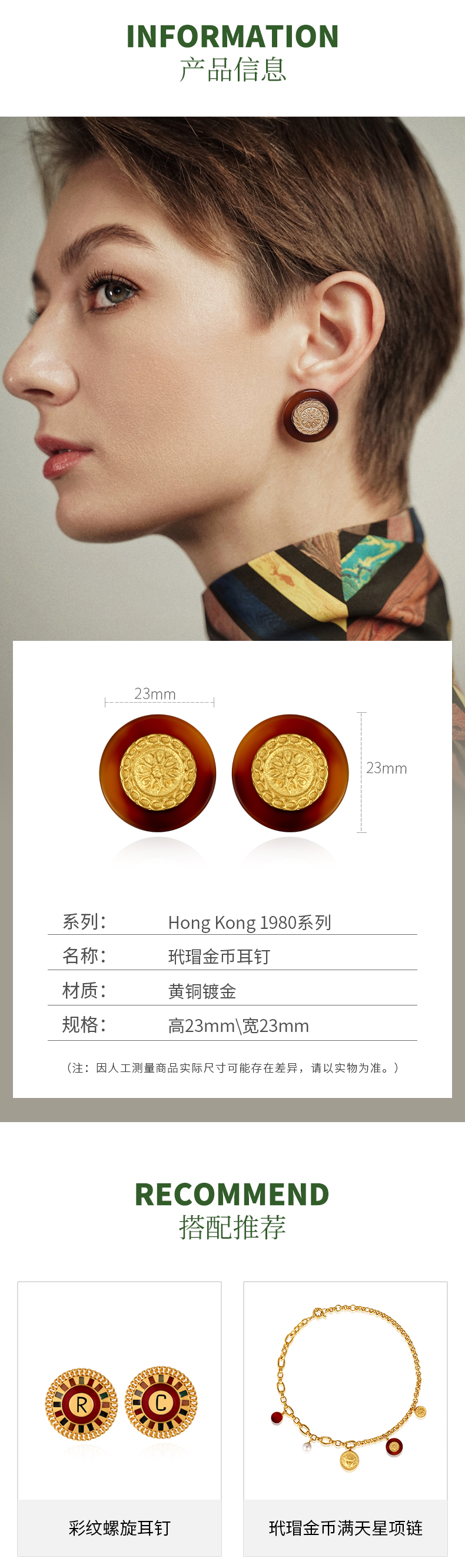 钟欣潼同款 Retro Chic 意大利复古时尚首饰 玳瑁金币耳钉