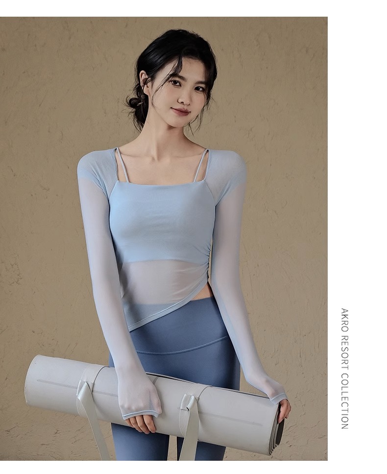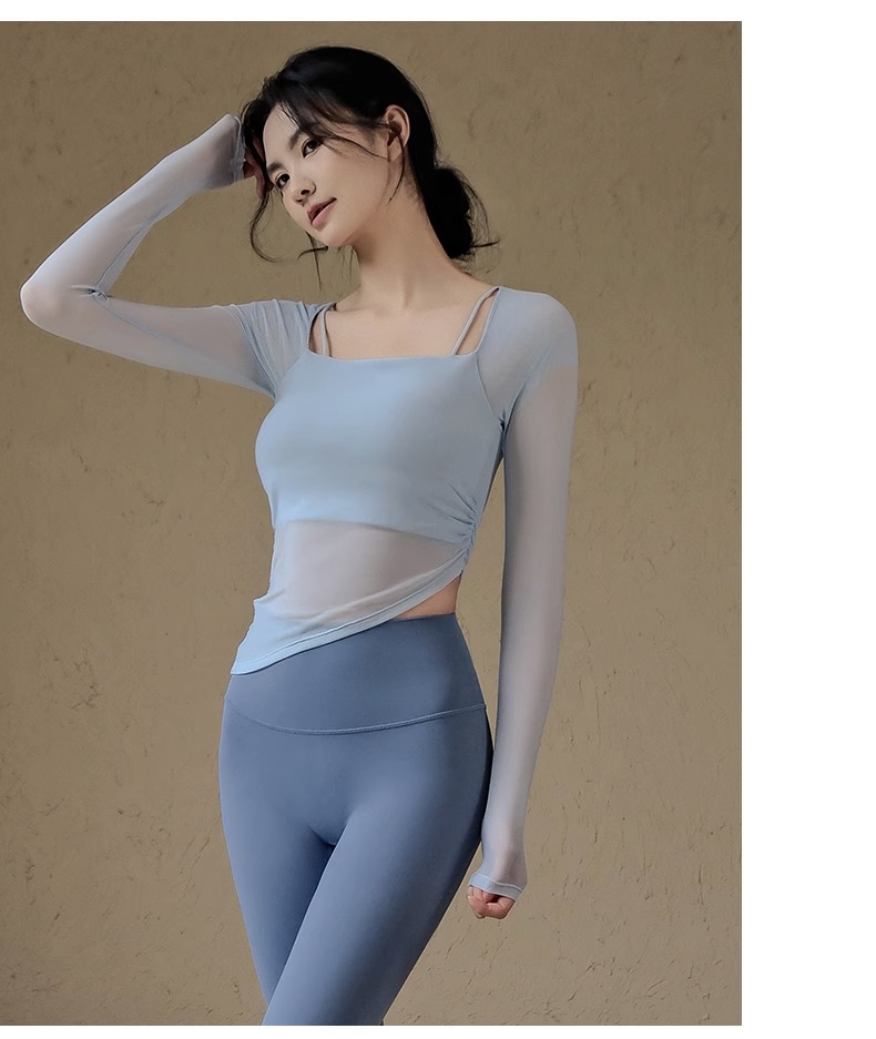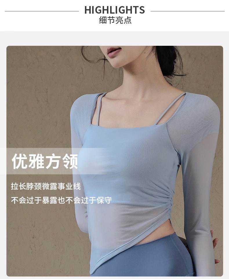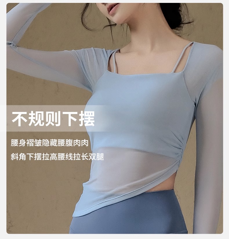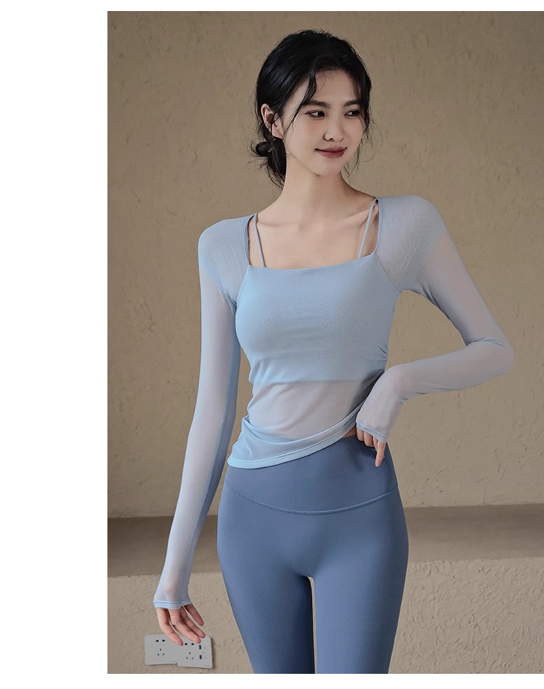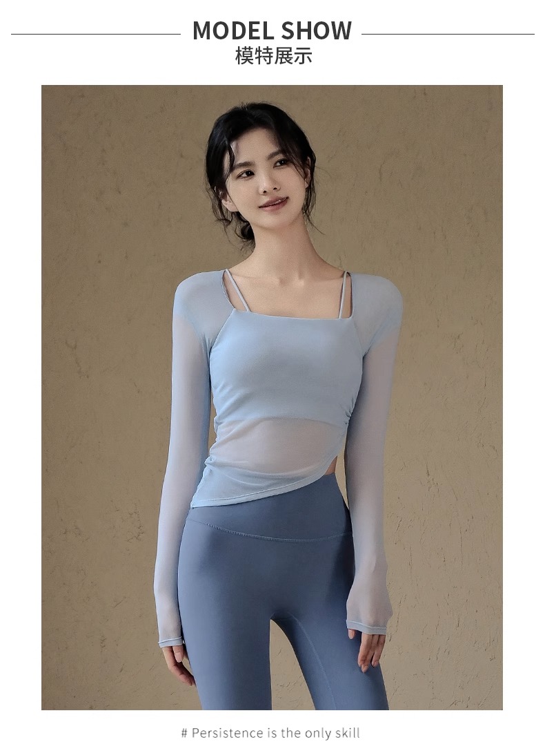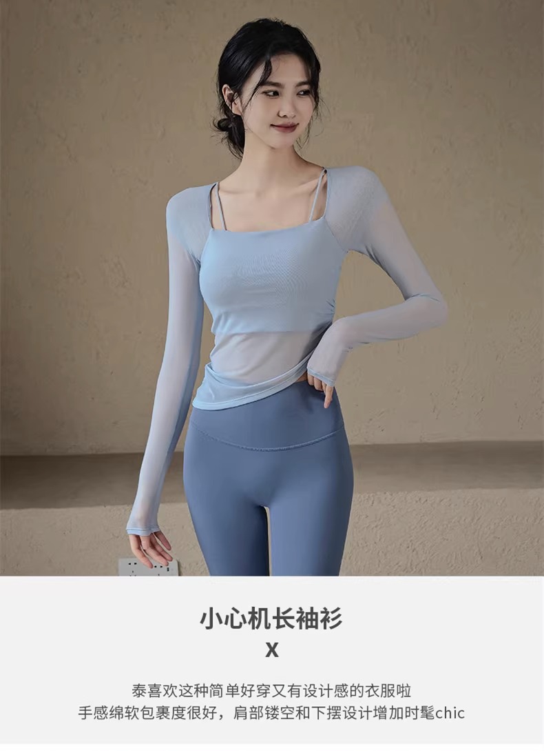 跃牌【禅语梵心系列】网纱假两件运动上衣长袖透气速干健身服 CX2393(带胸垫)