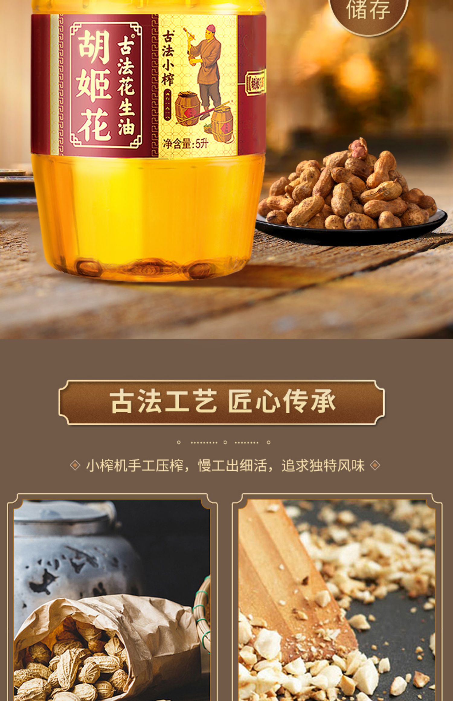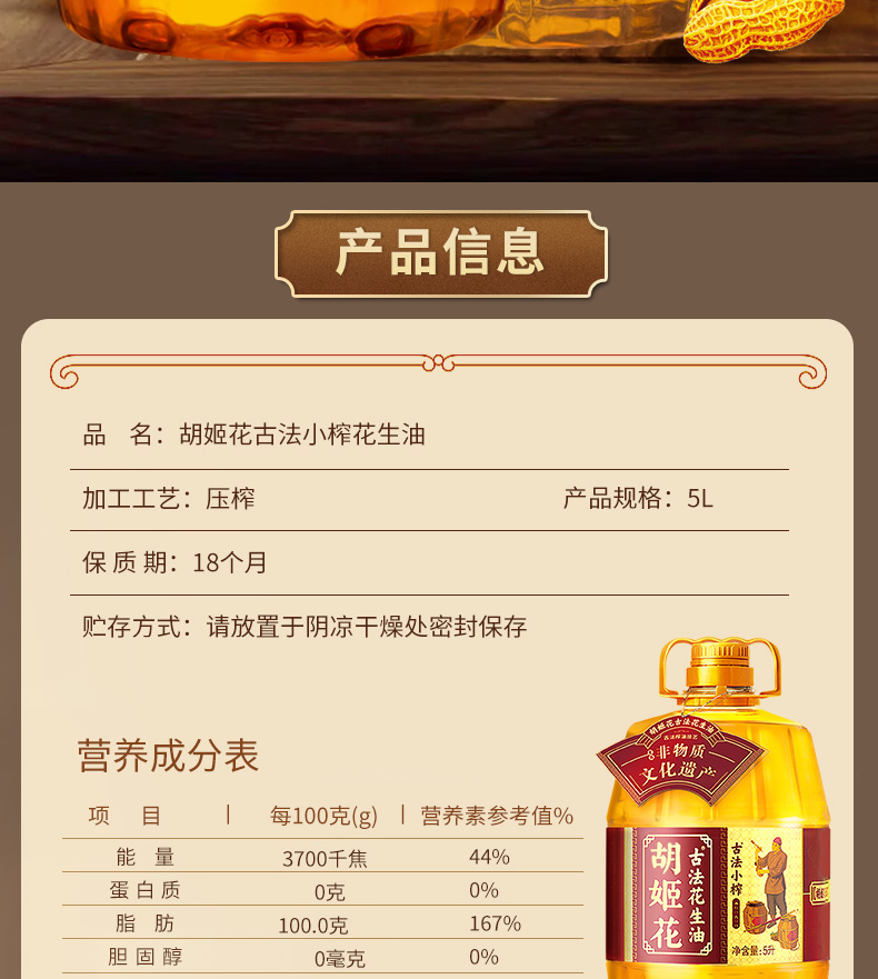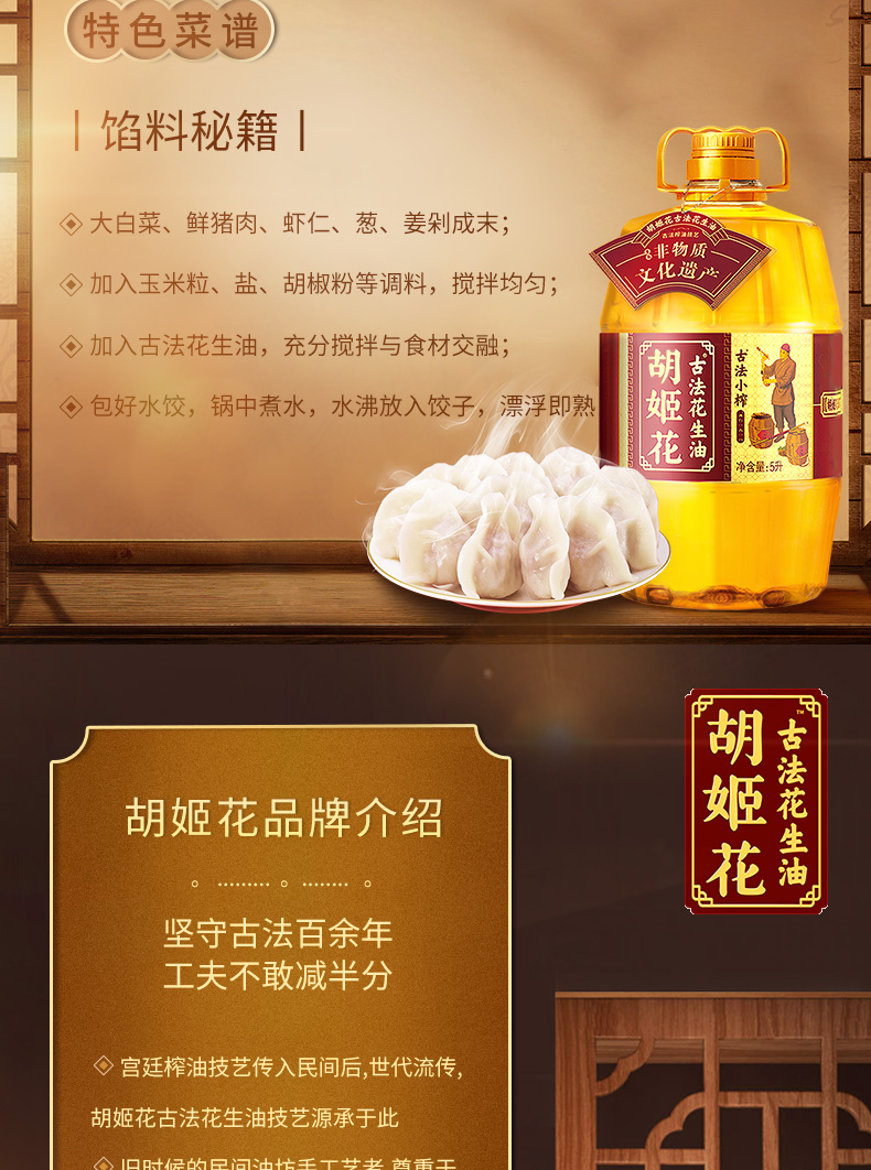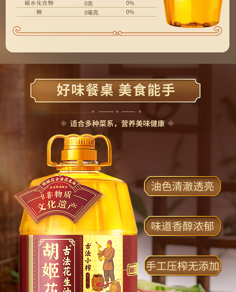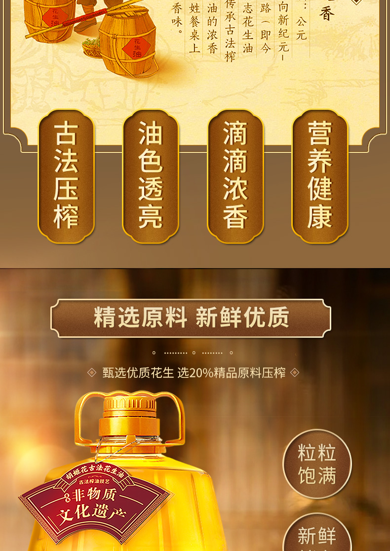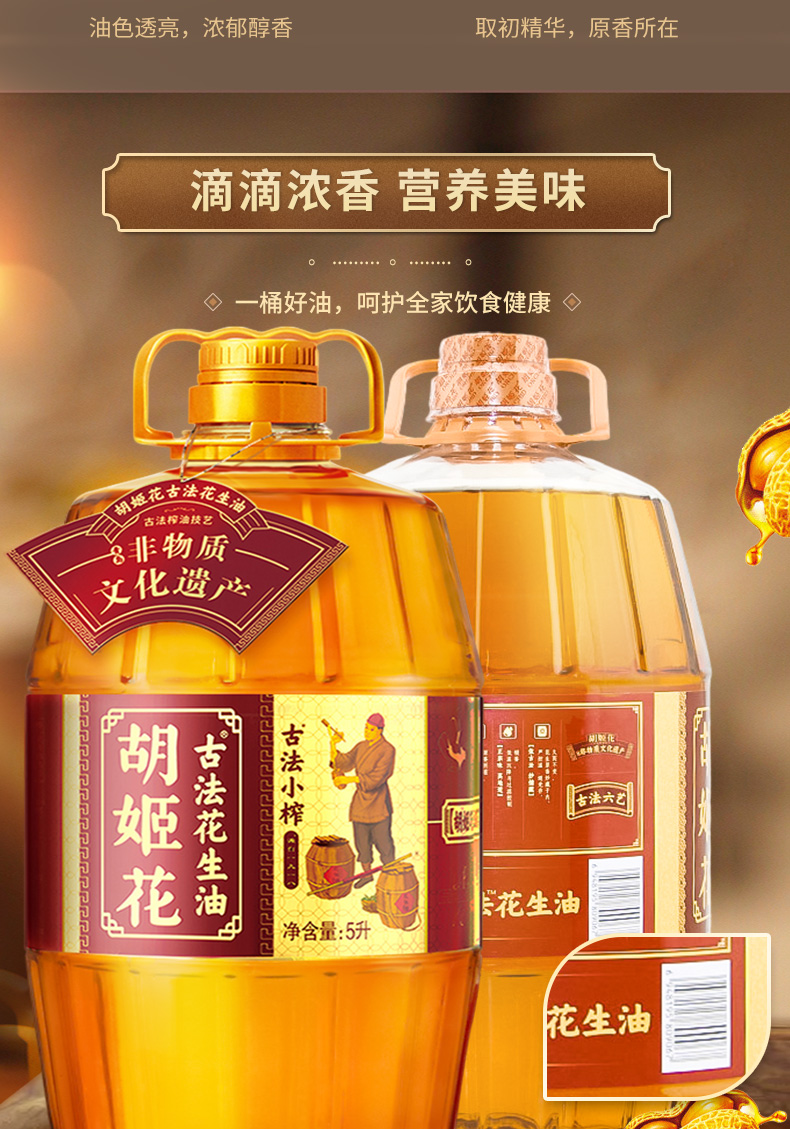 5L胡姬花古法小榨花生油 古法压榨 老油坊的香