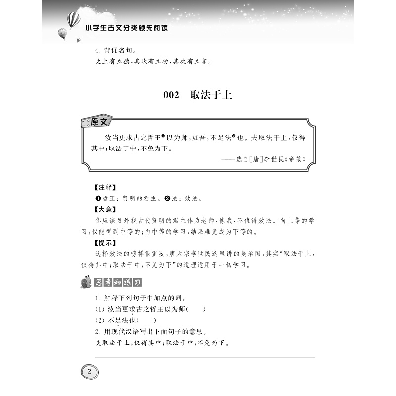 书稿精选我国历史典籍中流传至今的名言佳句,对重难点词句用现代汉语解释,辅助学生阅读。原文翻译以直译为主,语言活泼,浅显易懂。注重语感培养,简单的文言知识积累,以及阅读能力的培养。适合小学中、高年级学生课外阅读使用。