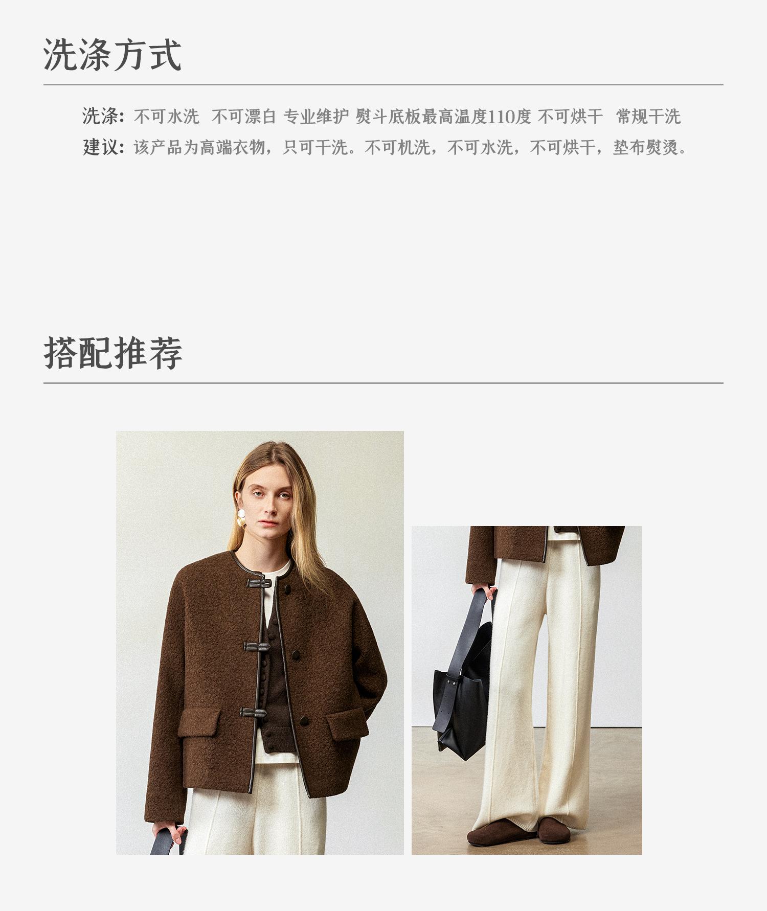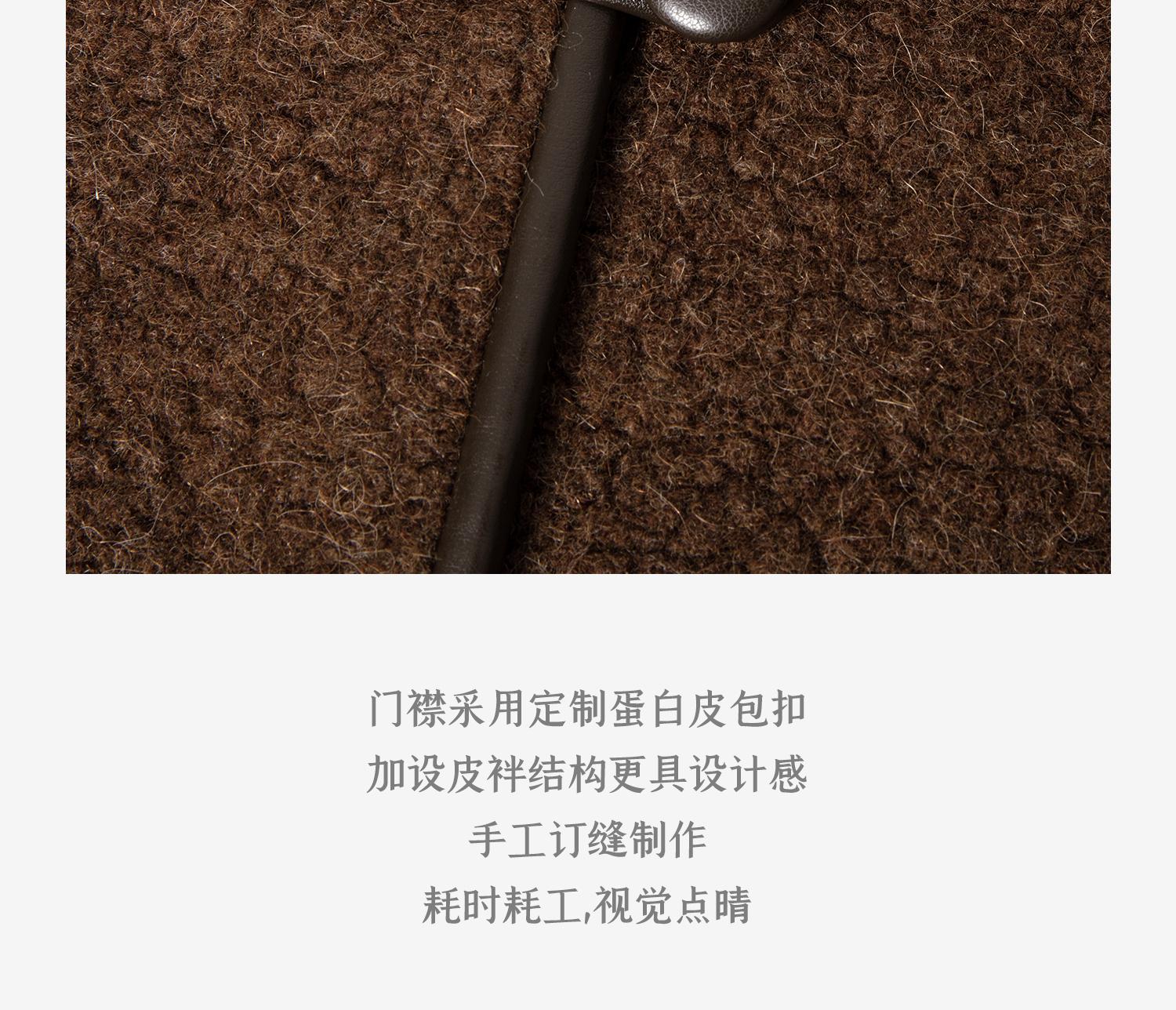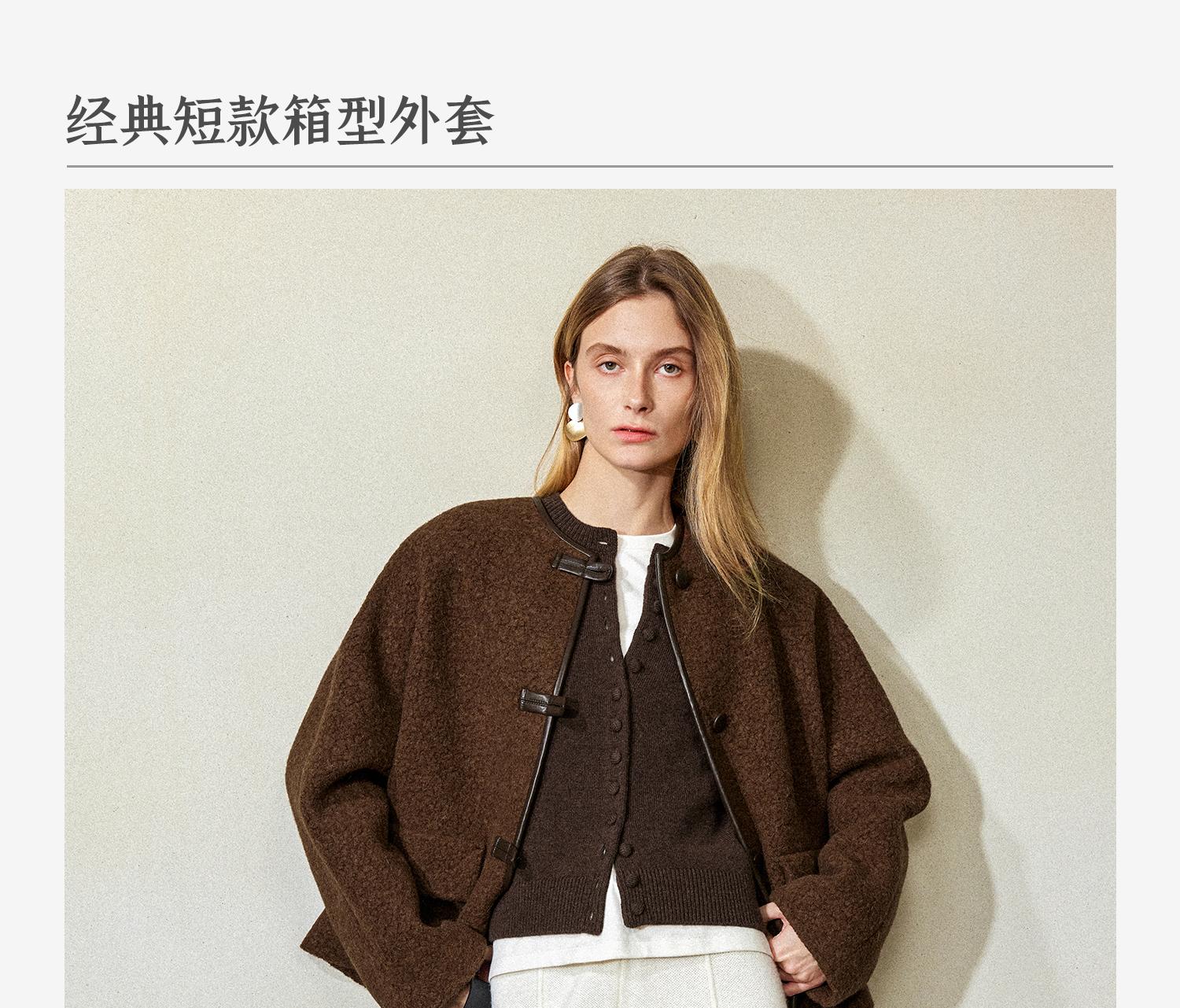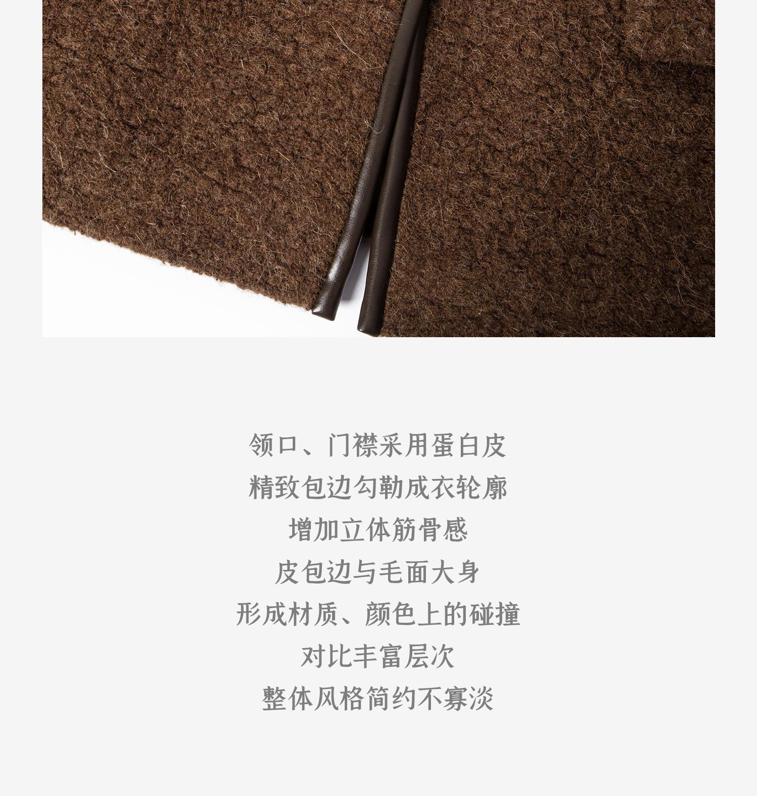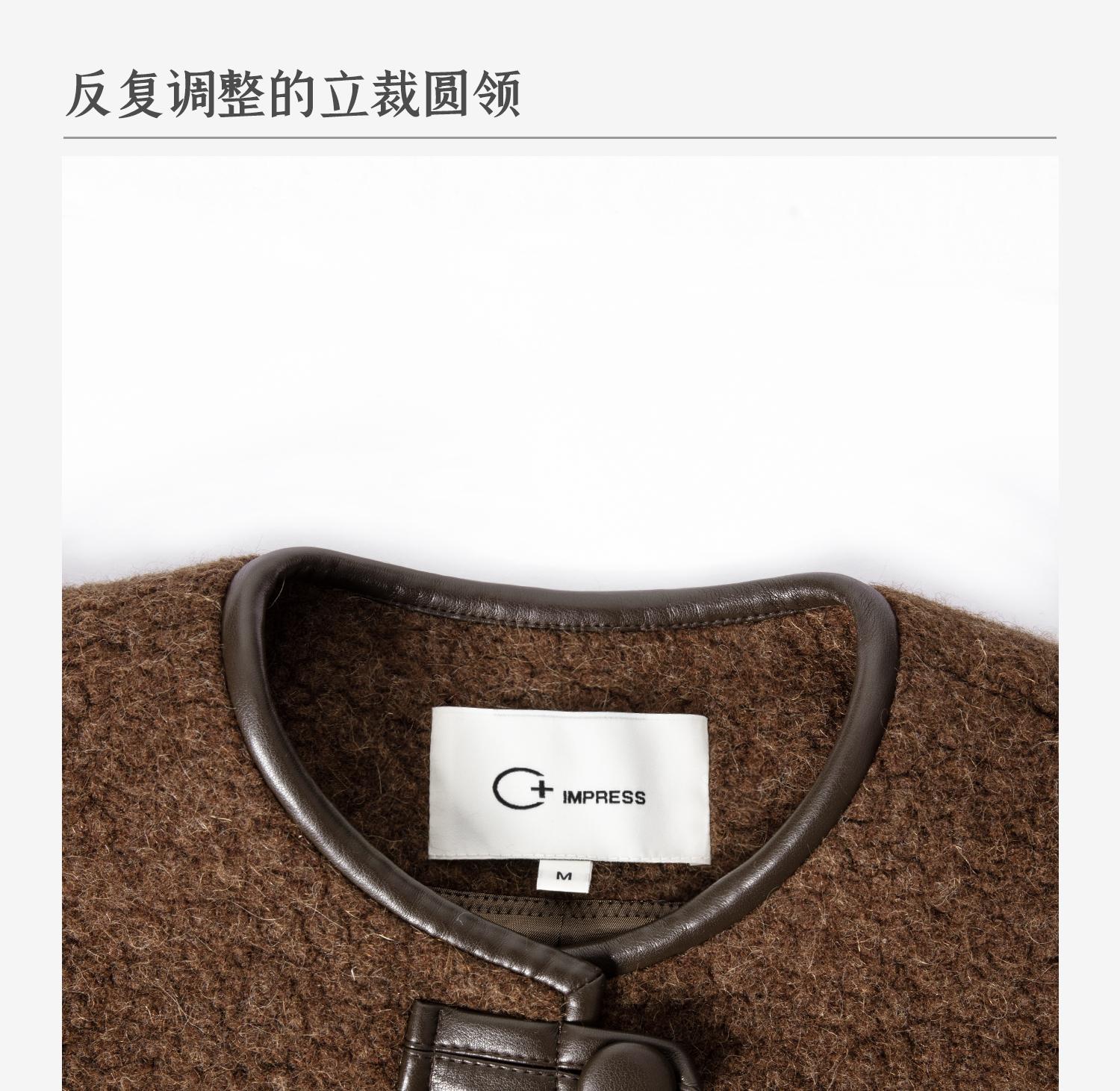 CIMPRESS/西嘉羊驼羊毛圆领拼皮时髦简约羊羔毛短外套女冬季新款(货号:WT2404066)