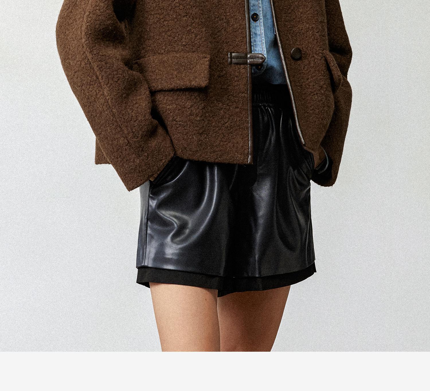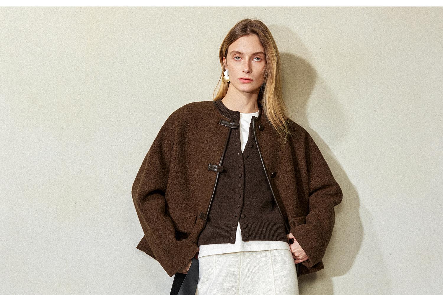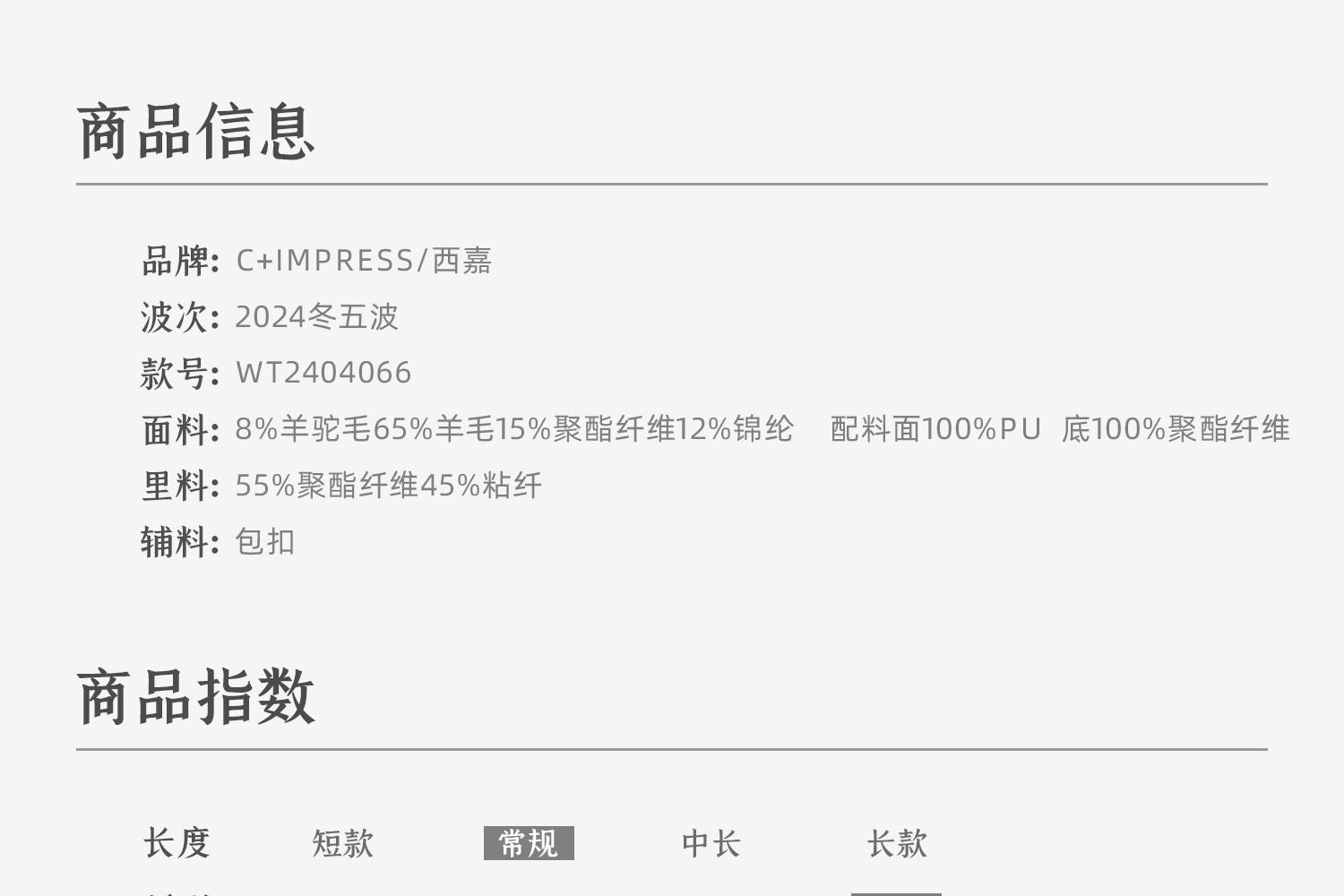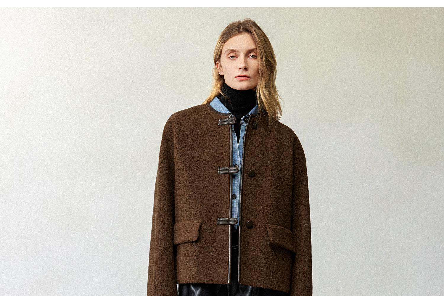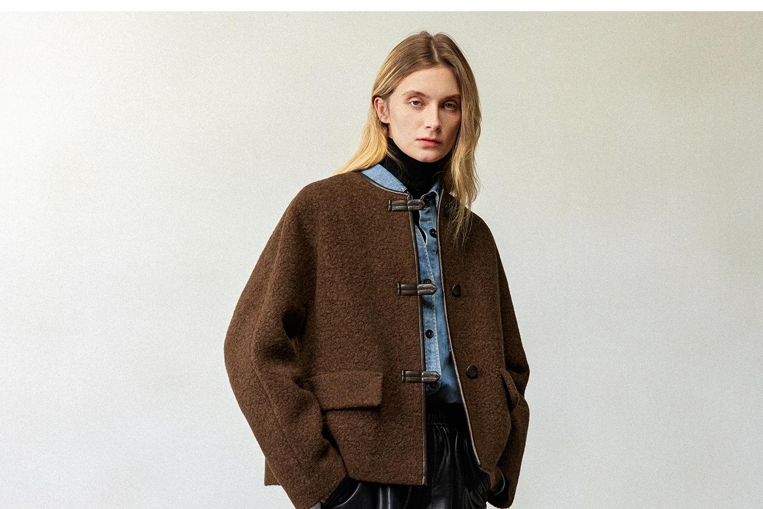 CIMPRESS/西嘉羊驼羊毛圆领拼皮时髦简约羊羔毛短外套女冬季新款(货号:WT2404066)