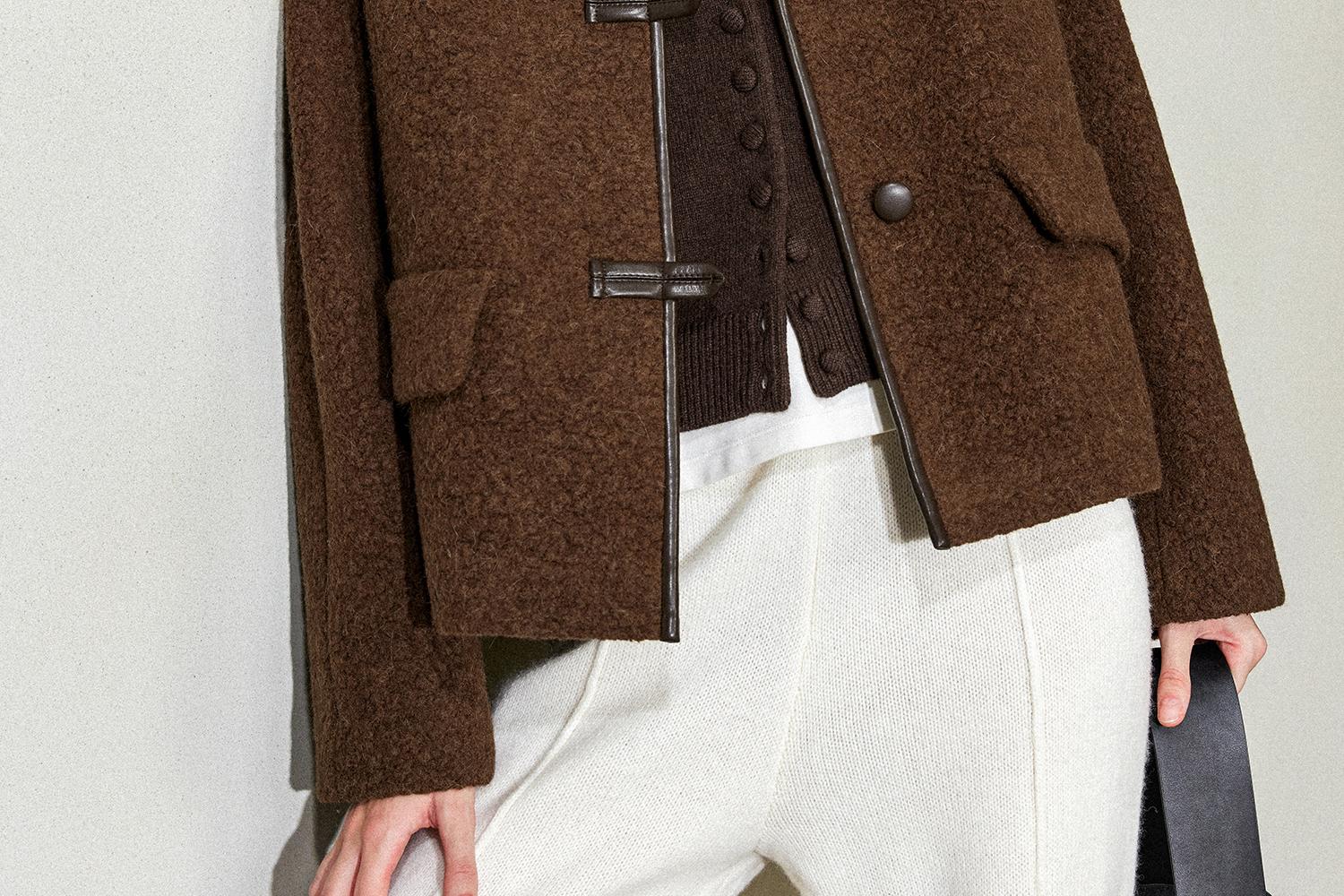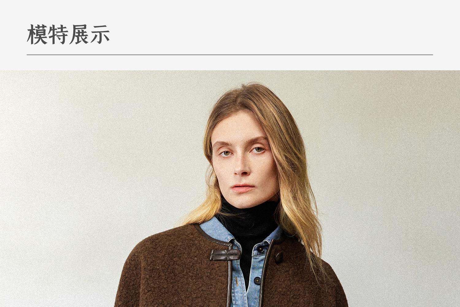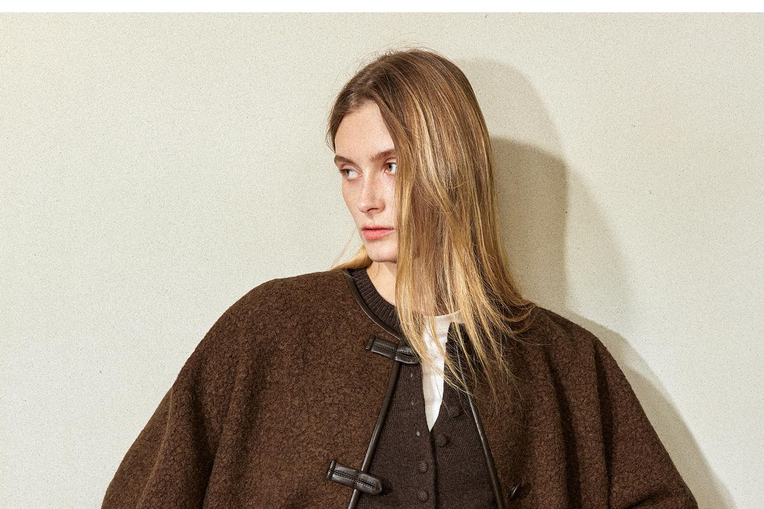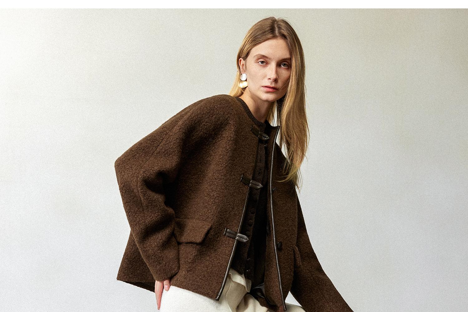 CIMPRESS/西嘉羊驼羊毛圆领拼皮时髦简约羊羔毛短外套女冬季新款(货号:WT2404066)