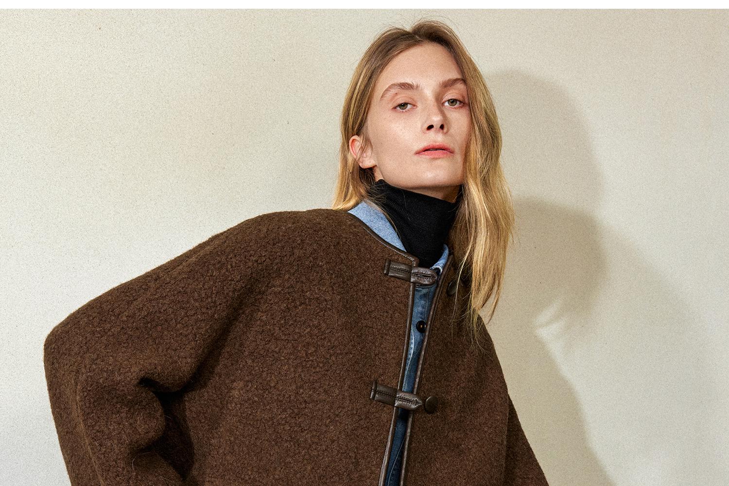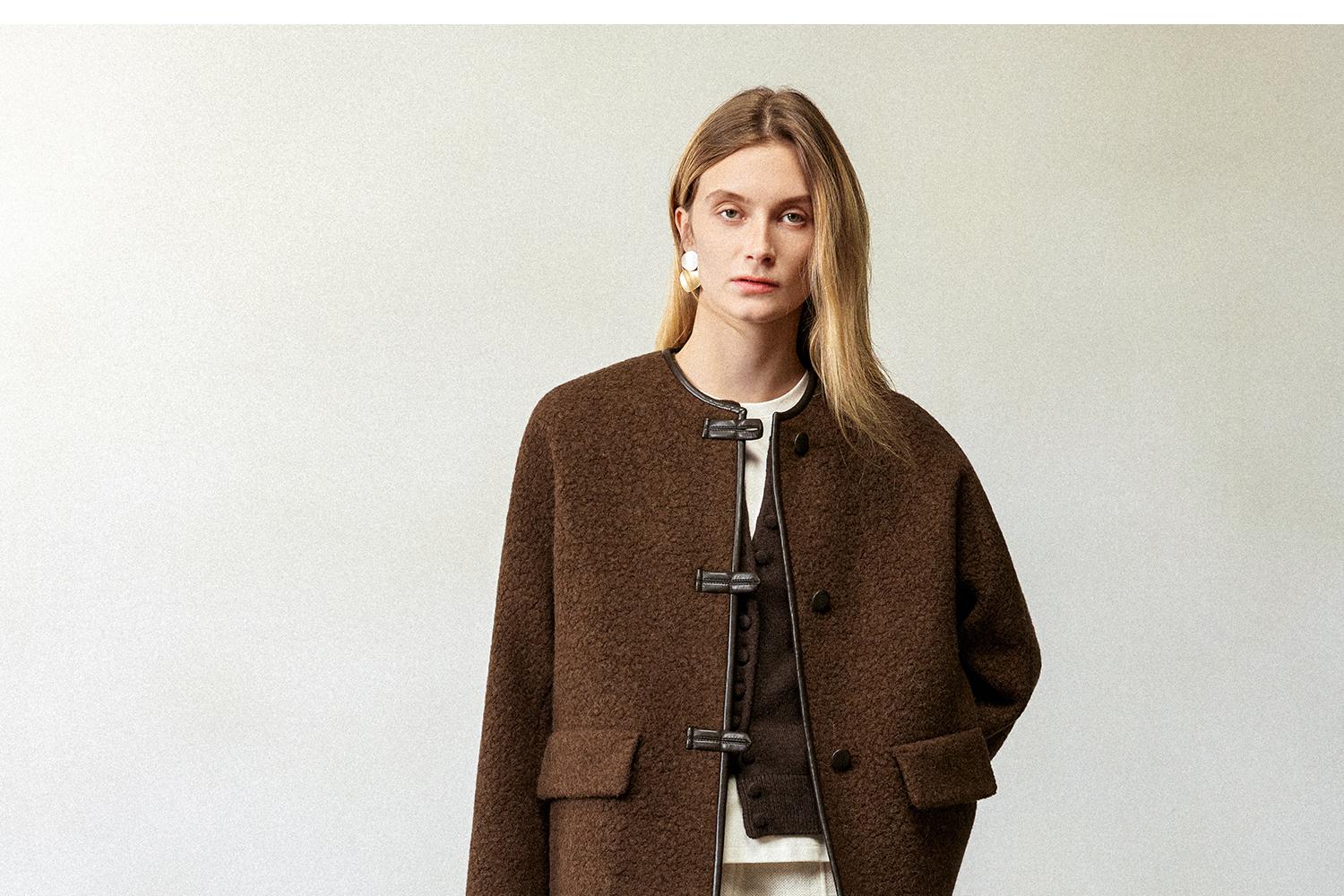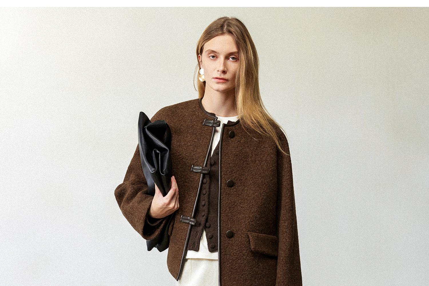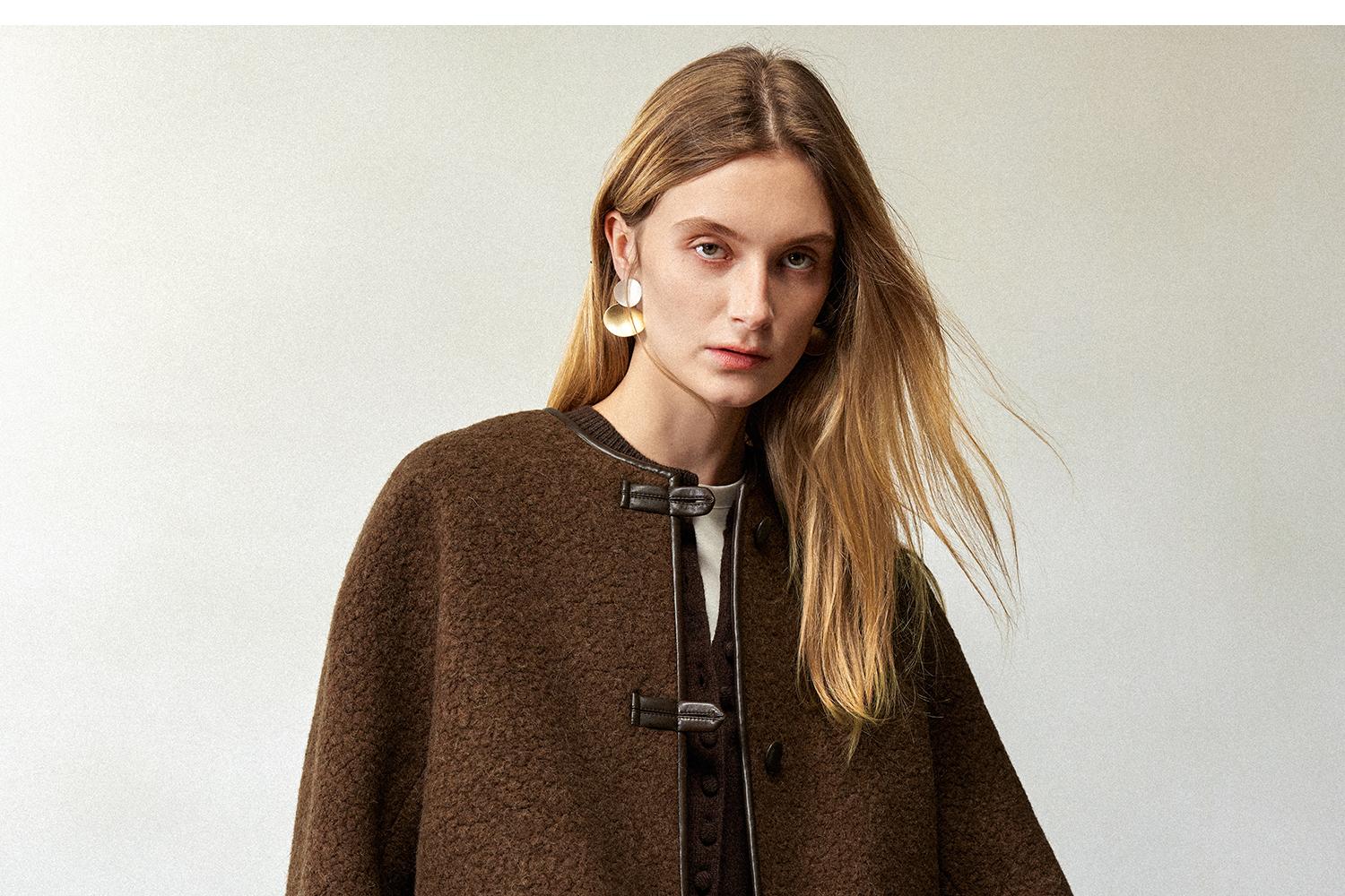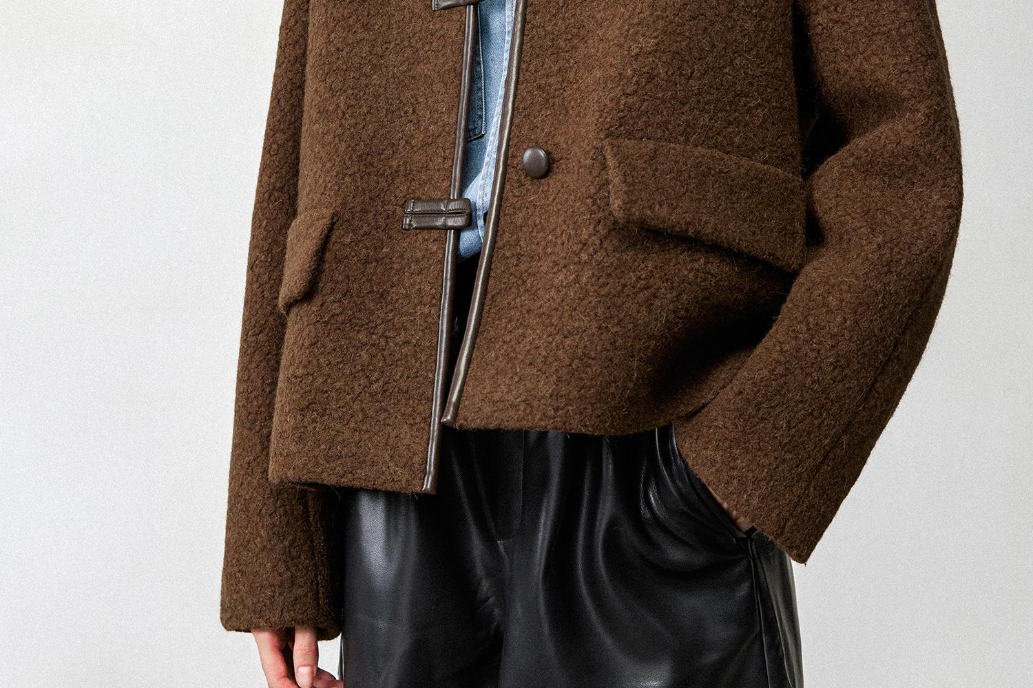 CIMPRESS/西嘉羊驼羊毛圆领拼皮时髦简约羊羔毛短外套女冬季新款(货号:WT2404066)