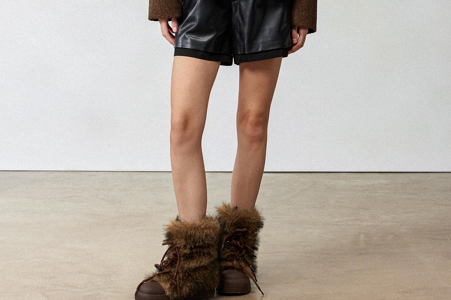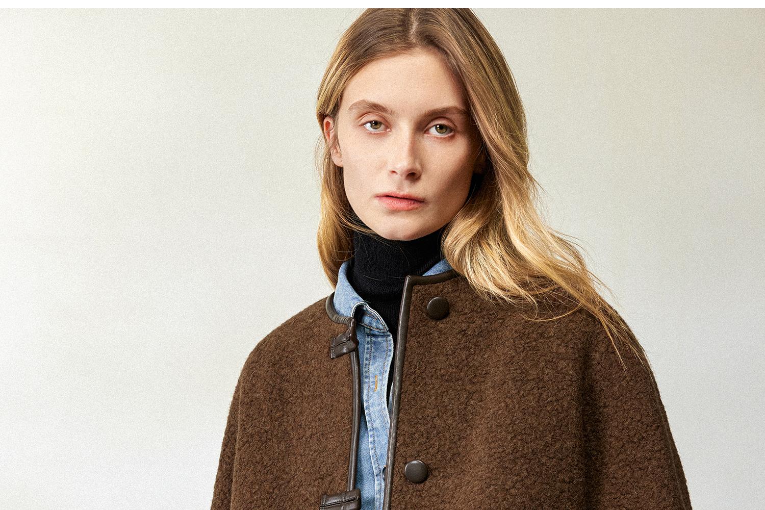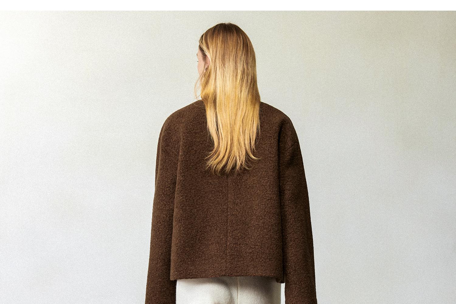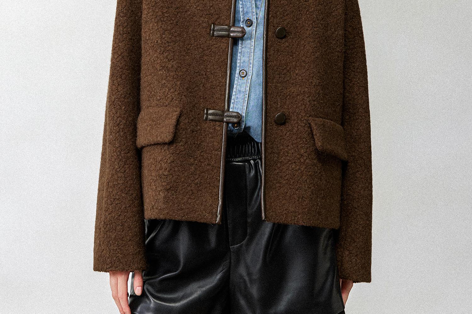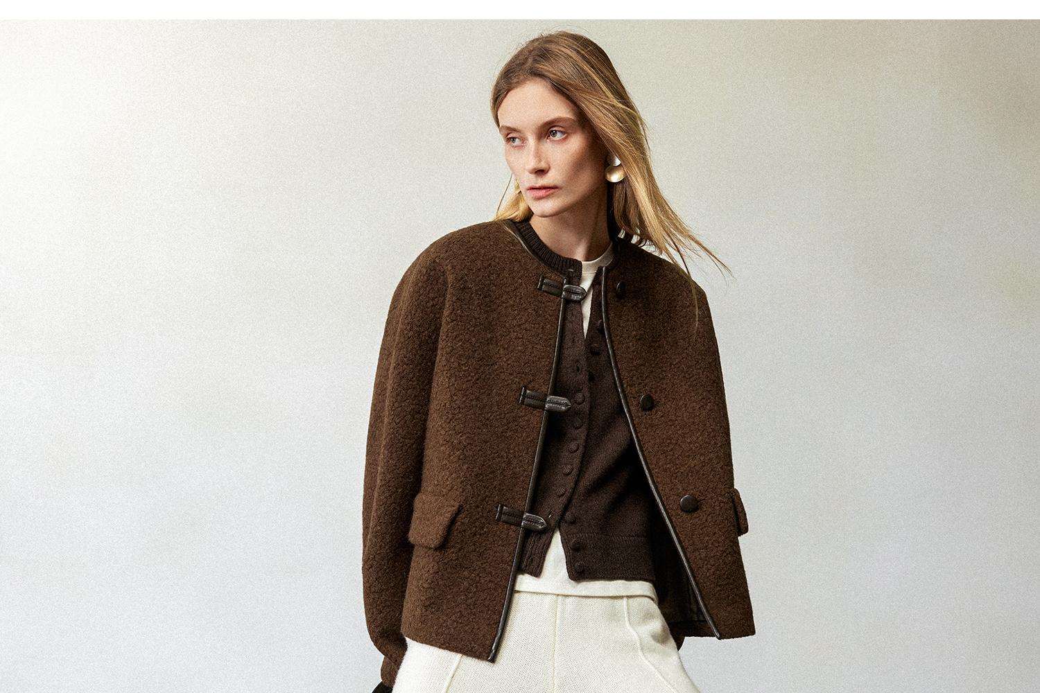 CIMPRESS/西嘉羊驼羊毛圆领拼皮时髦简约羊羔毛短外套女冬季新款(货号:WT2404066)