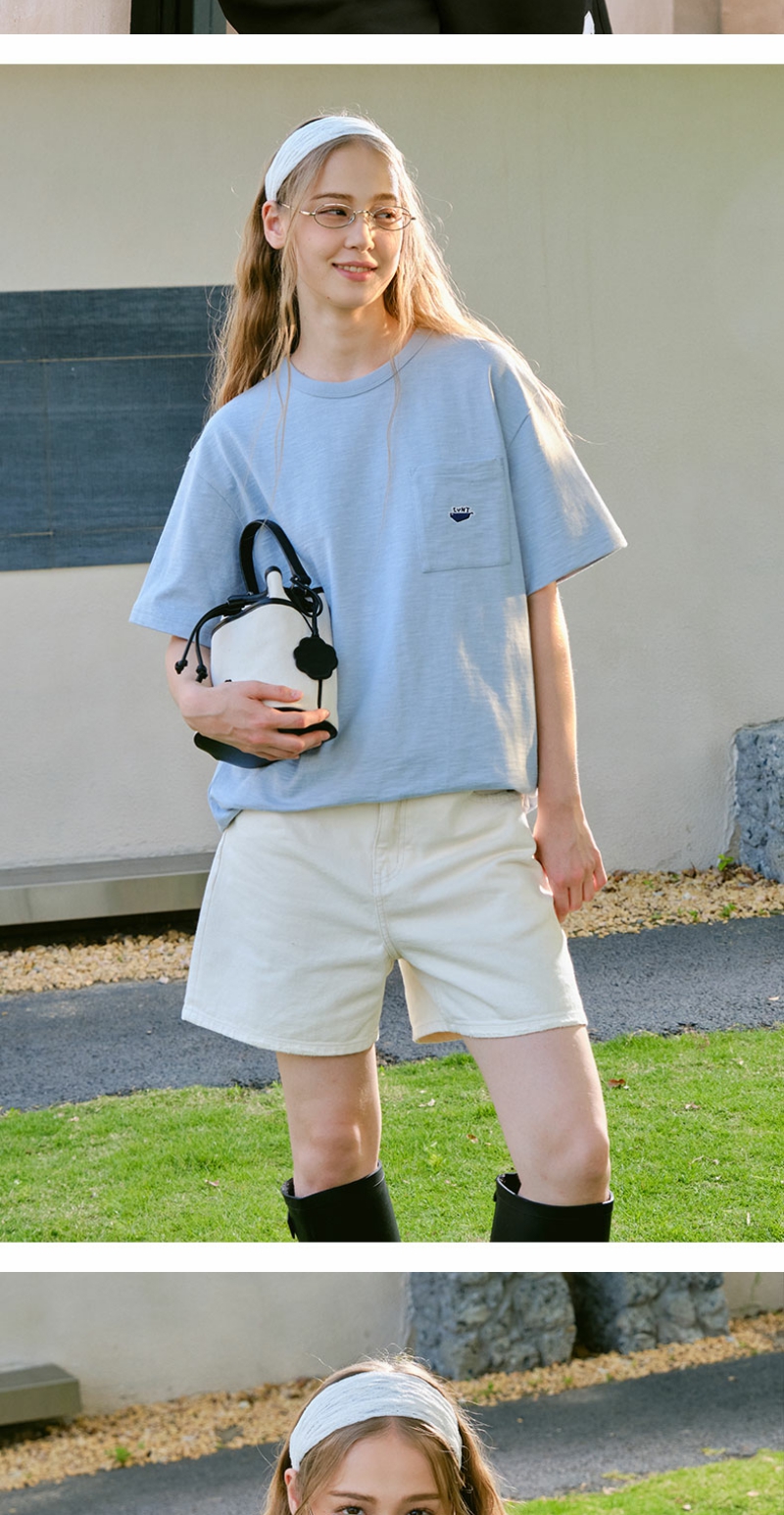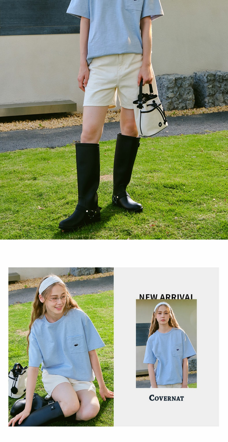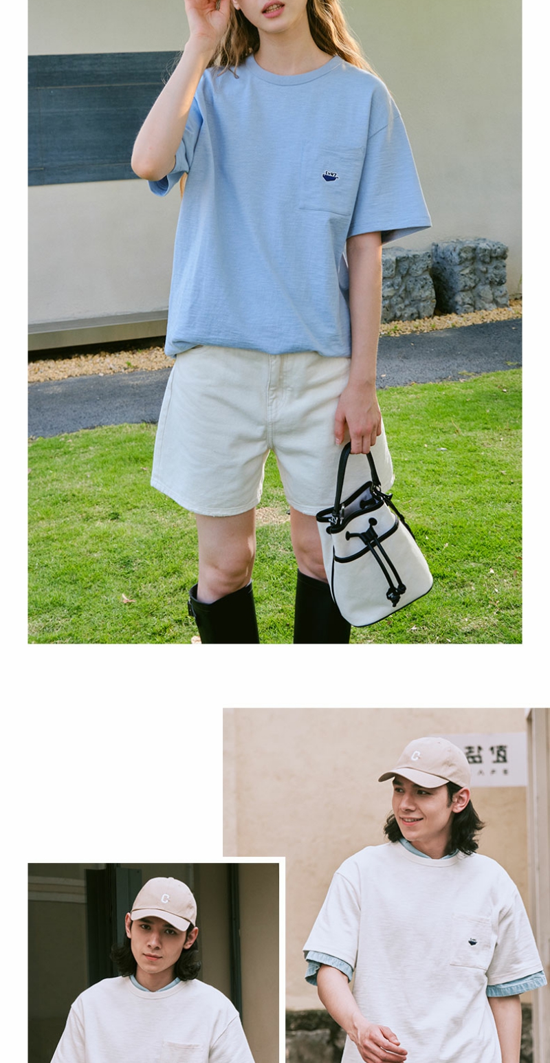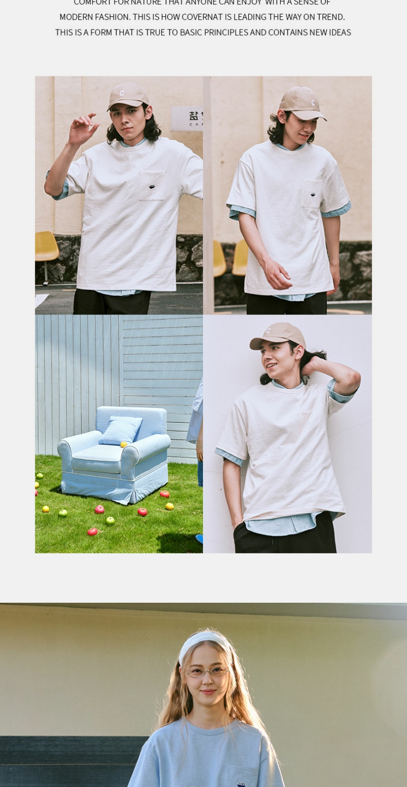 covernat韩国潮牌情侣款中性款竹节棉标志口袋T恤短袖男女CO2302ST27