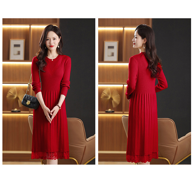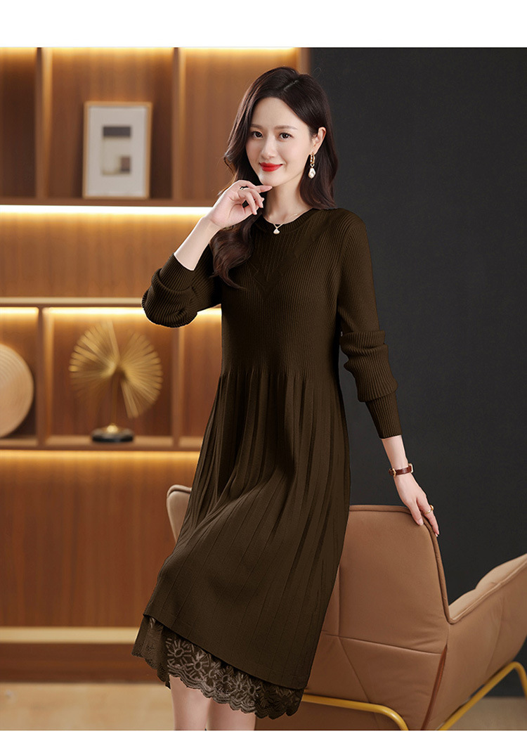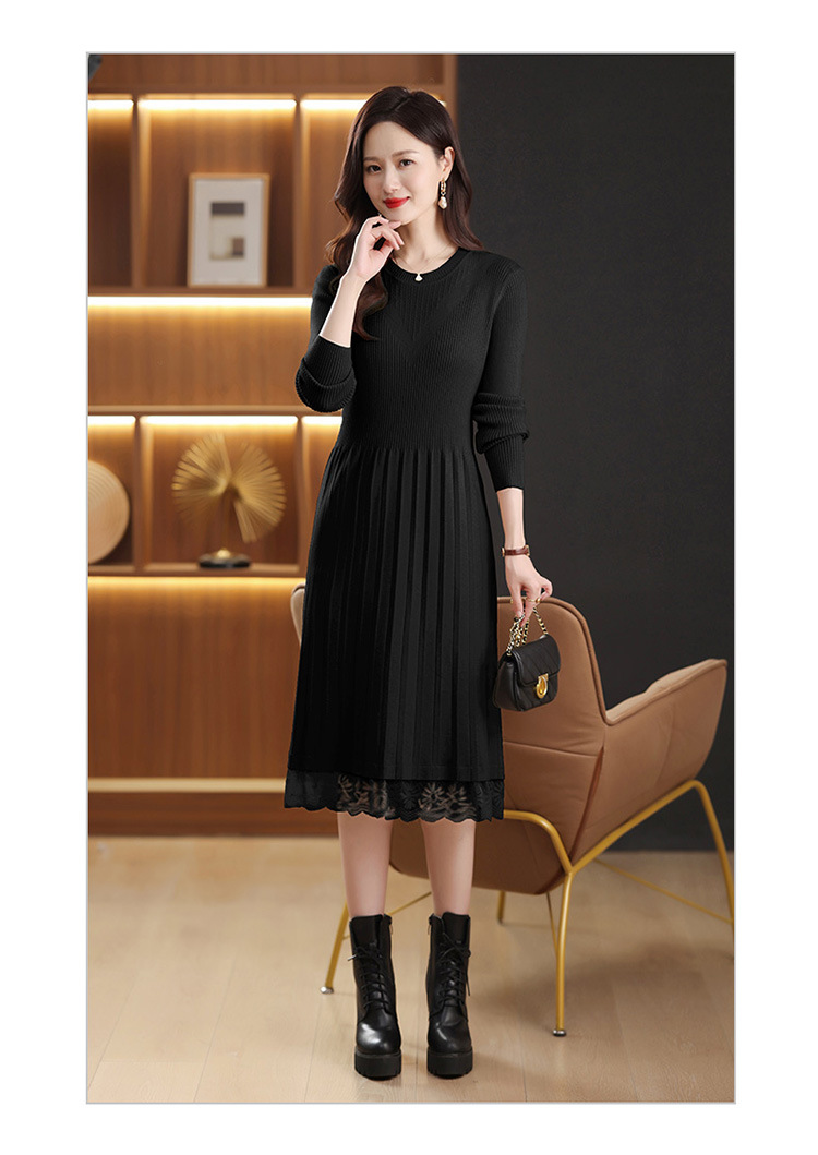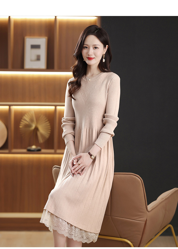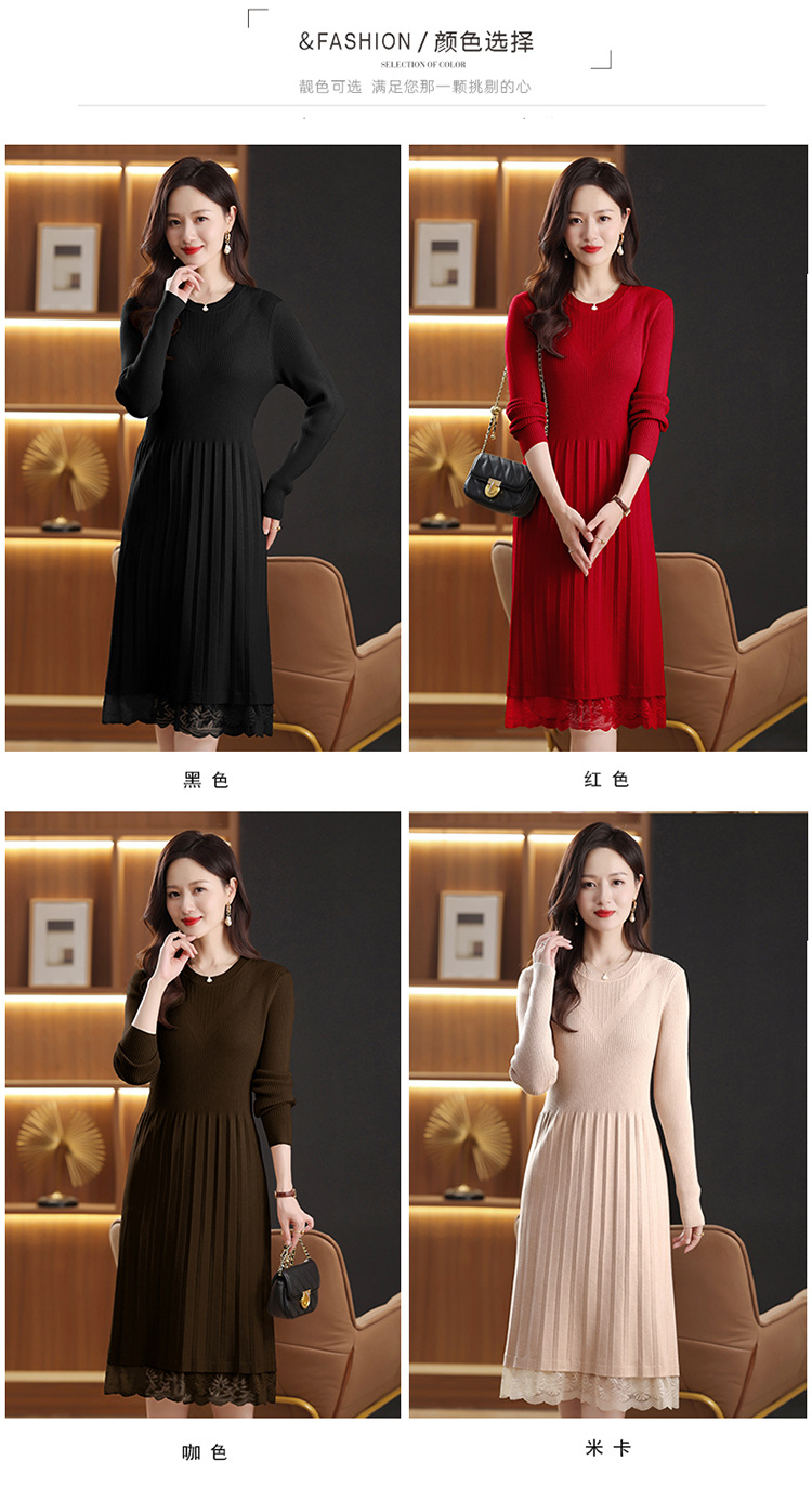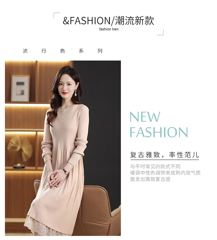FCY 82830大码针织衫韩版宽松洋气蕾丝毛衣裙 商品图1