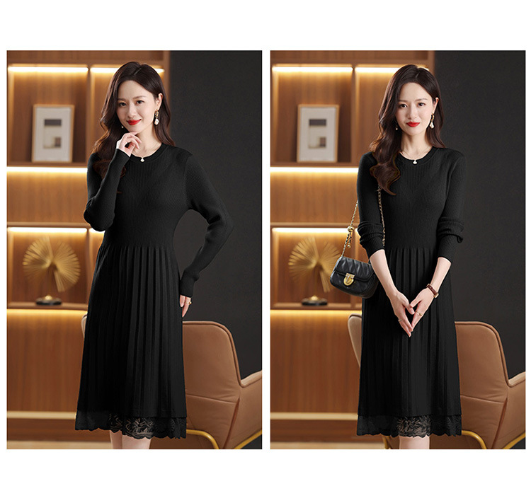 FCY 82830大码针织衫韩版宽松洋气蕾丝毛衣裙 商品图3