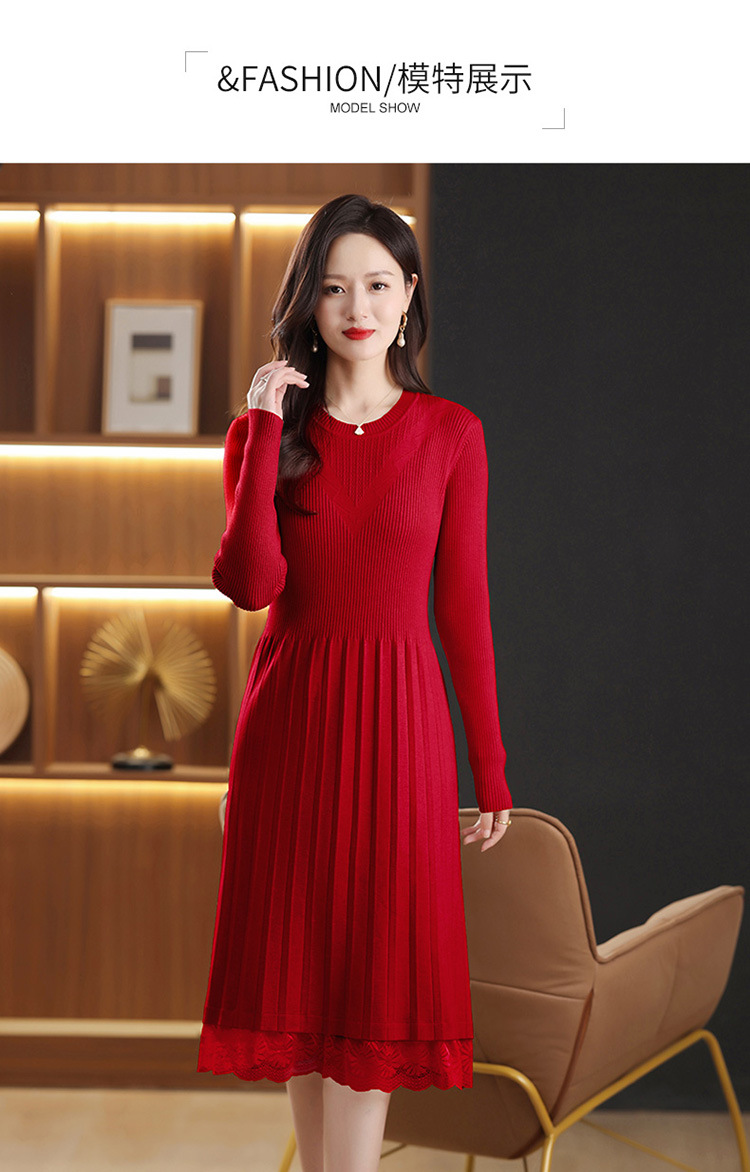 FCY 82830大码针织衫韩版宽松洋气蕾丝毛衣裙 商品图4