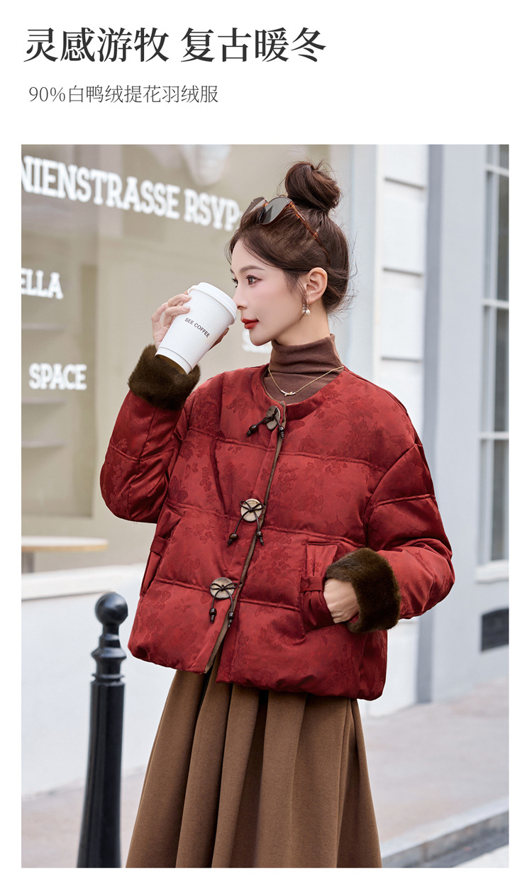 HR YJLY8696新年战袍仿貂毛提花羽绒服外套 商品图3